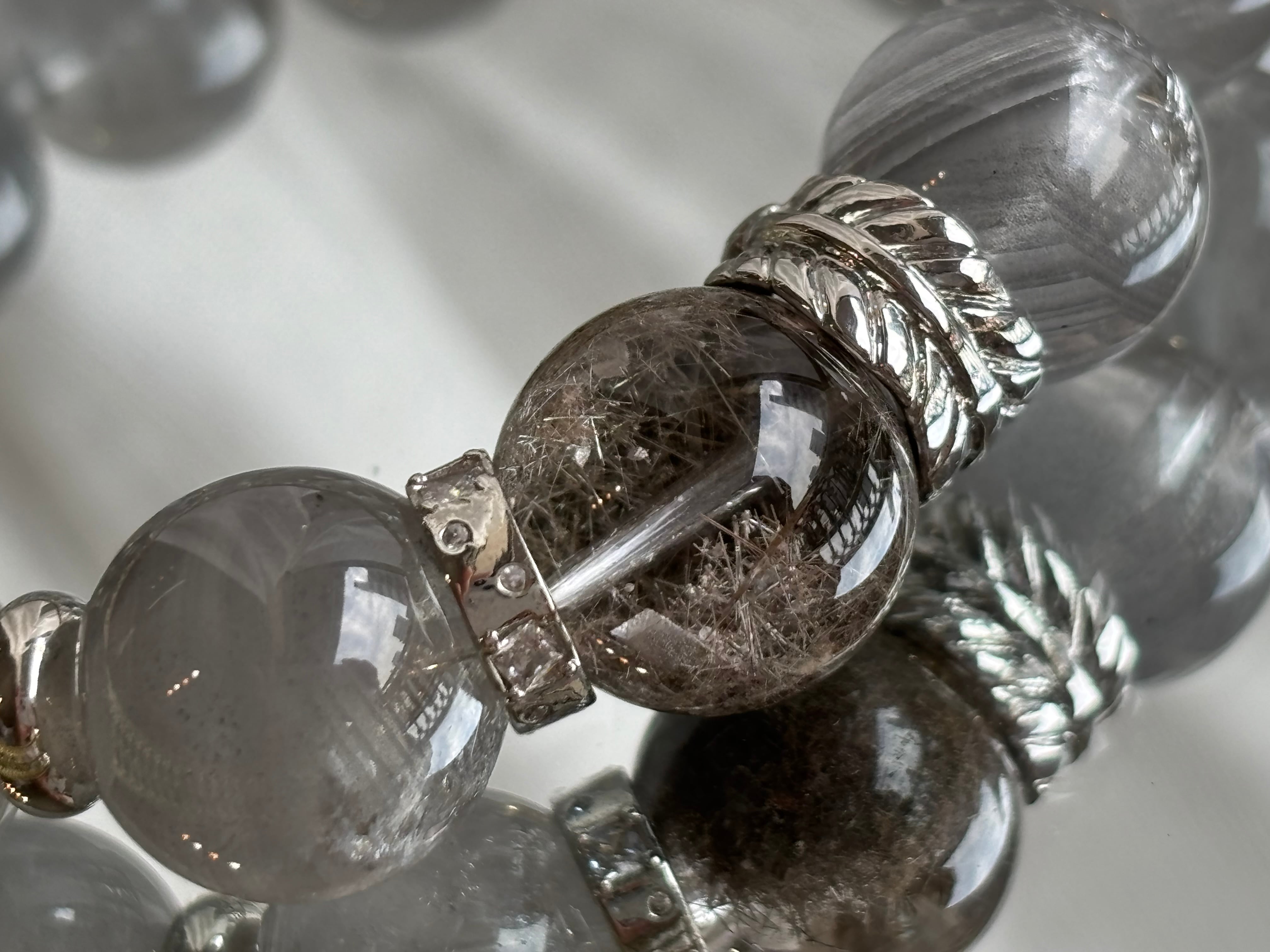 高品質 シルバールチルクォーツ × グレーリチウムクォーツ デザインブレスレット