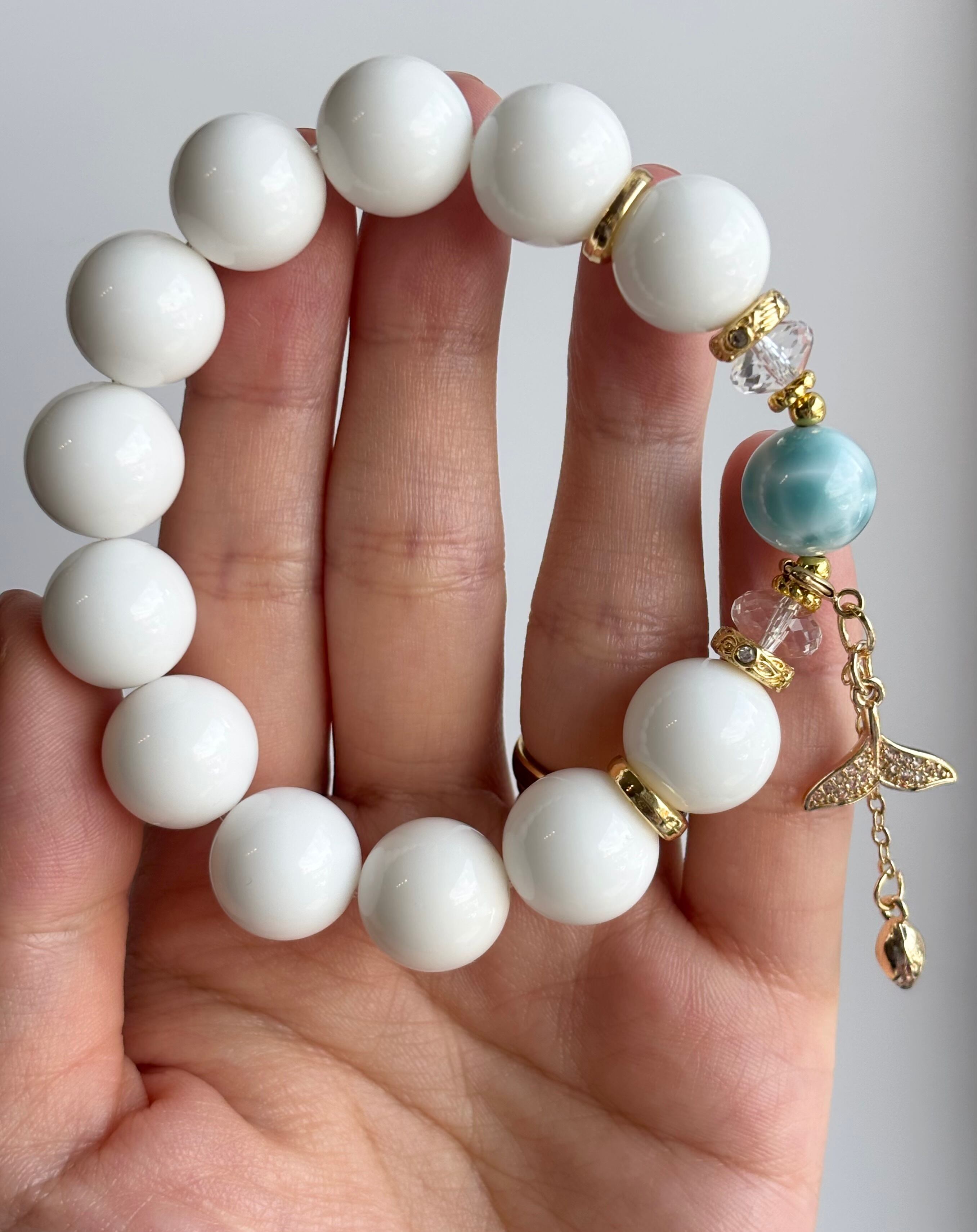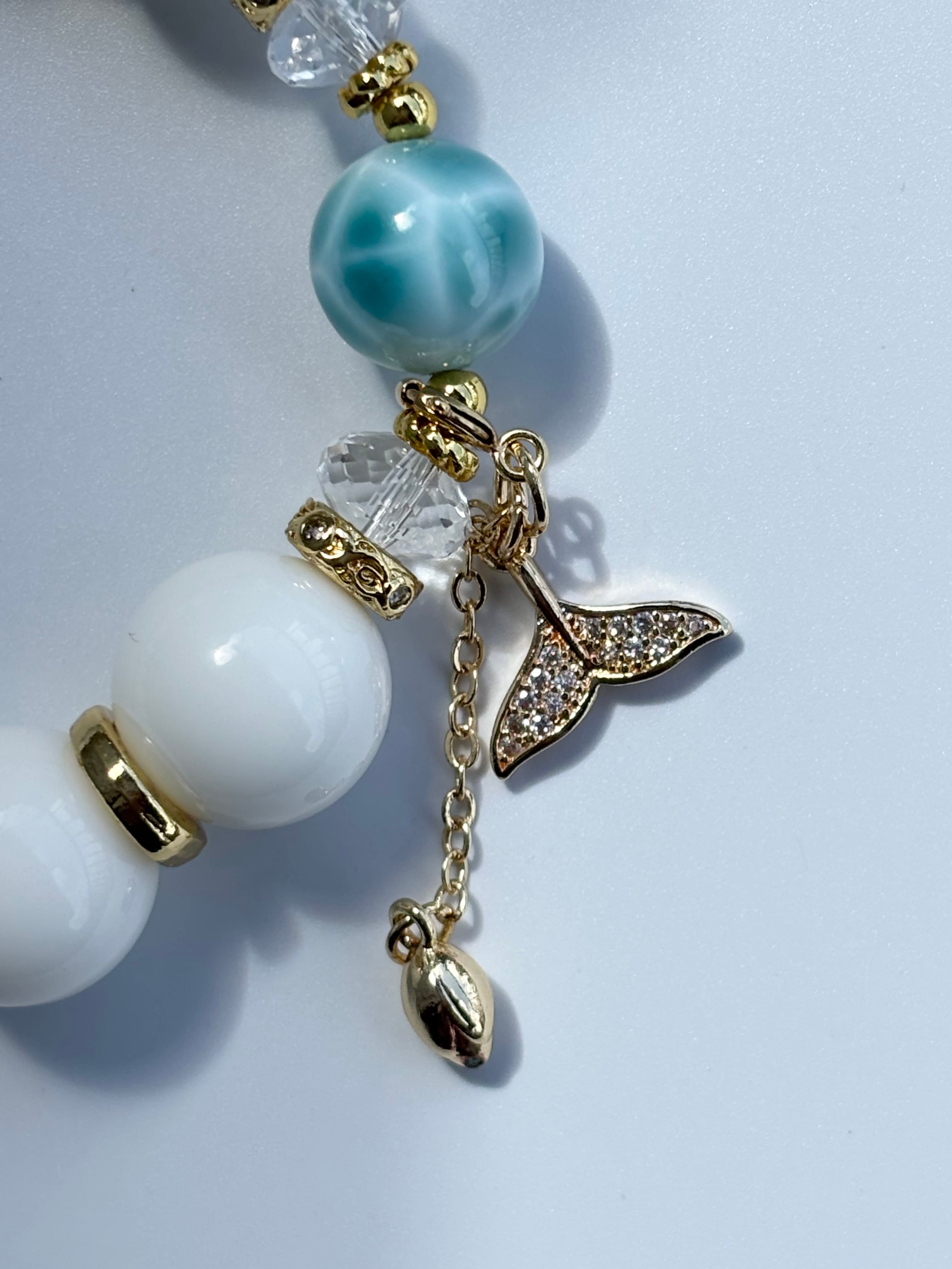高品質 ラリマー ホワイトオニキス 水晶 デザインブレスレット