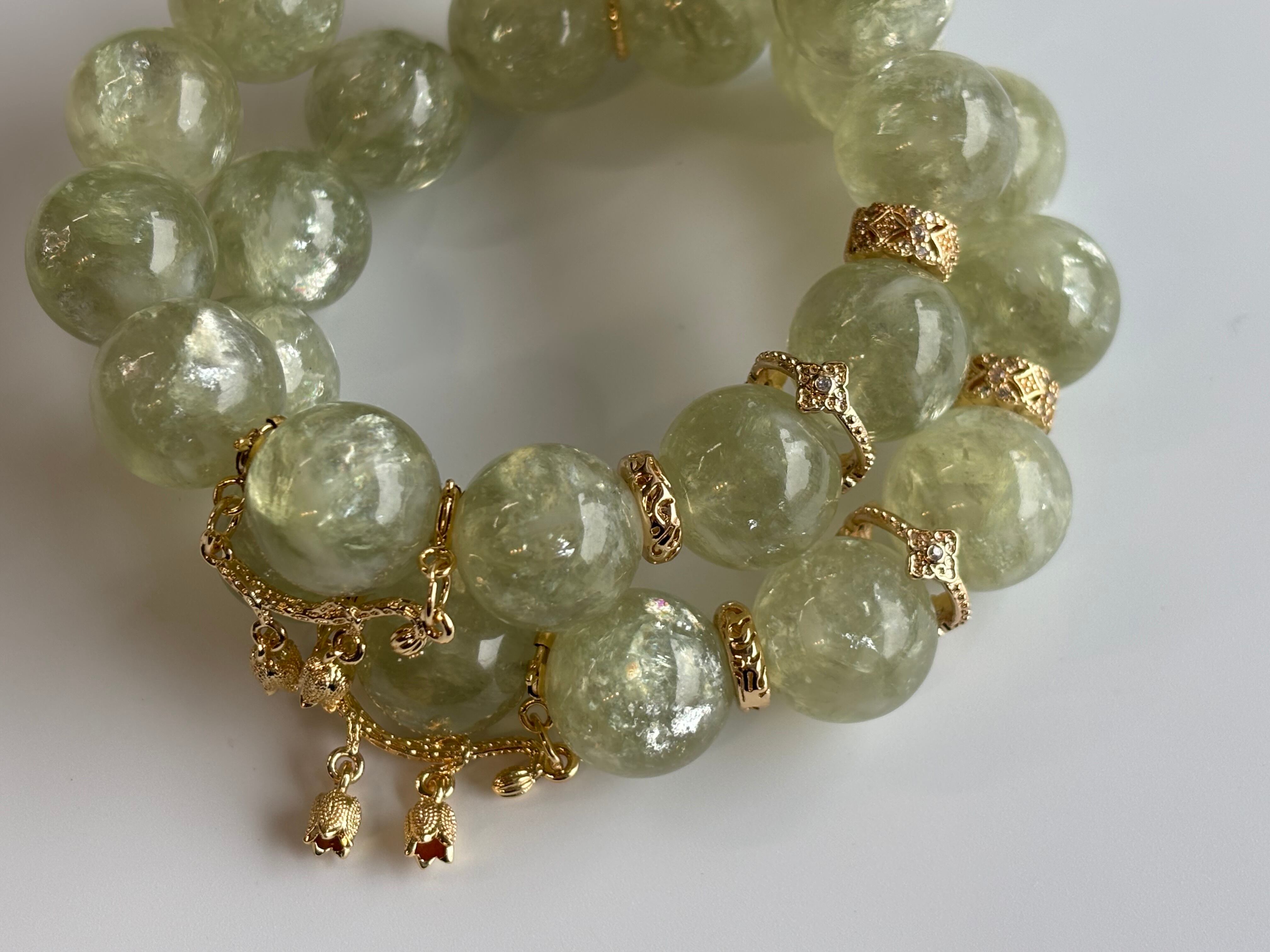 高品質 抹茶ゼリー グリーンマイカ デザインブレスレット