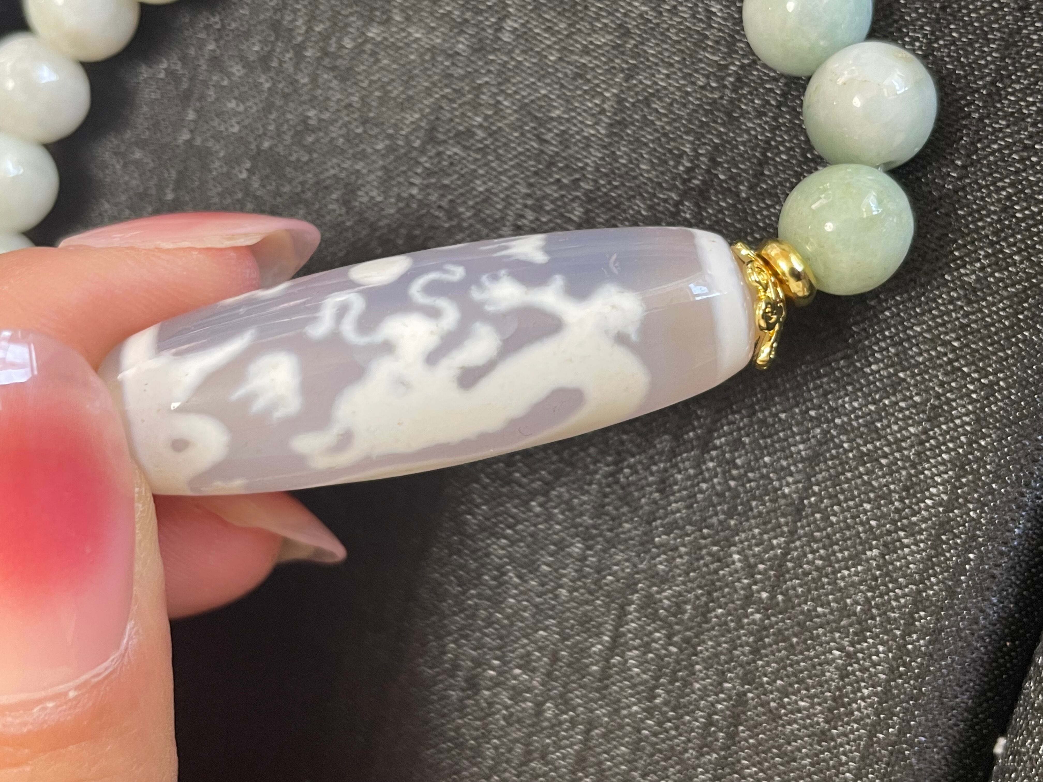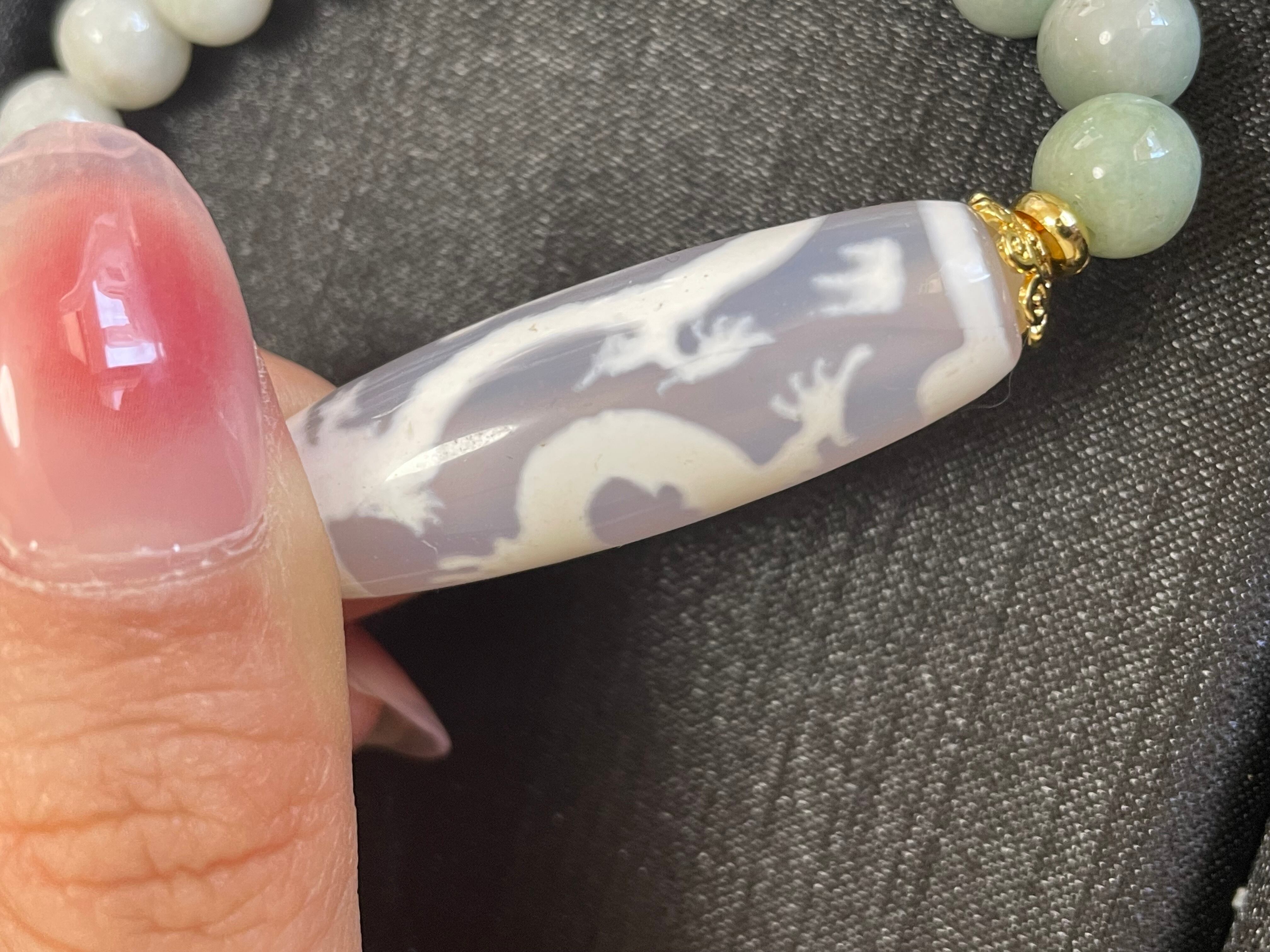 双皇帝龍天珠 五本爪龍神 天珠 翡翠 デザインブレスレット