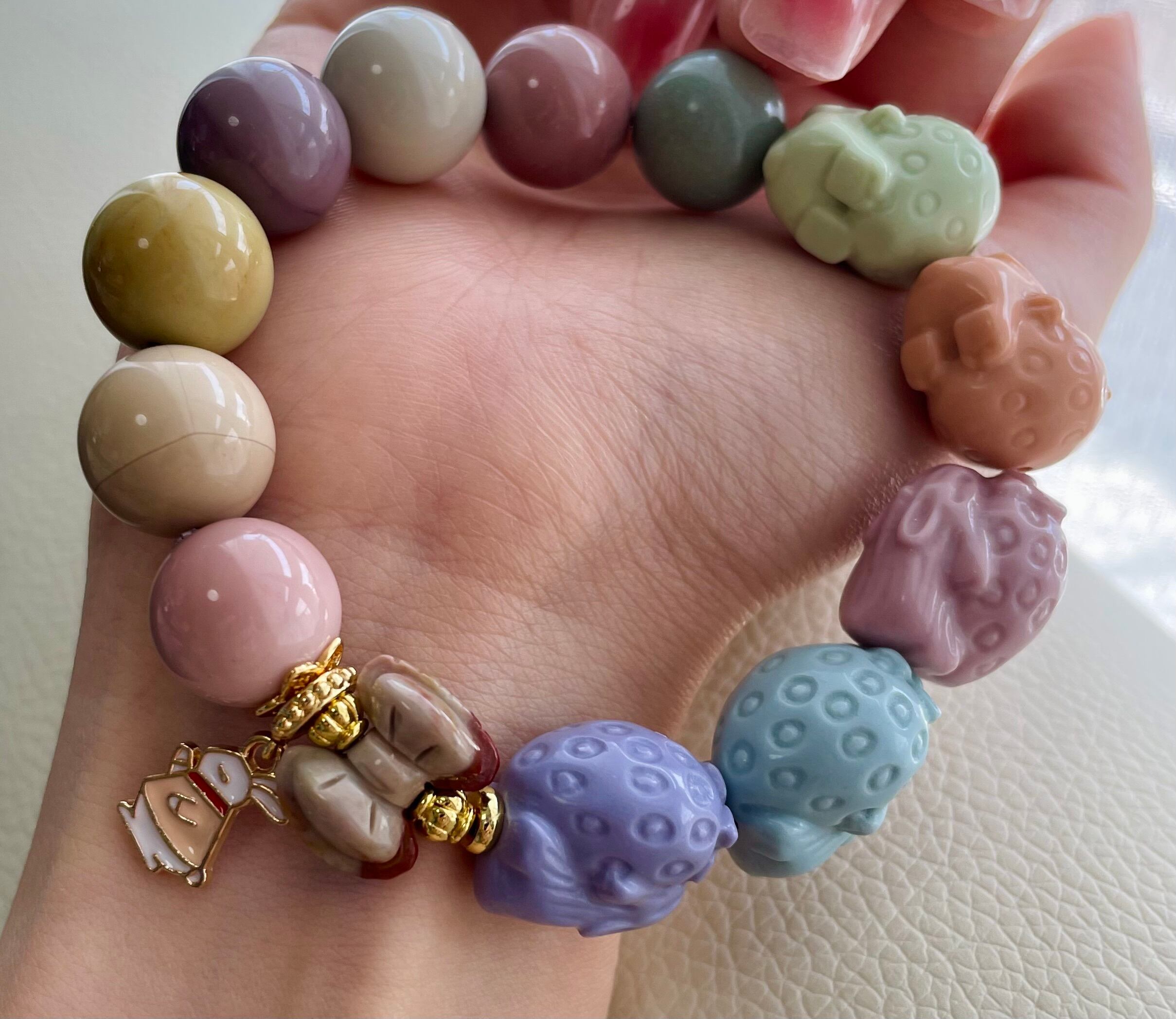 パステルマカロンアラシャン苺うさぎデザインブレスレット