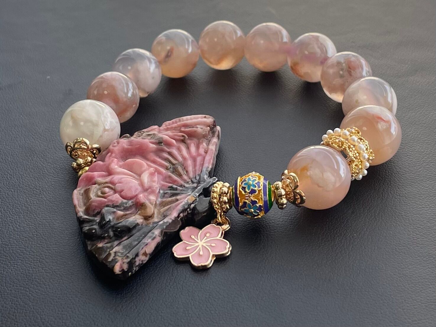 桜瑪瑙 ロードナイト彫刻 デザインブレスレット
