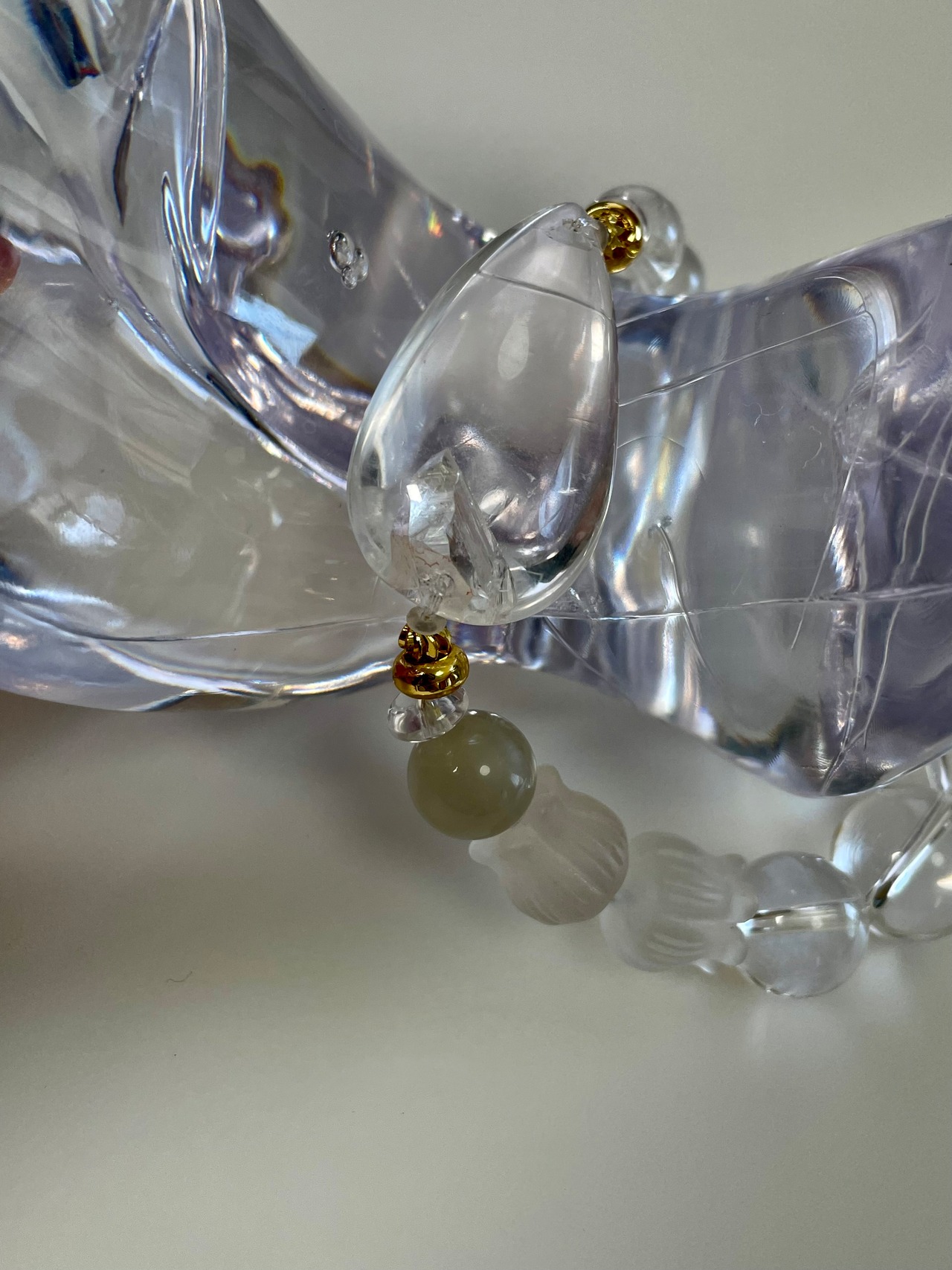 どこから見ても透明感が美しい水晶珠は勿論トップのクォーツインクォーツもハッキリ見えてクリアです。