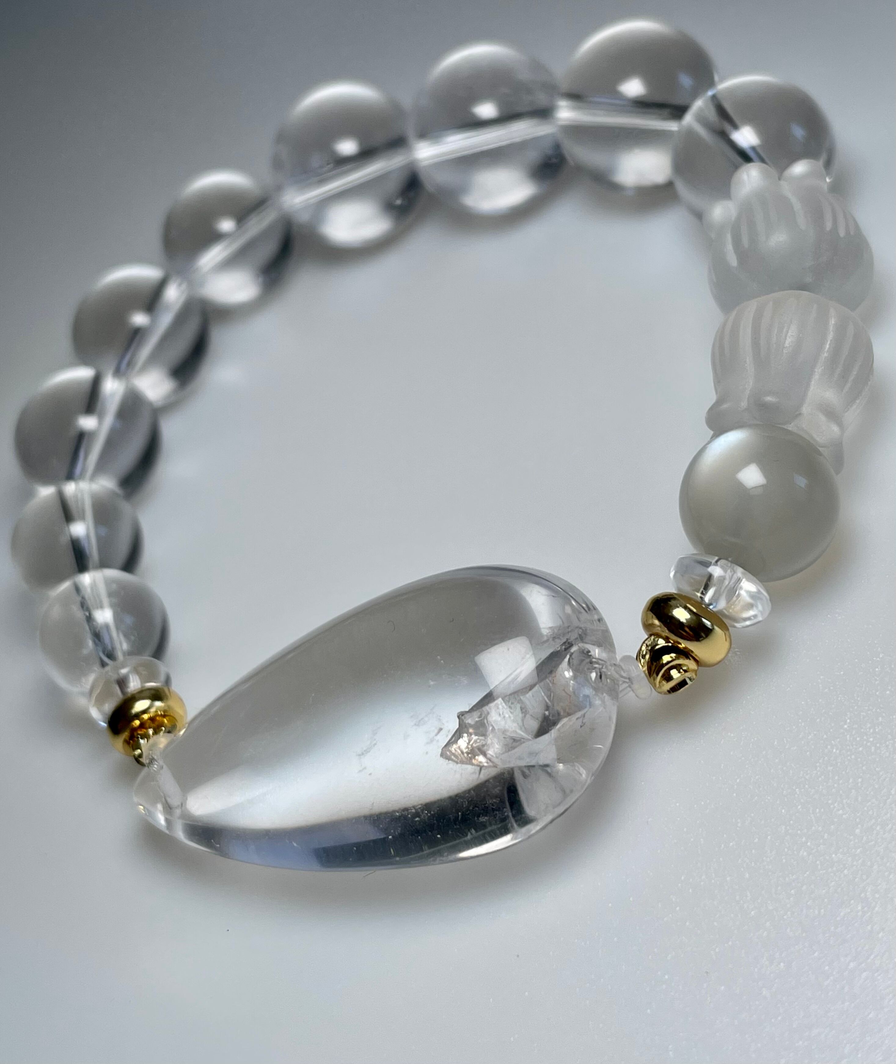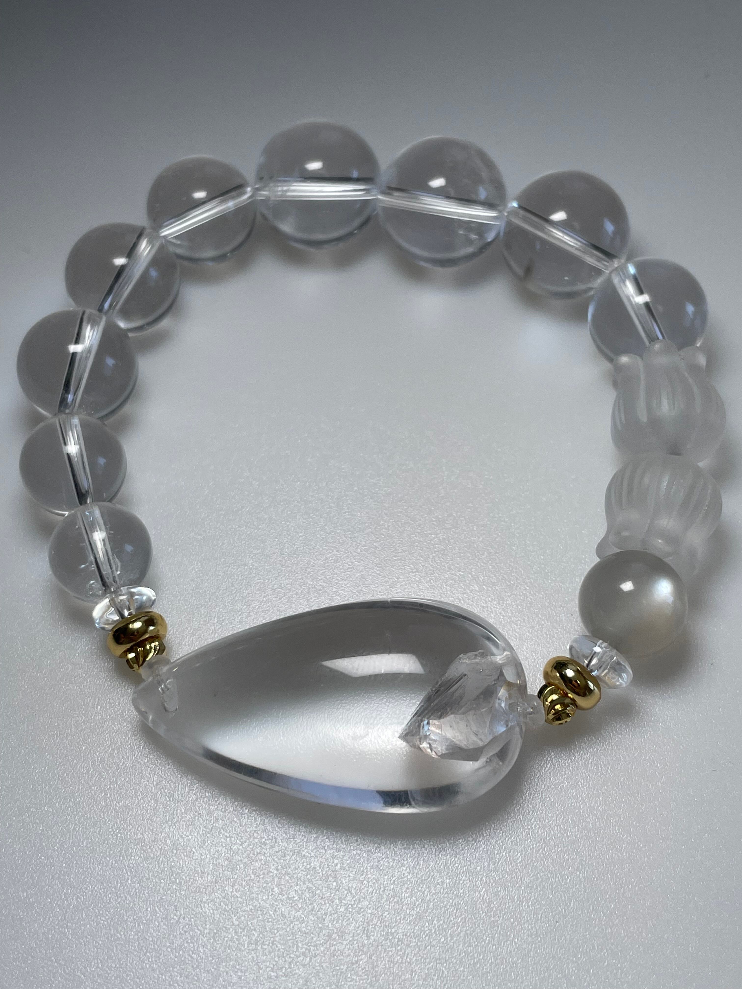 クォーツインクォーツ 水晶 鈴蘭 ムーンストーンデザインブレスレット