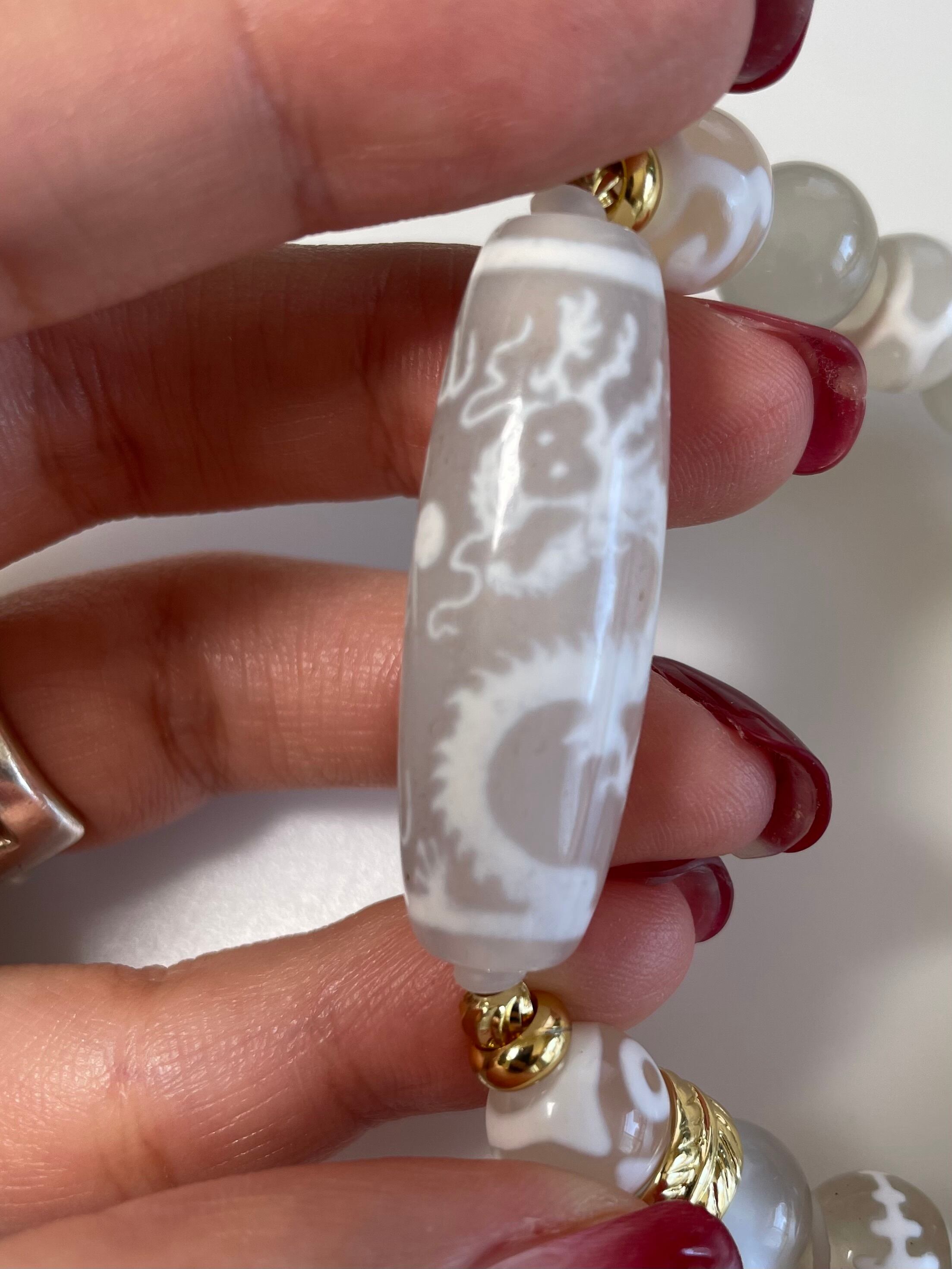 老玉髄天珠 宝珠双皇帝龍天珠 五本爪龍神 デザインブレスレット