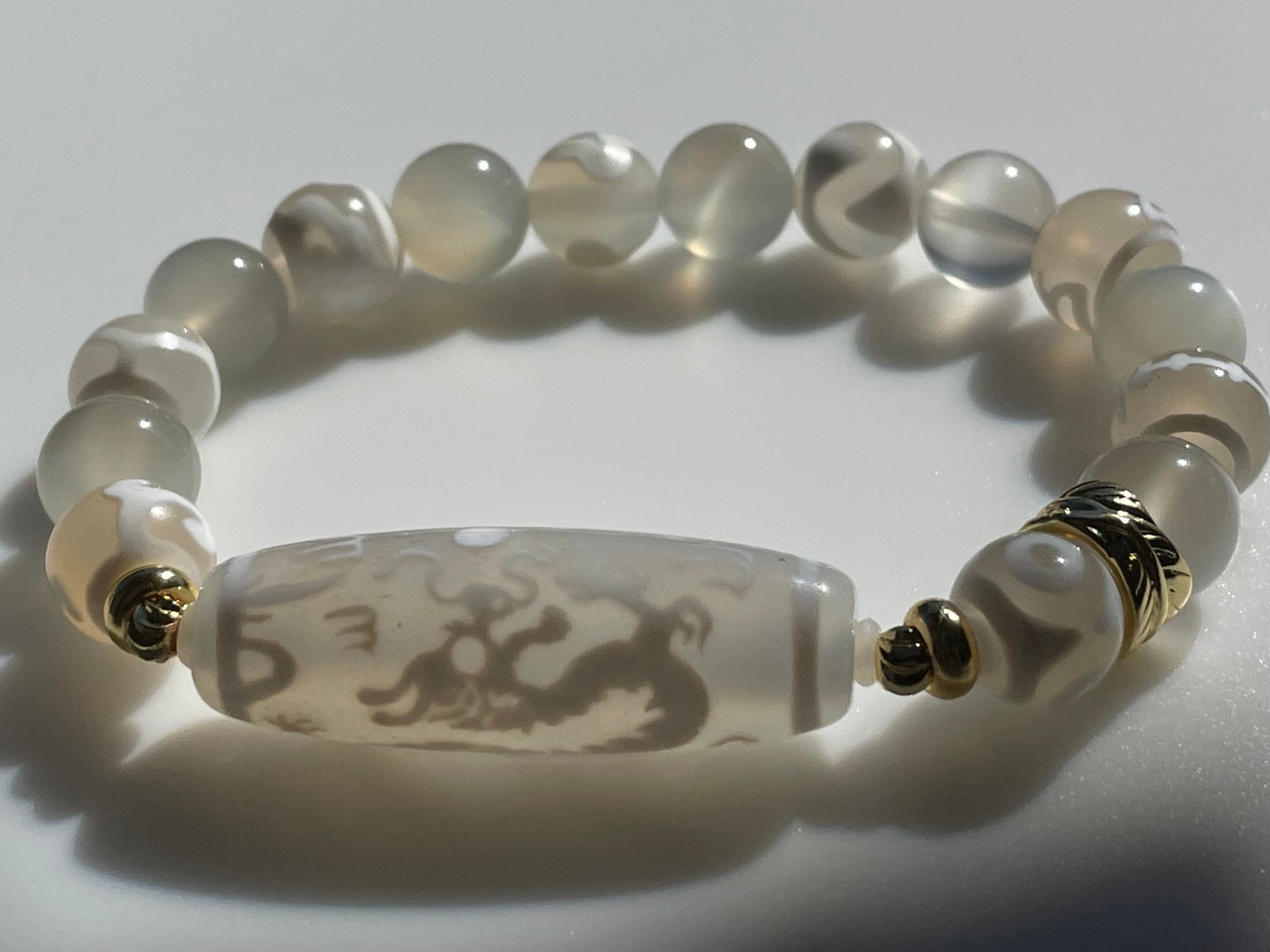 職人が一つ一つ瑪瑙に双皇帝龍を焼き付けて居る貴重な天珠です