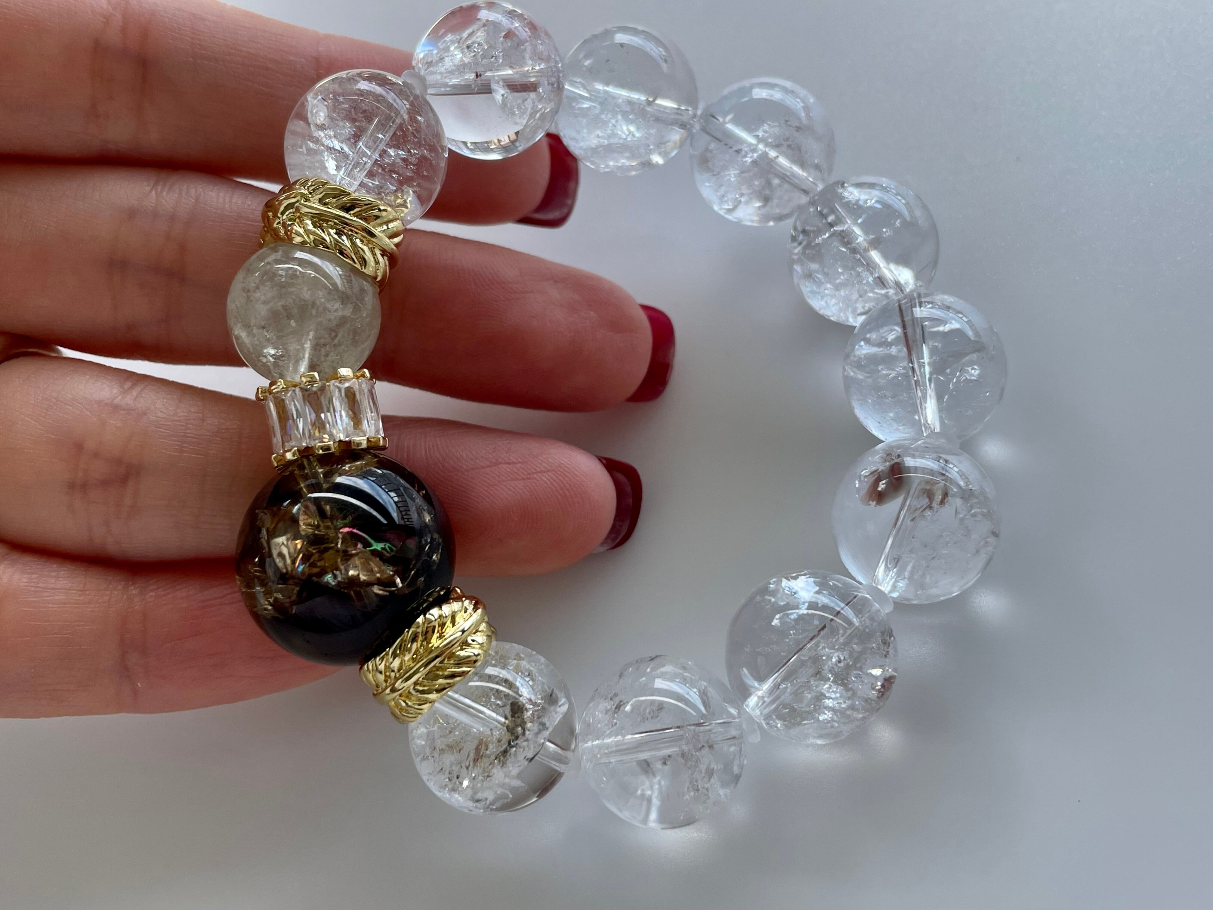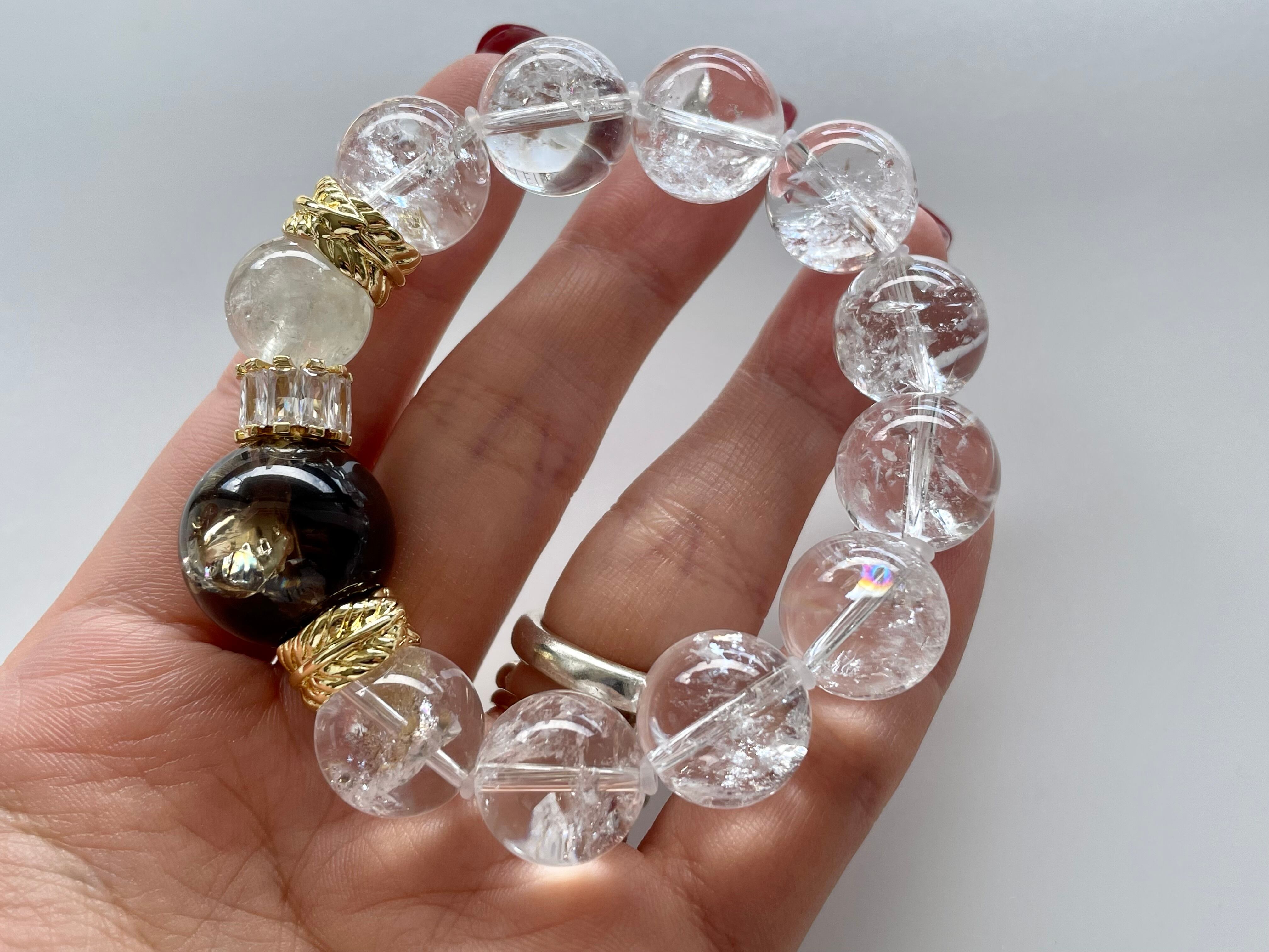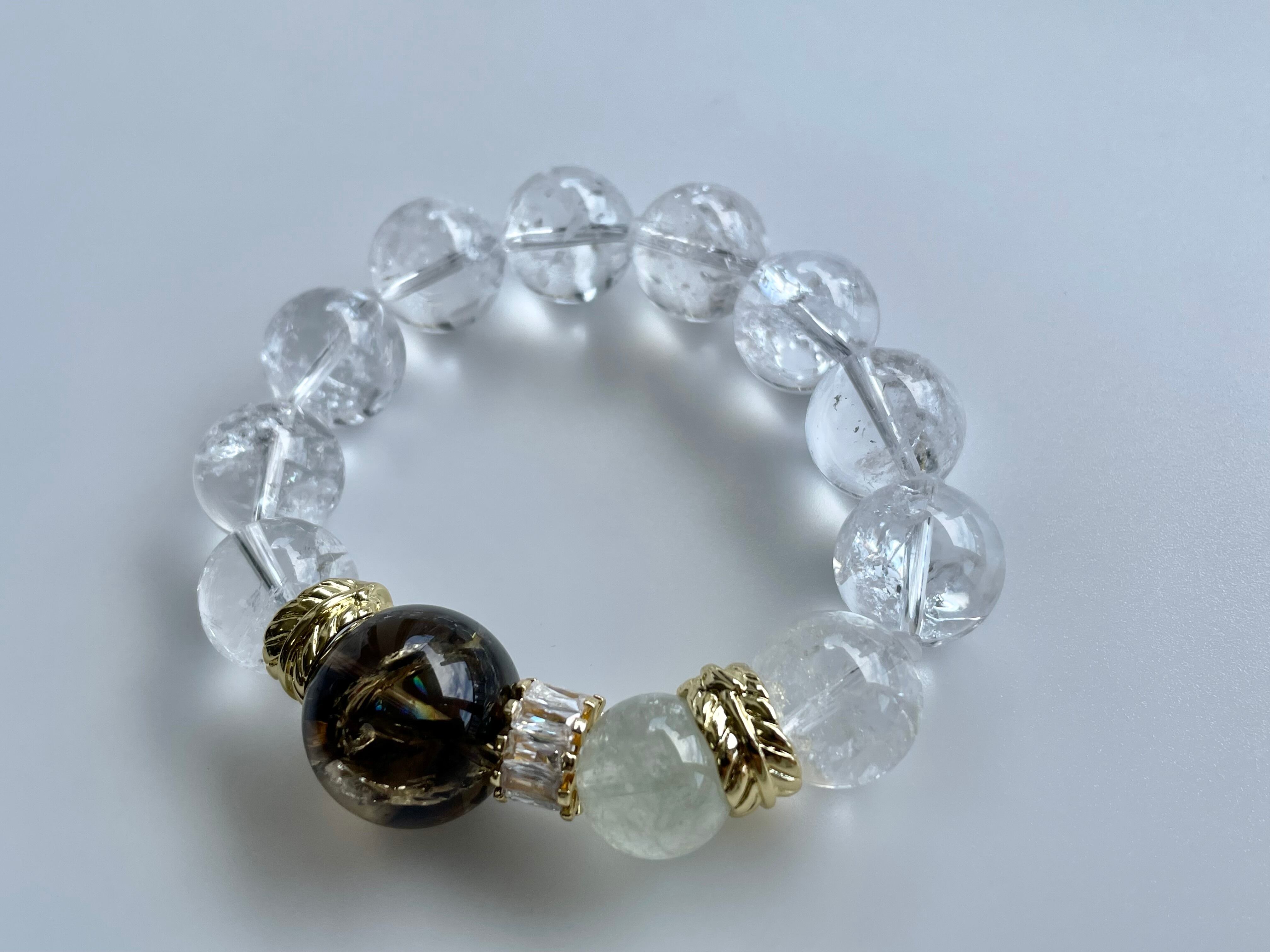 天然アイリスクォーツ スモーキークォーツ グリーンアメジスト デザインブレスレット