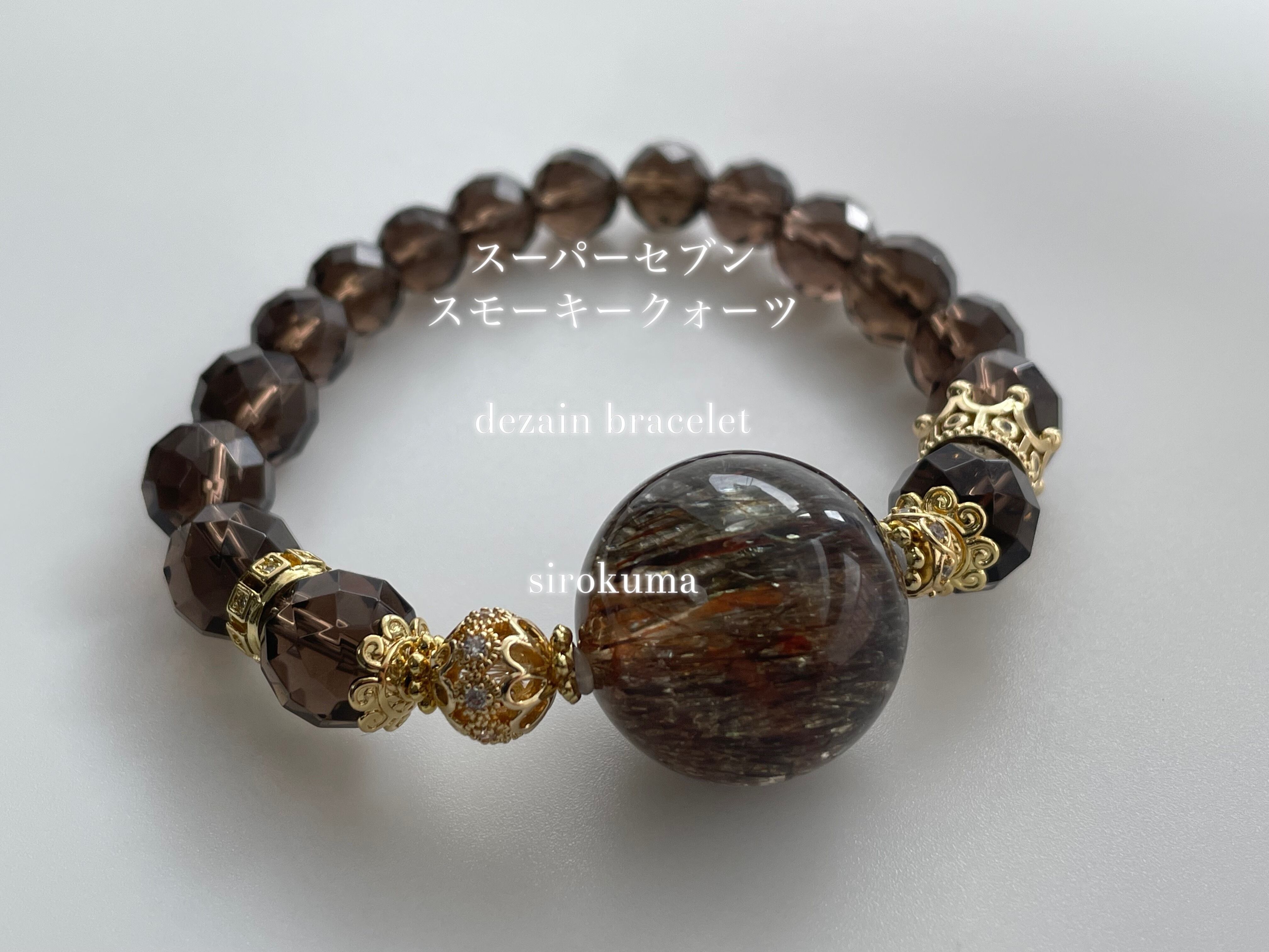 大玉スーパーセブン 多面カットスモーキークォーツ デザインブレスレット
