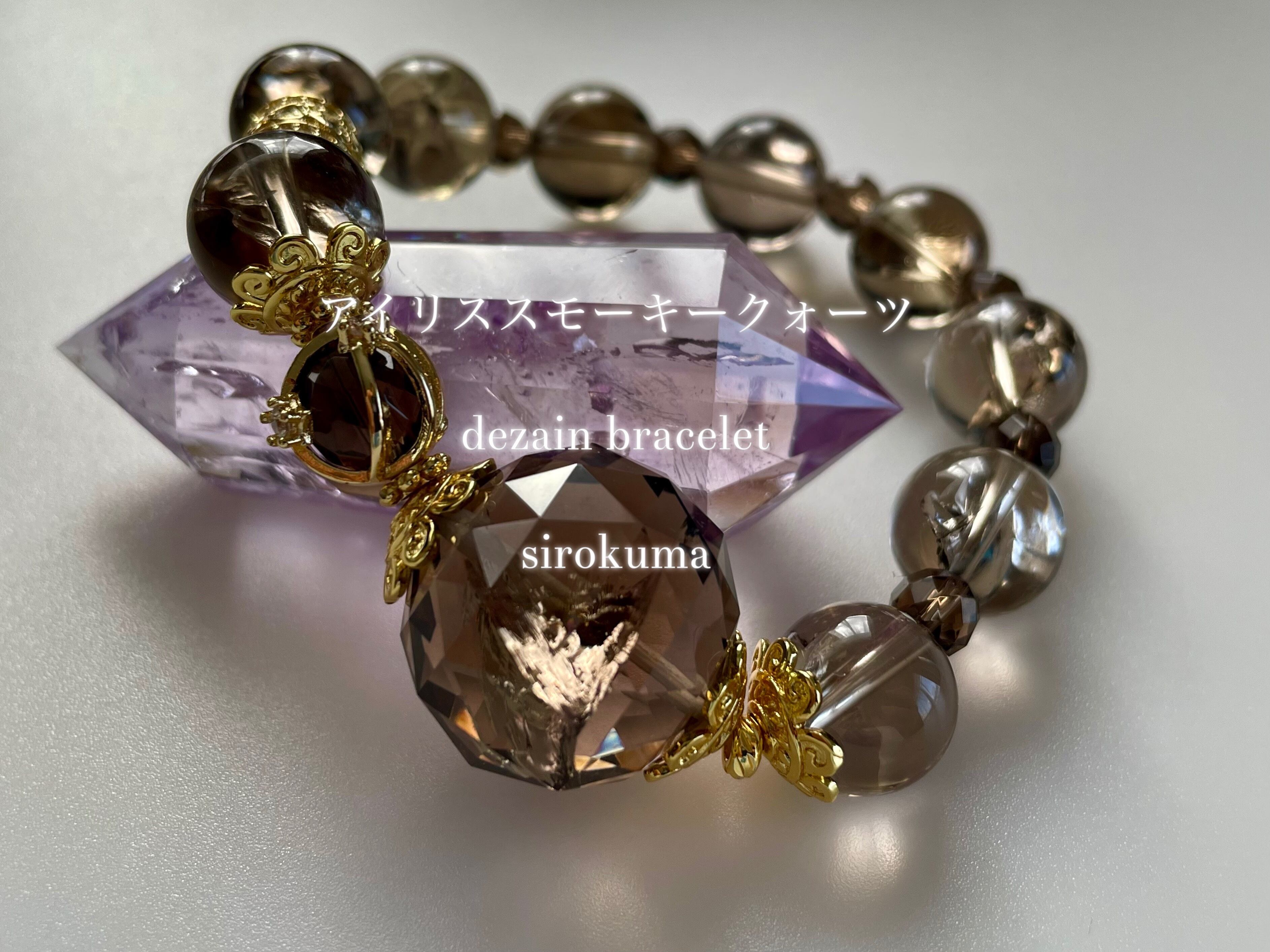 濃いスモーキークォーツのブレスレットですがアイリスが沢山入って居てとてもシックなブレスレットです