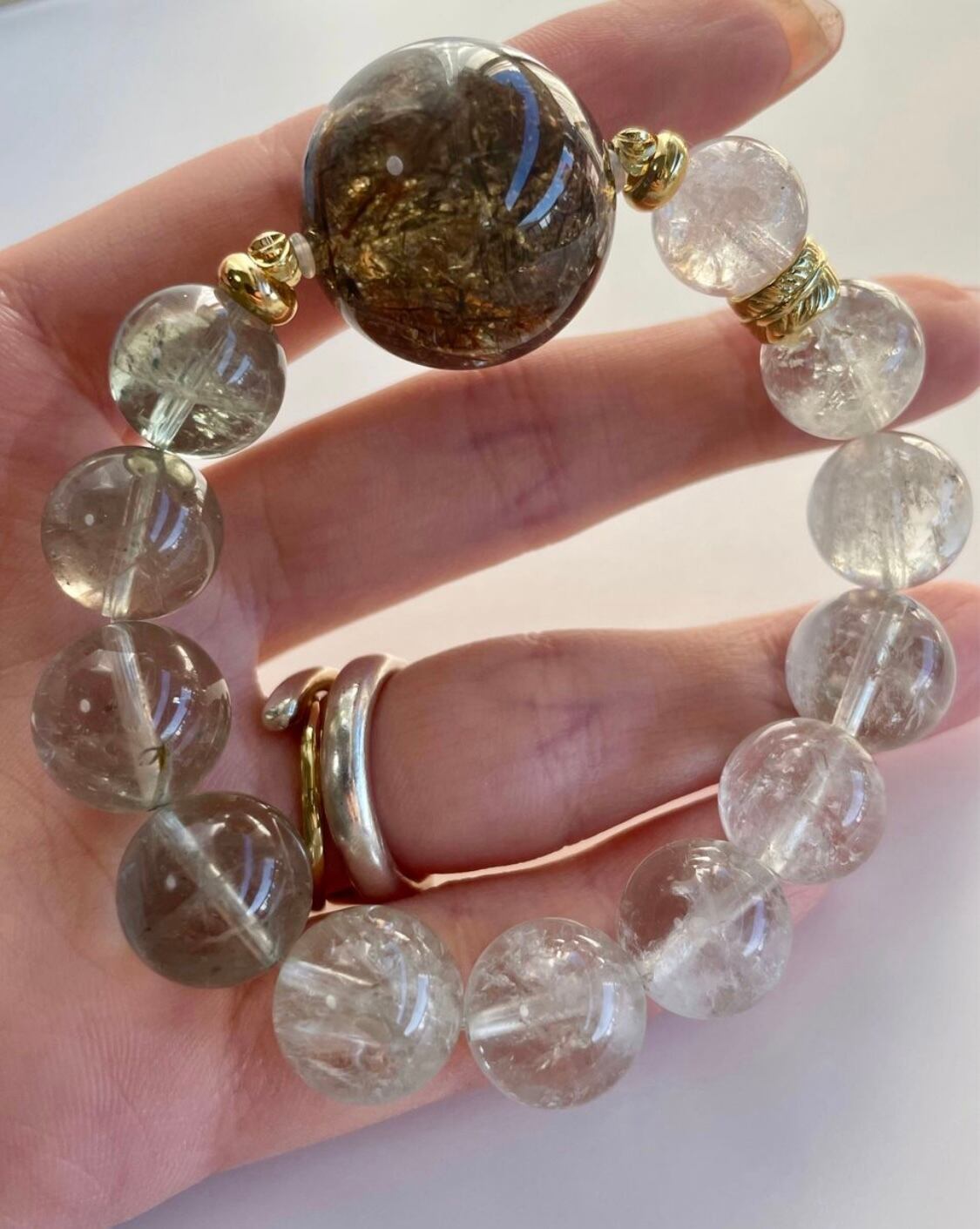 グリーンがかかったスーパーセブンは内包物もたっぷり入っていて 針ビッシリで煌めきも沢山あります
