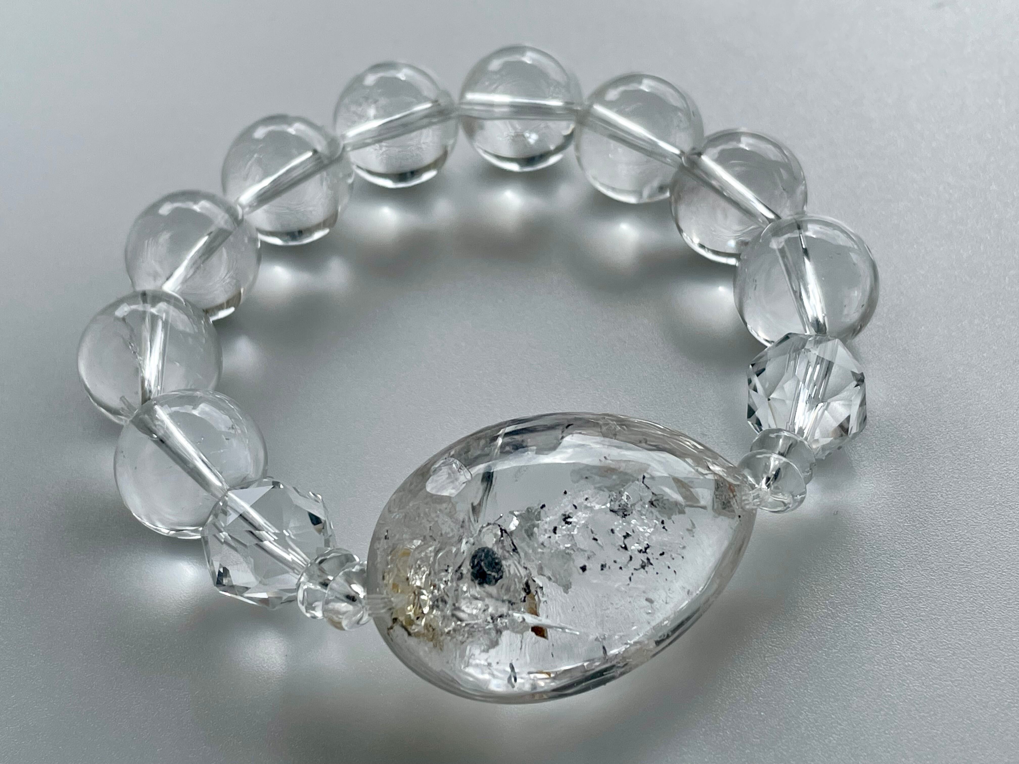 パーツを使用せず、オール水晶で作ったブレスレットで、透明感も高くとても綺麗でおすすめです