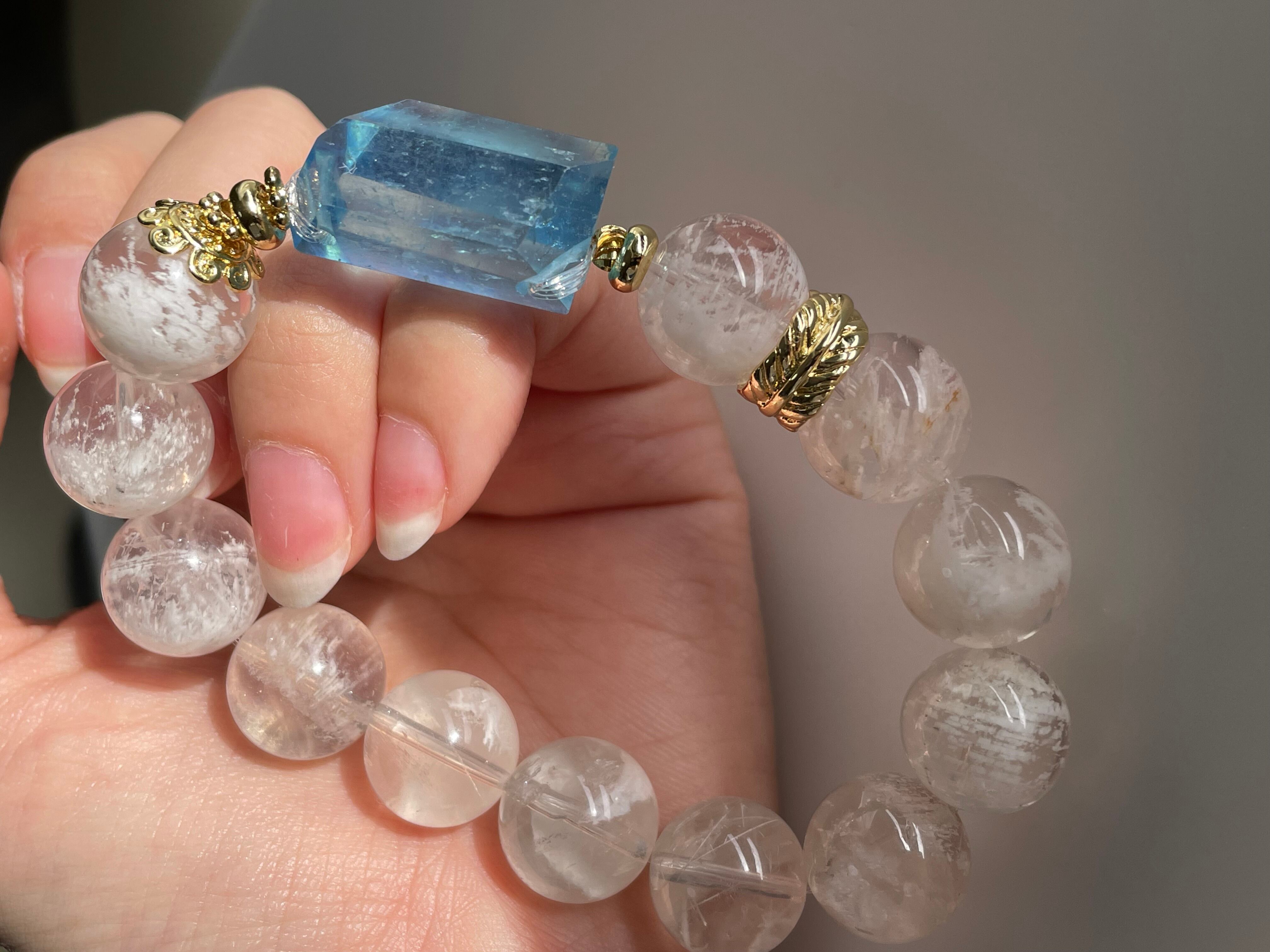 アクアマリン セリサイトインクォーツ デザインブレスレット
