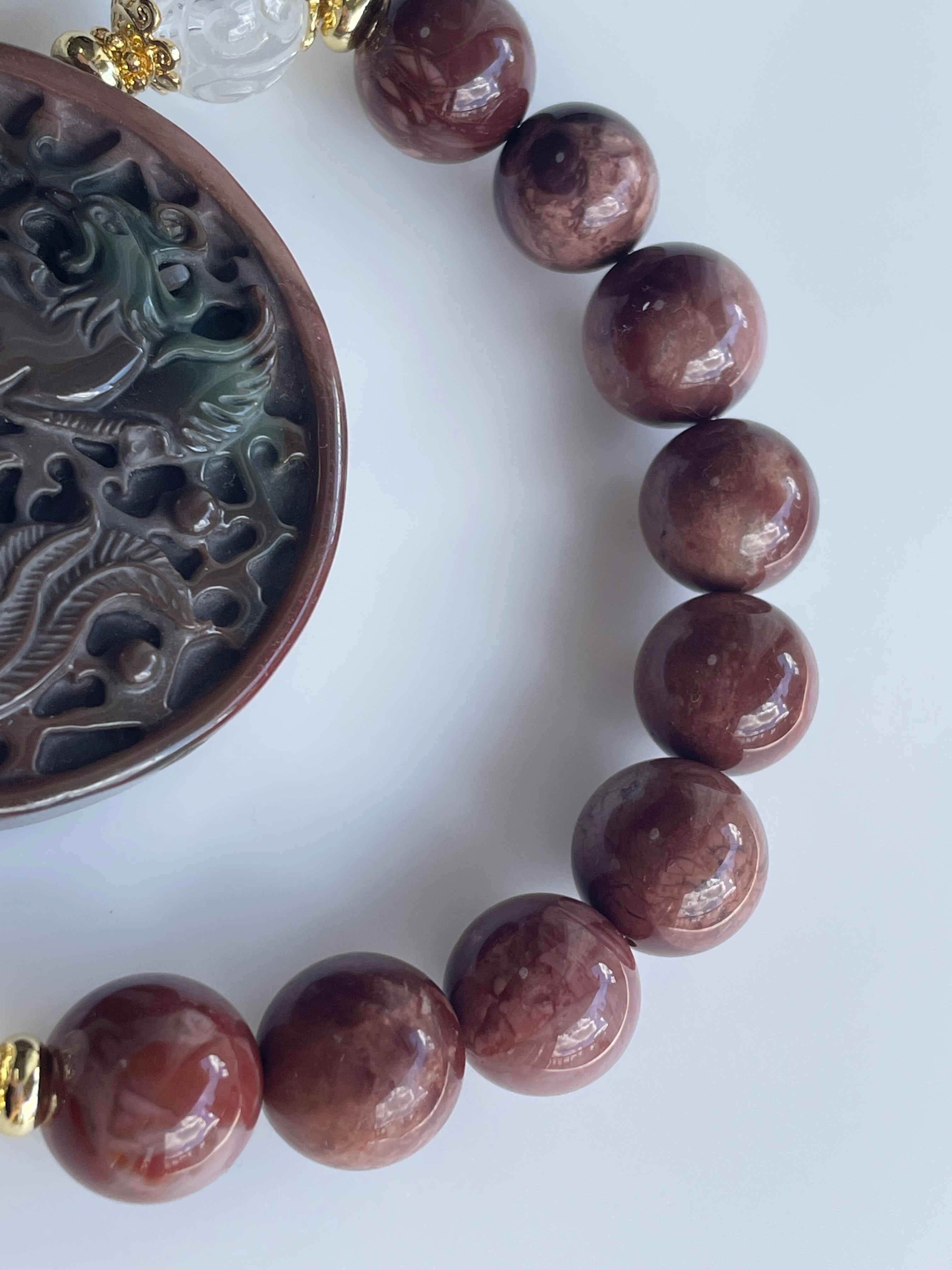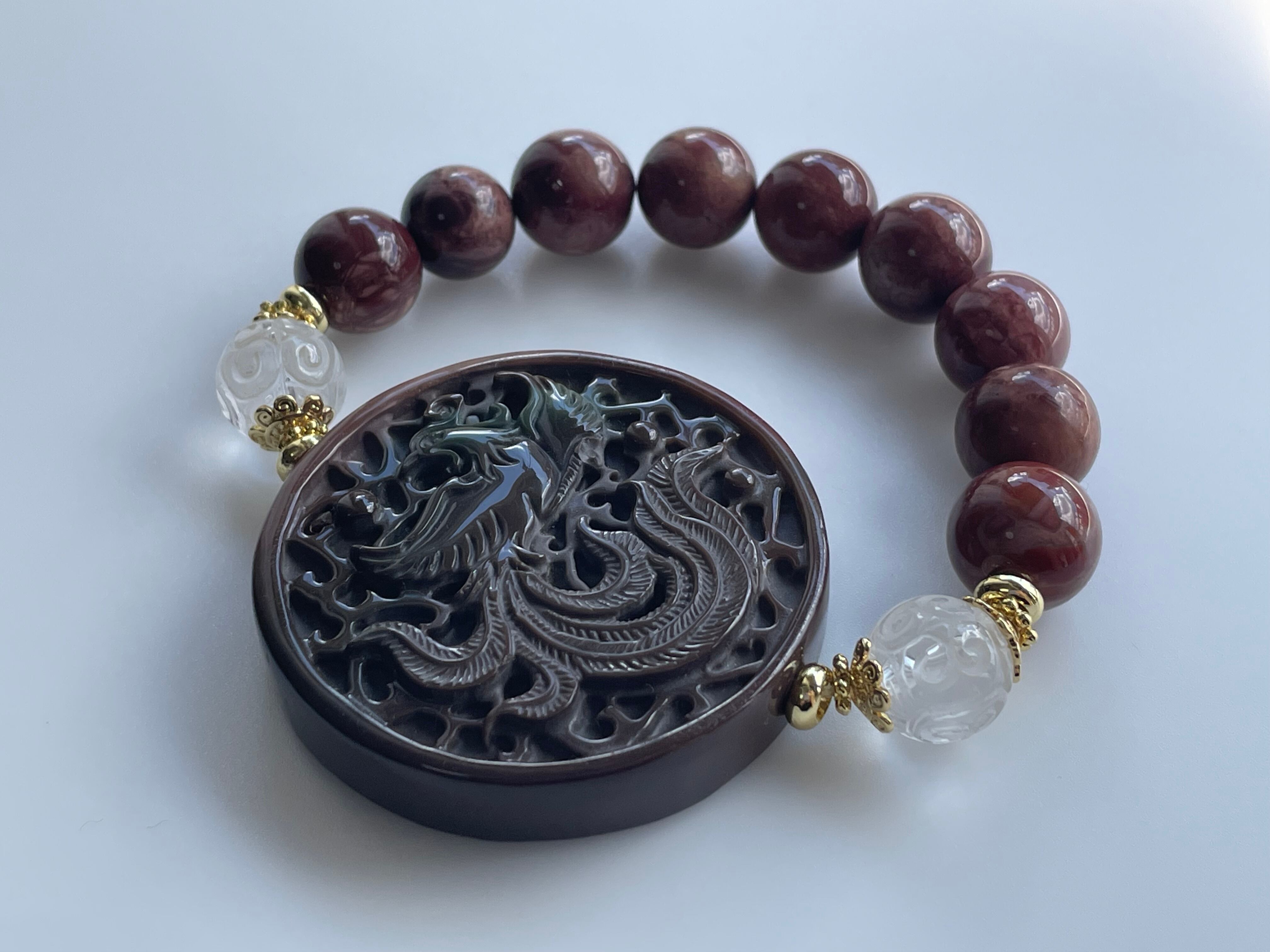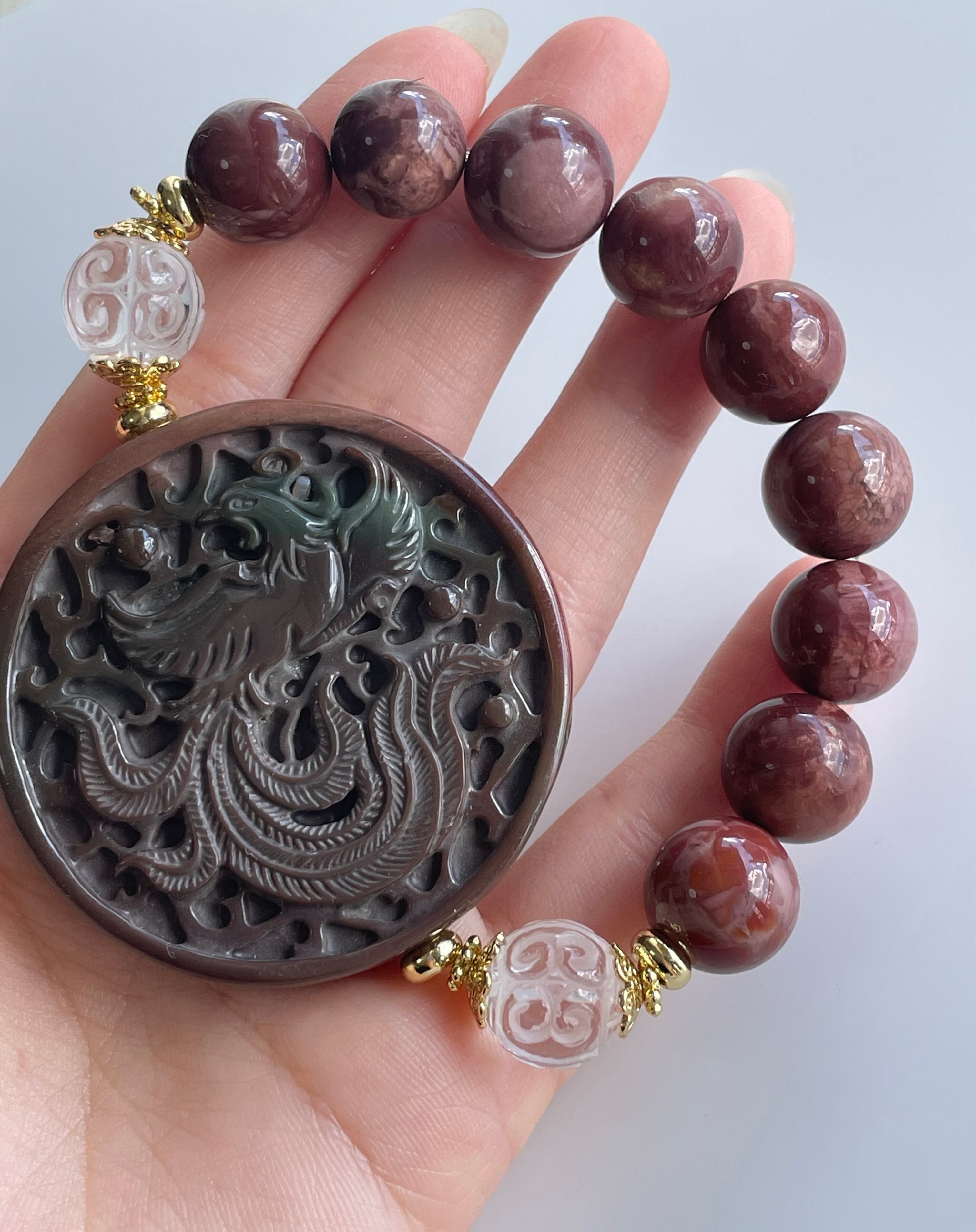 オーシャンジャスパー鳳凰 チョコレートアラシャン 水晶回文殊 デザインブレスレット