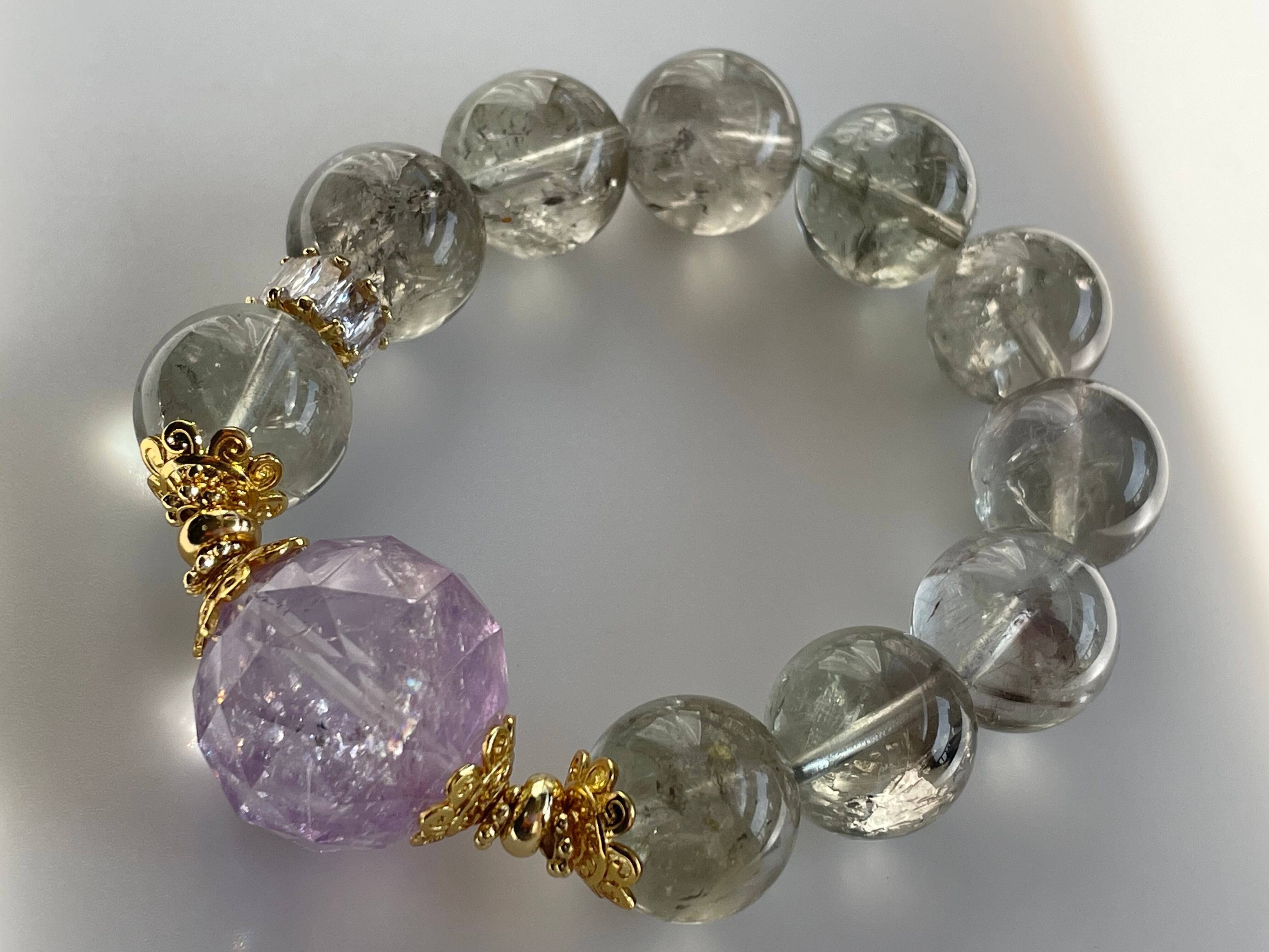 大玉アイリス ブラック グリーン アメジスト プラジオライト デザインブレスレット