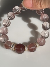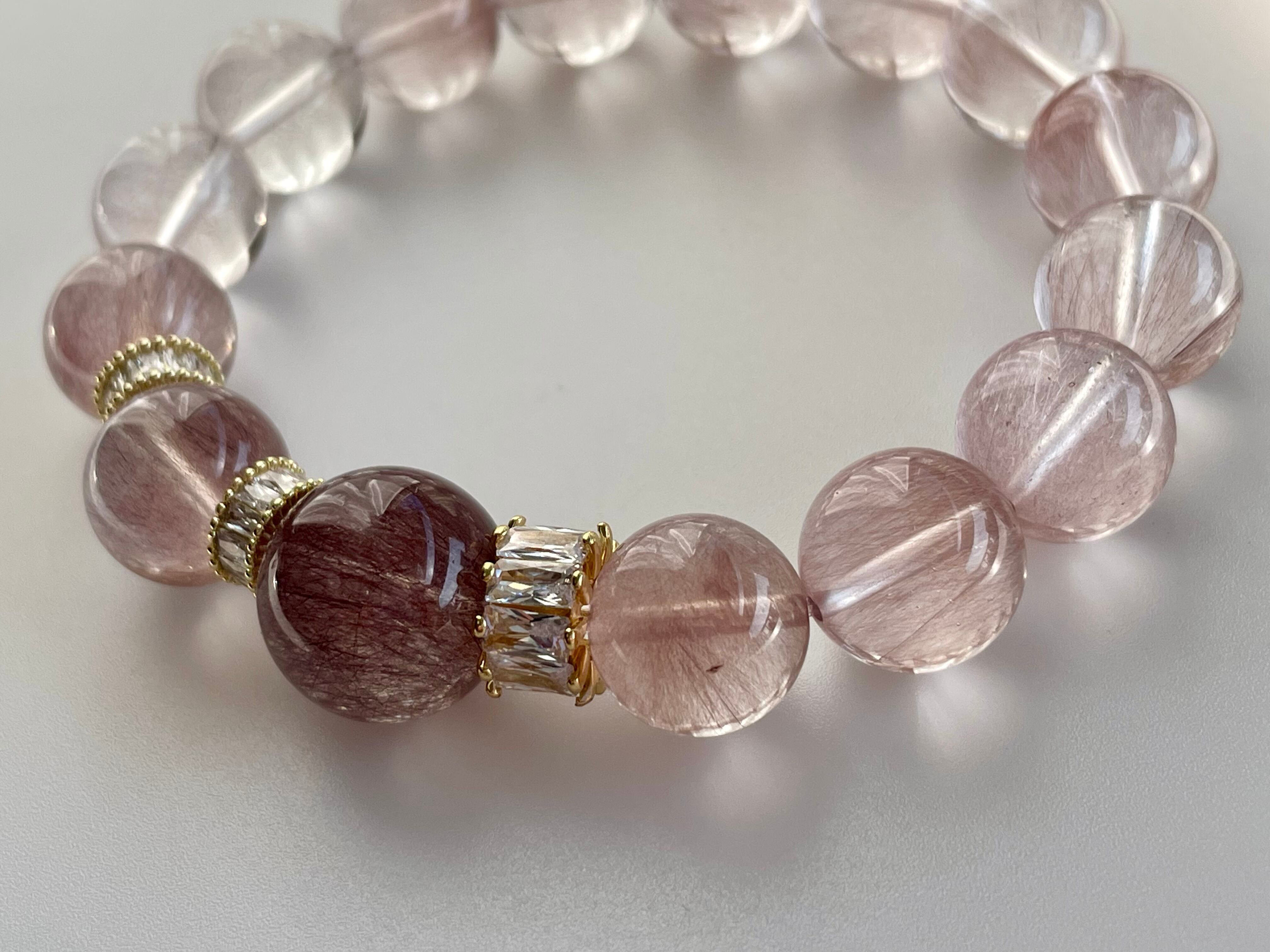 ピンクパープルサゲニティッククォーツデザインブレスレット