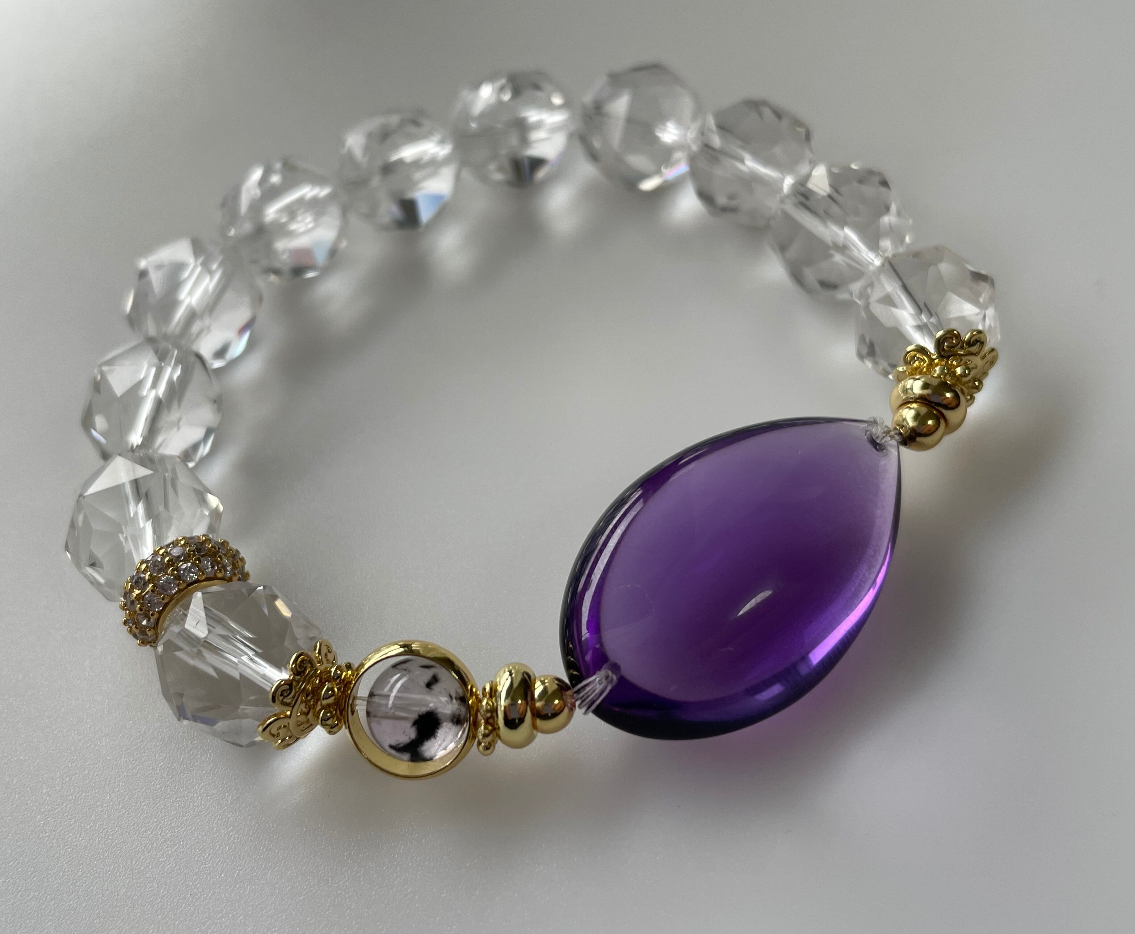 アメジスト ロマネサイト カット水晶 デザインブレスレット