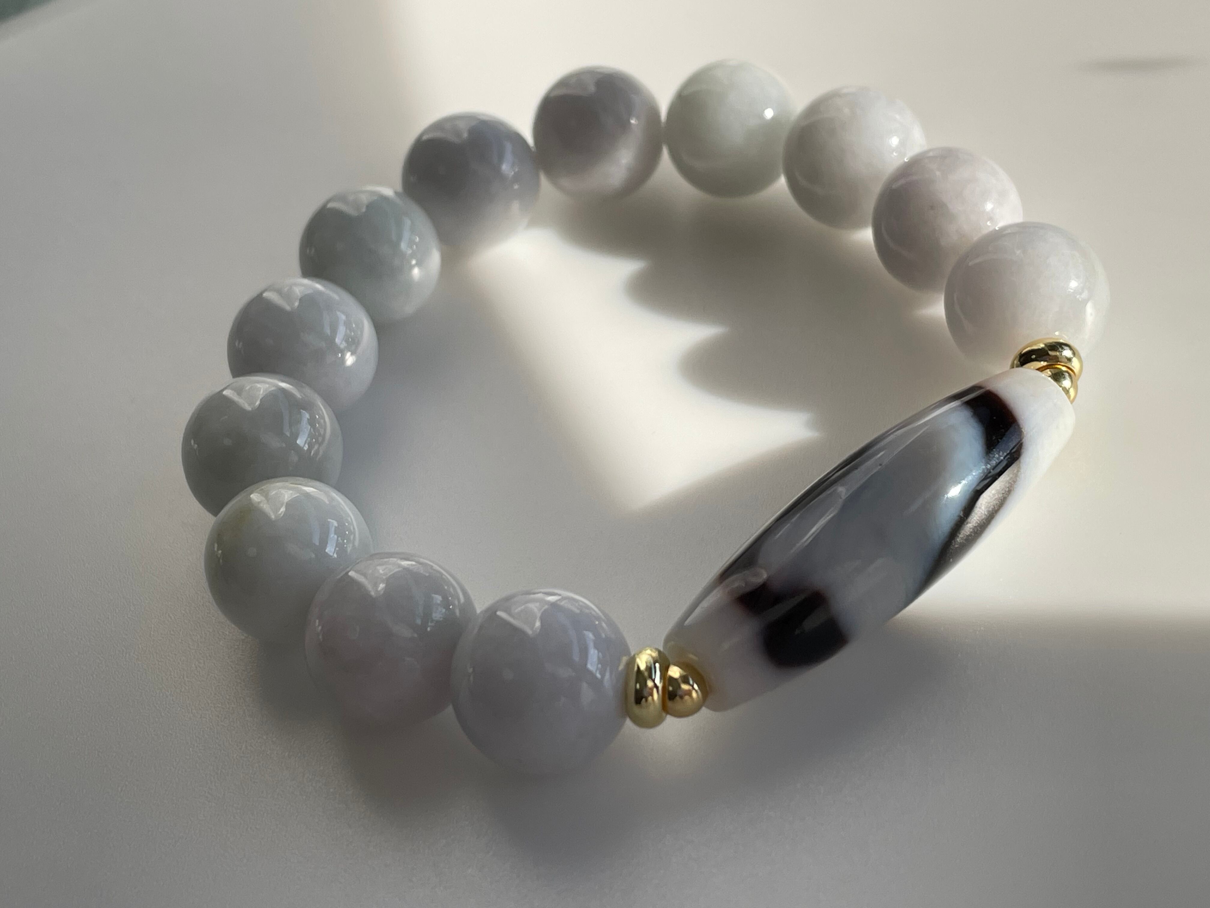 糸魚川翡翠 至純天珠 白蛇天珠 デザインブレスレット