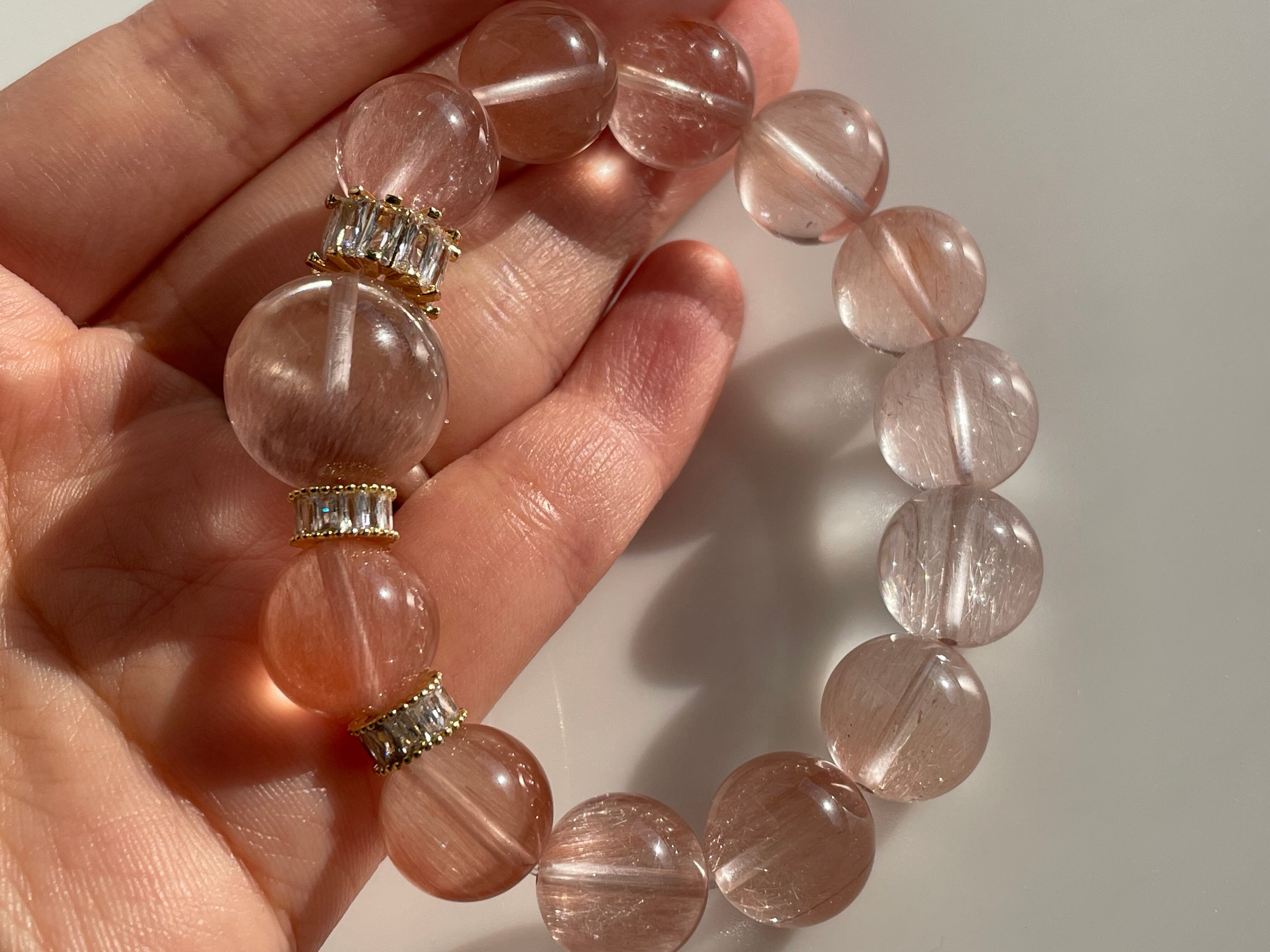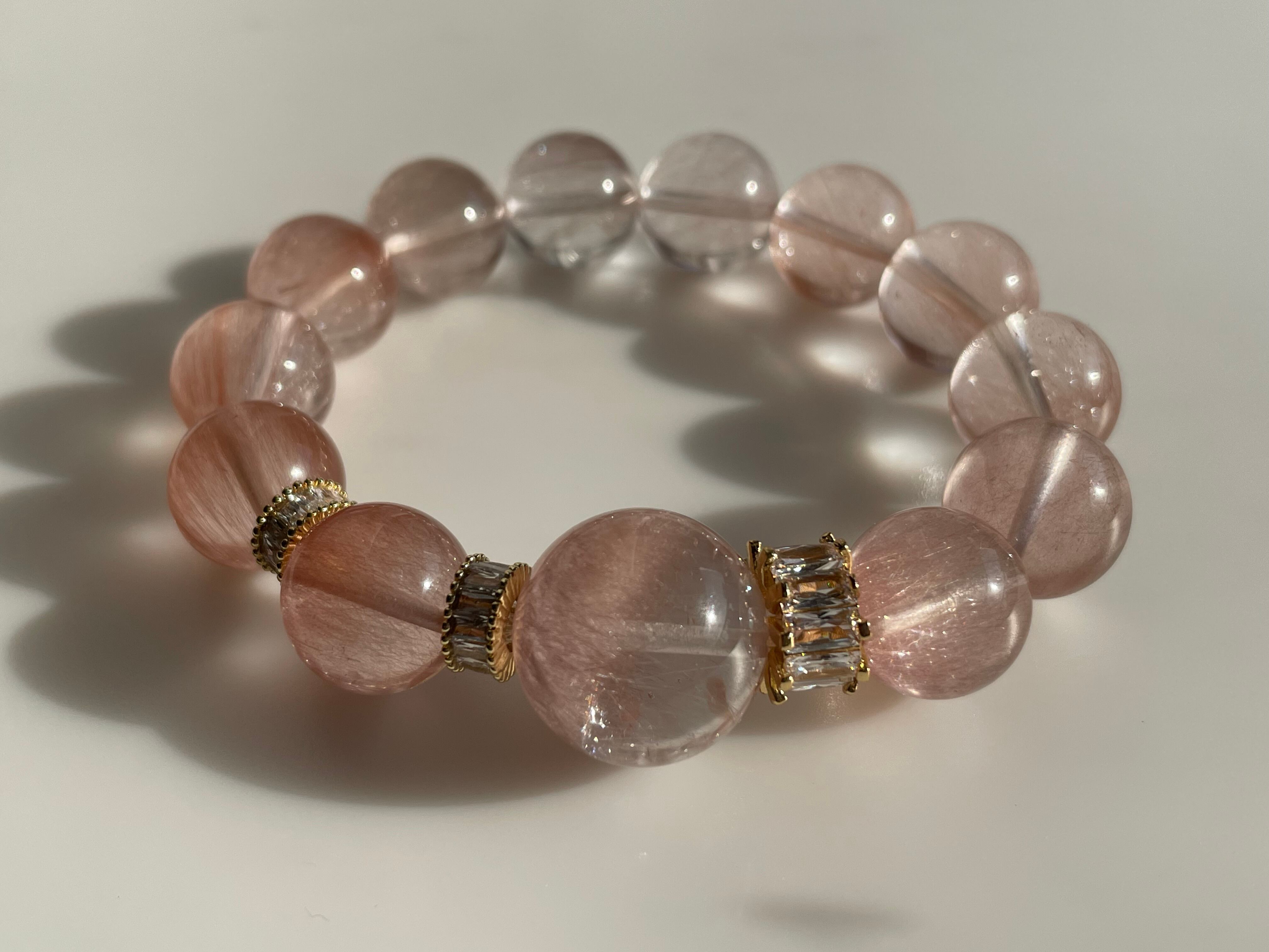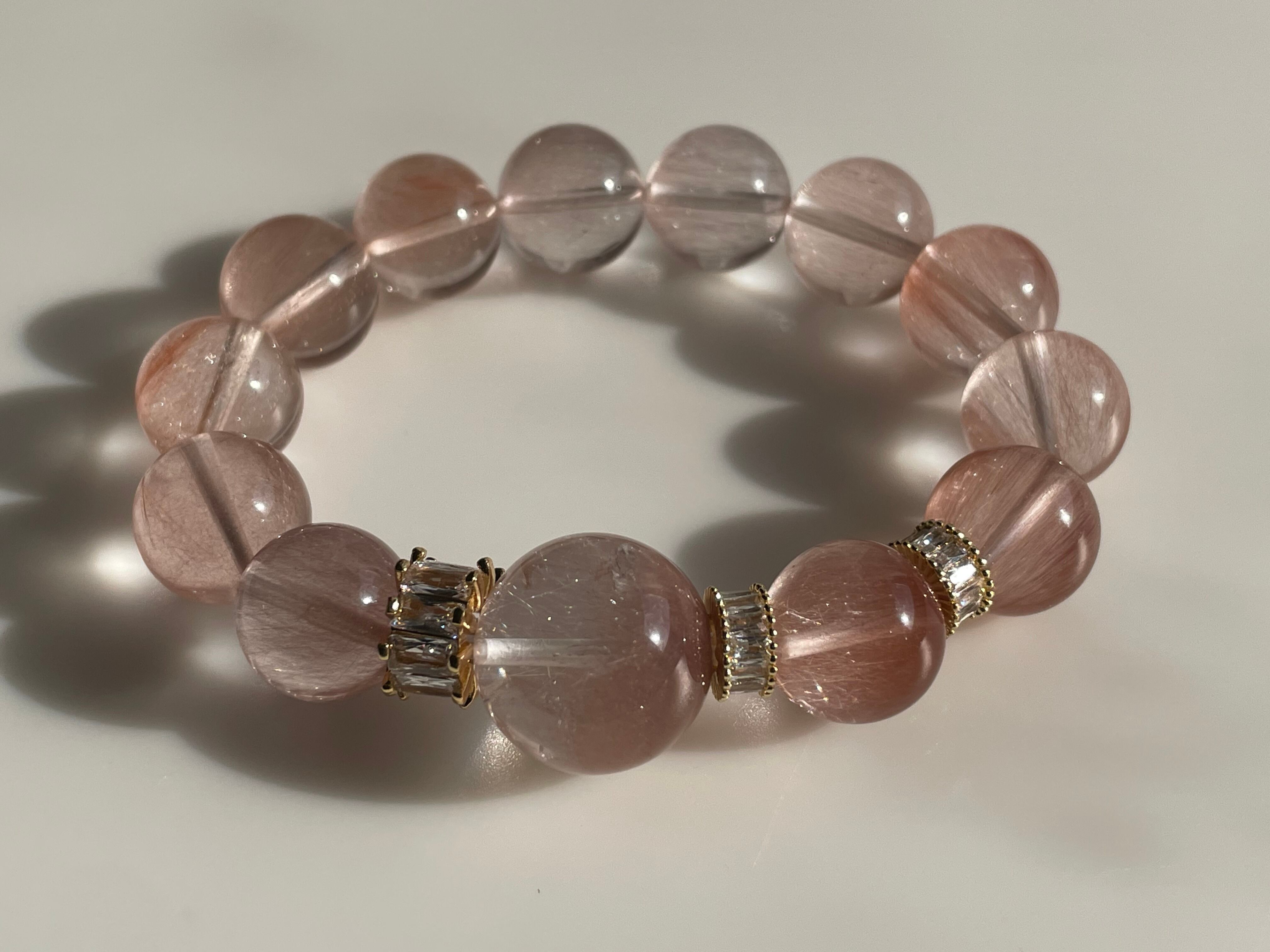 高品質ピンクサゲニティッククォーツデザインブレスレット