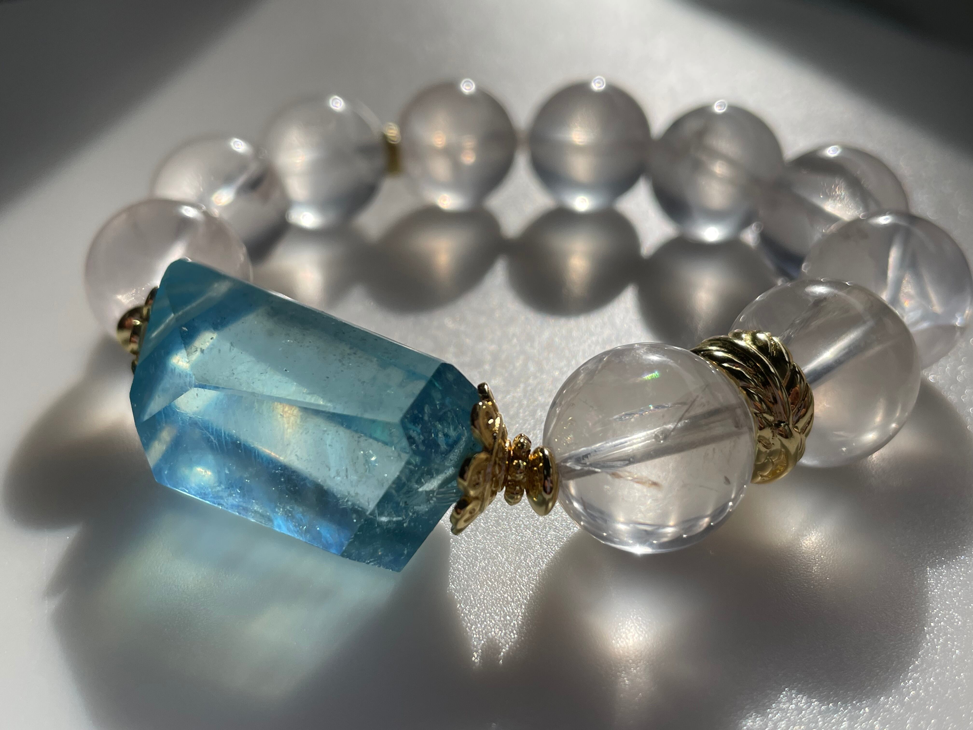 アクアマリン アイリスローズクォーツデザインブレスレット