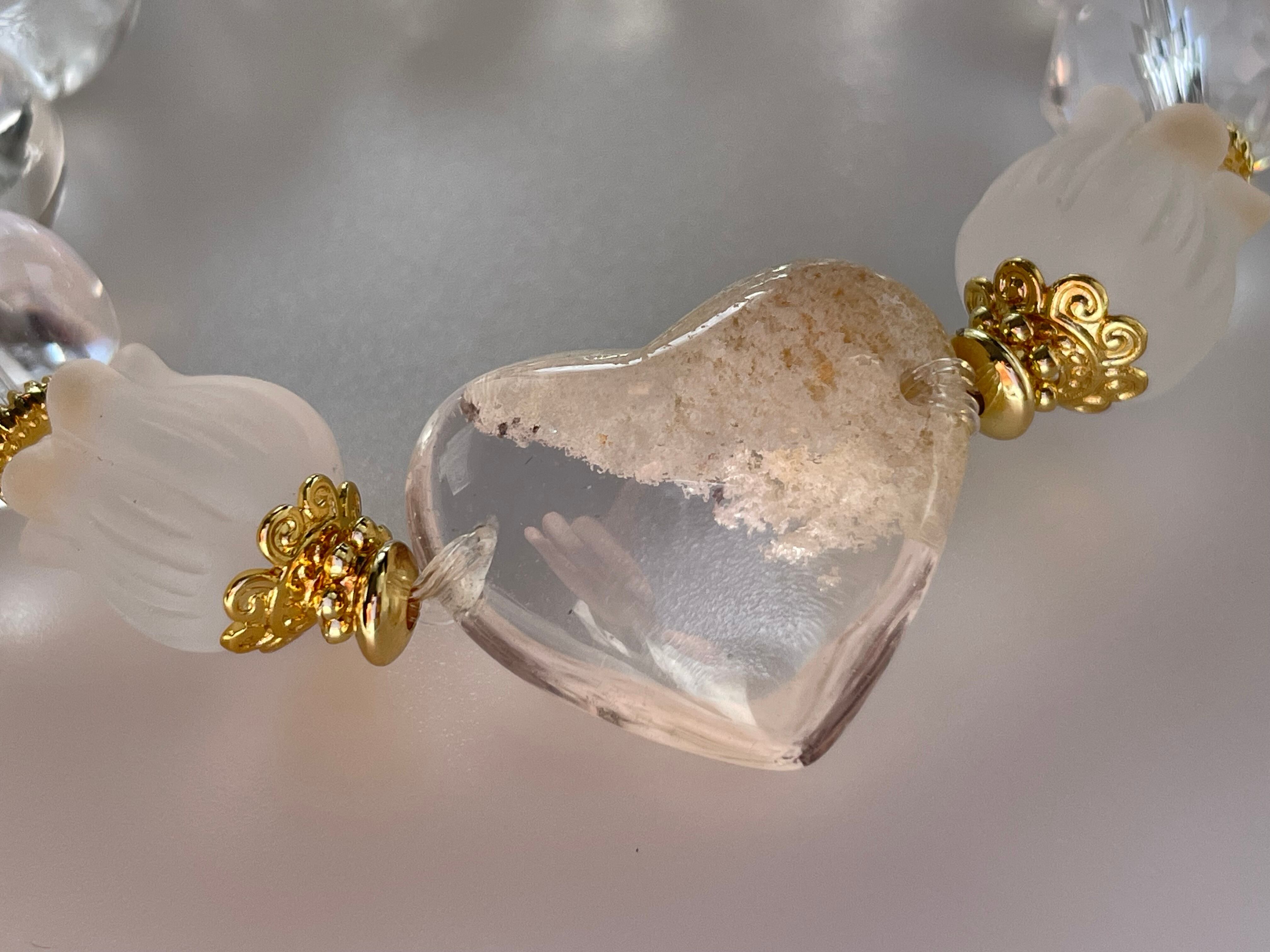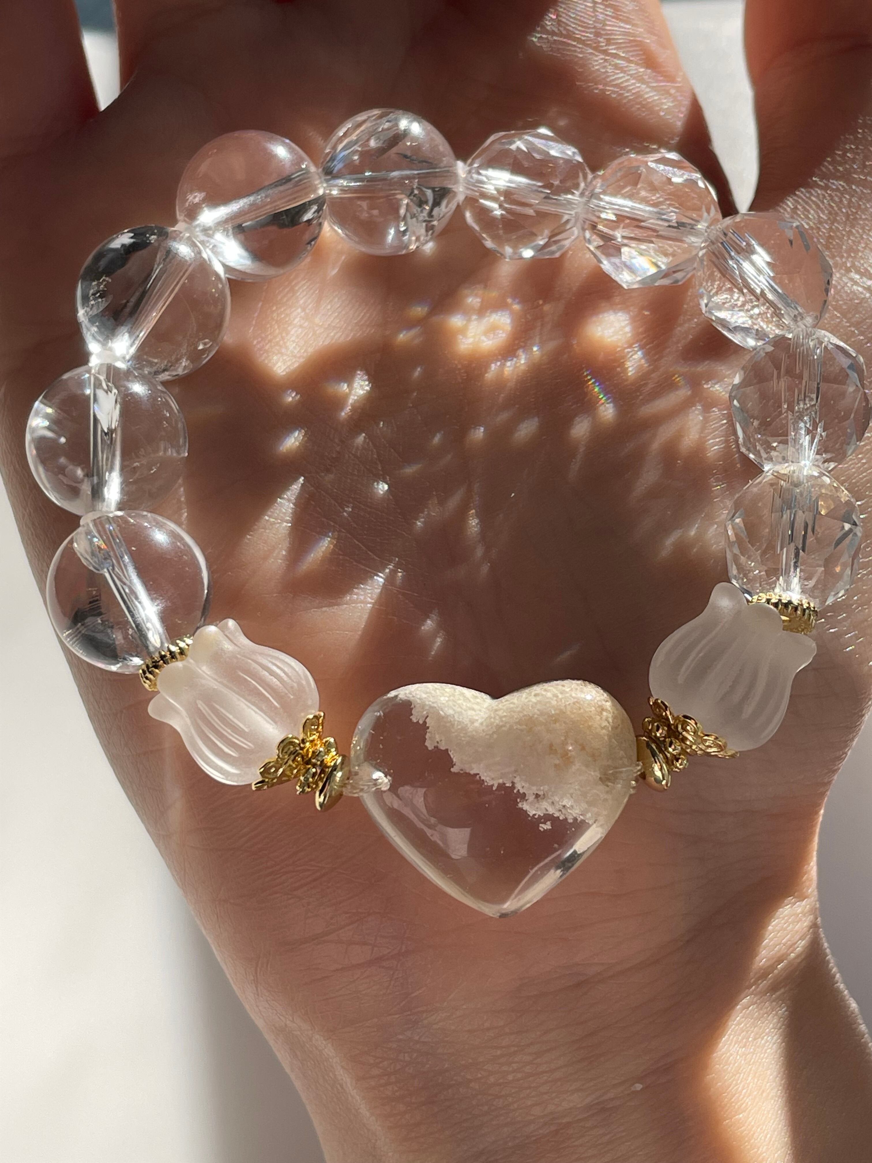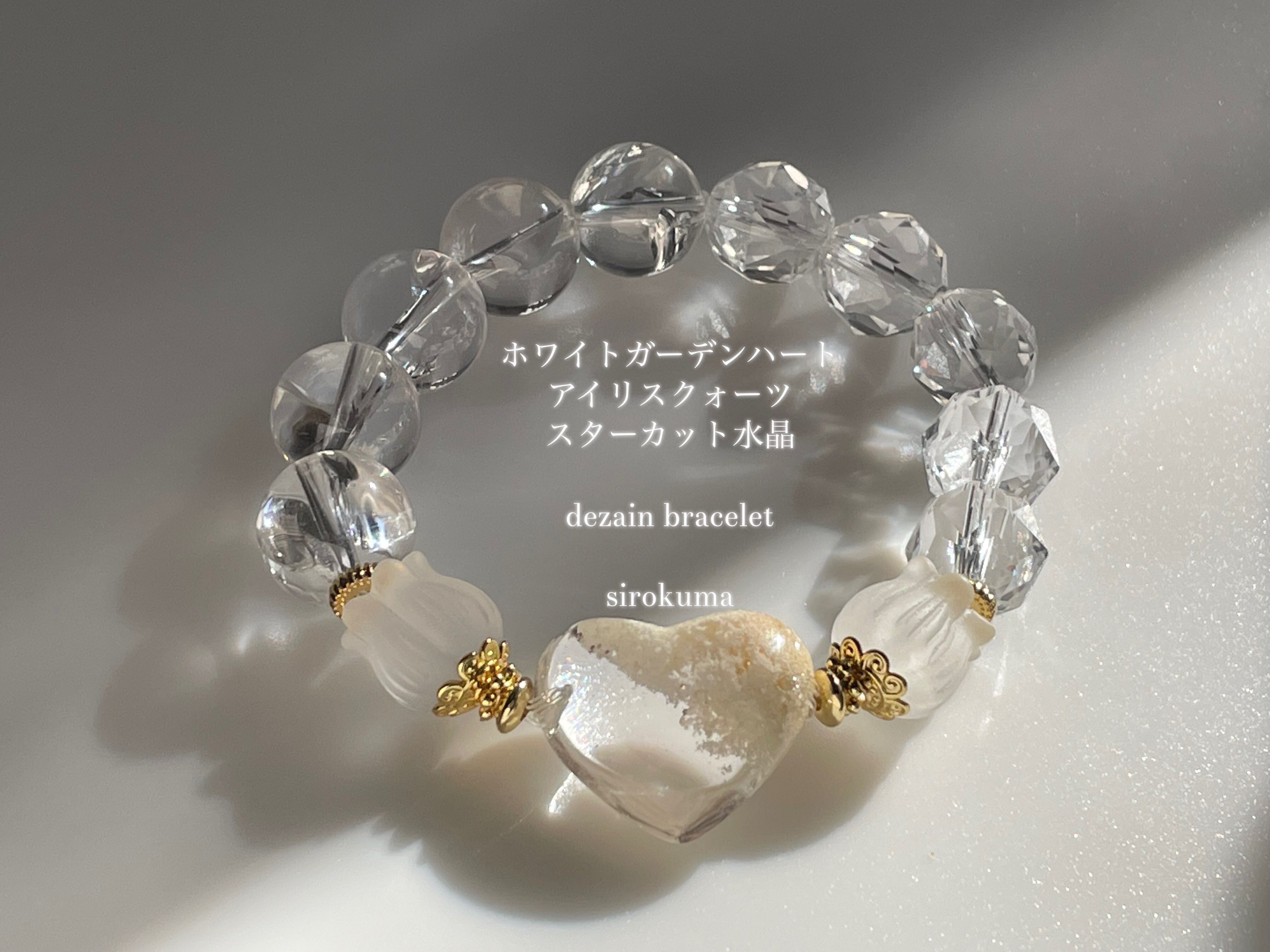 ホワイトガーデンクォーツハート 胡蝶蘭水晶 スターカット水晶 アイリスクォーツデザインブレスレット