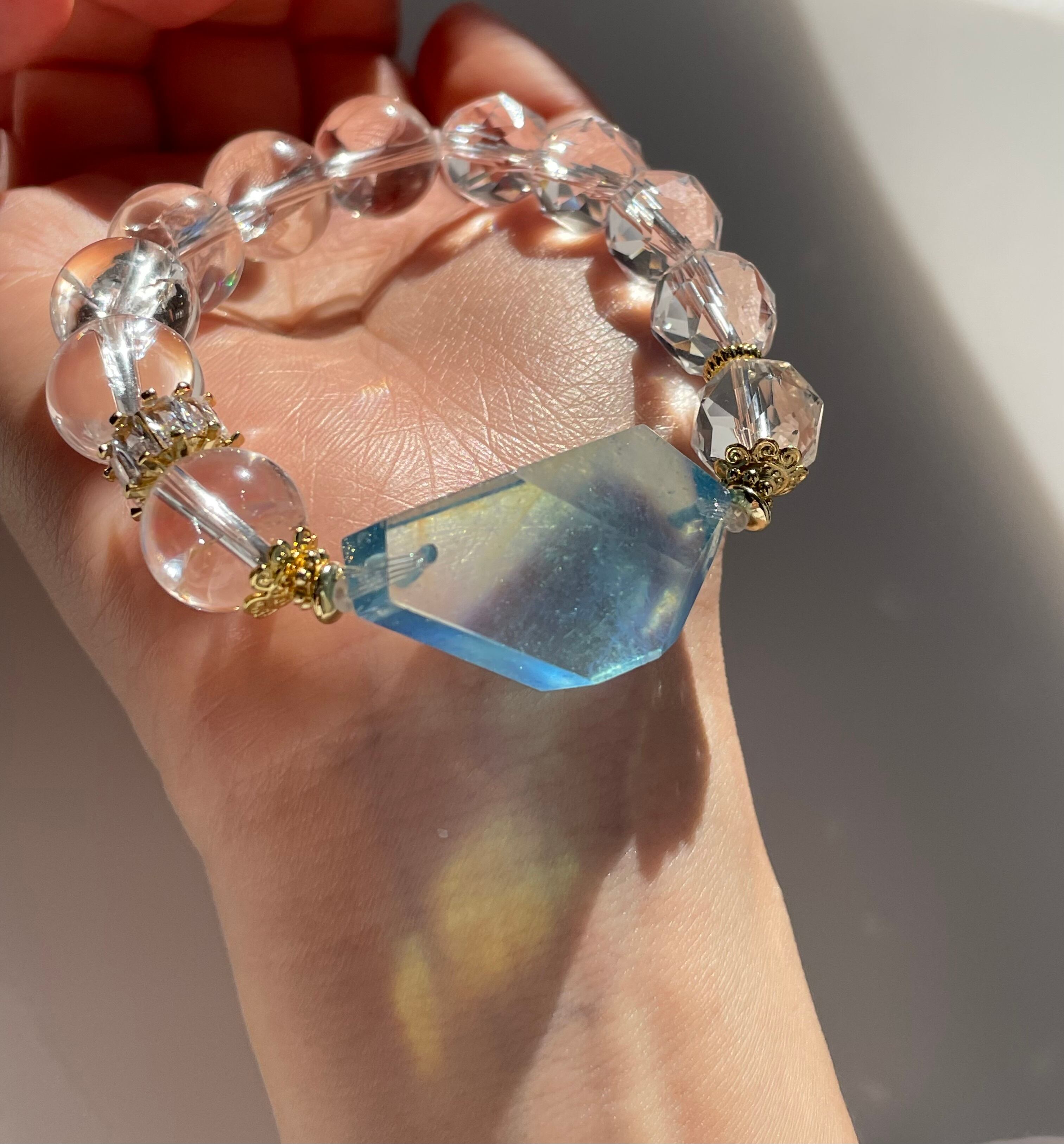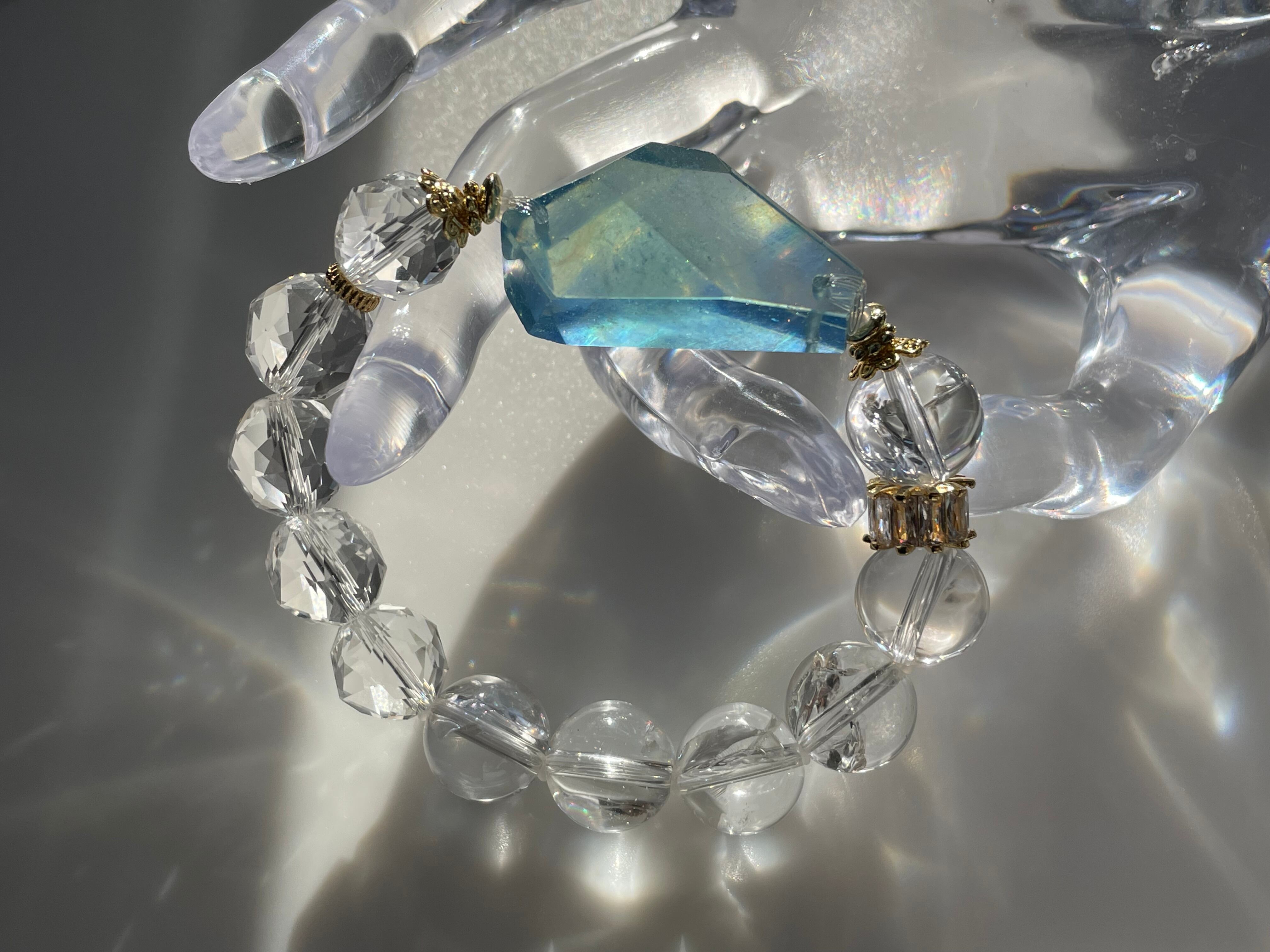 アクアマリン アイリスクォーツ カット水晶デザインブレスレット