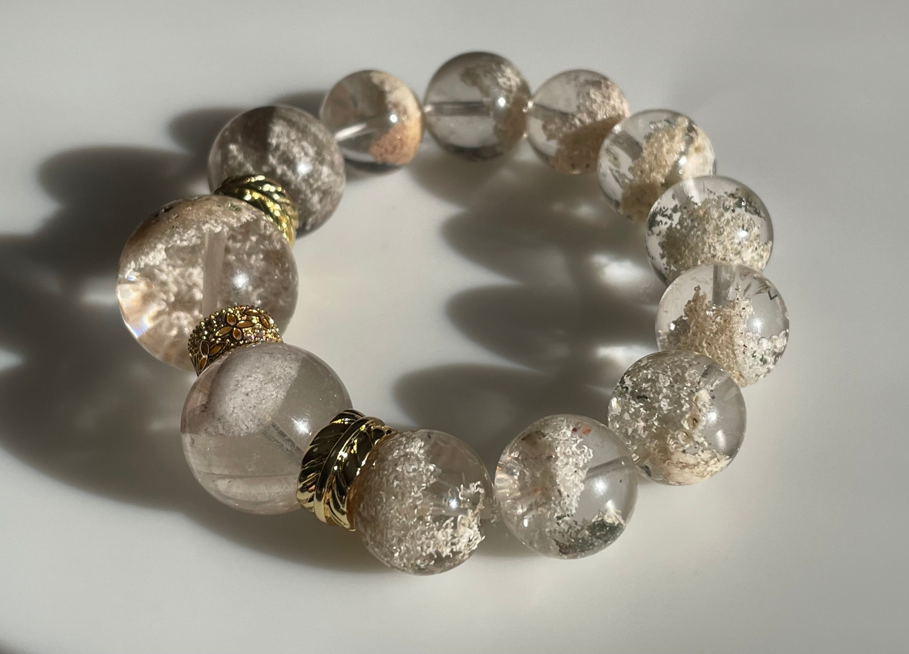 ホワイトガーデンクォーツは、まるで雪景色の様な世界が水晶中に広がる石で、神秘的であり、静かな力強さを持つ石です。