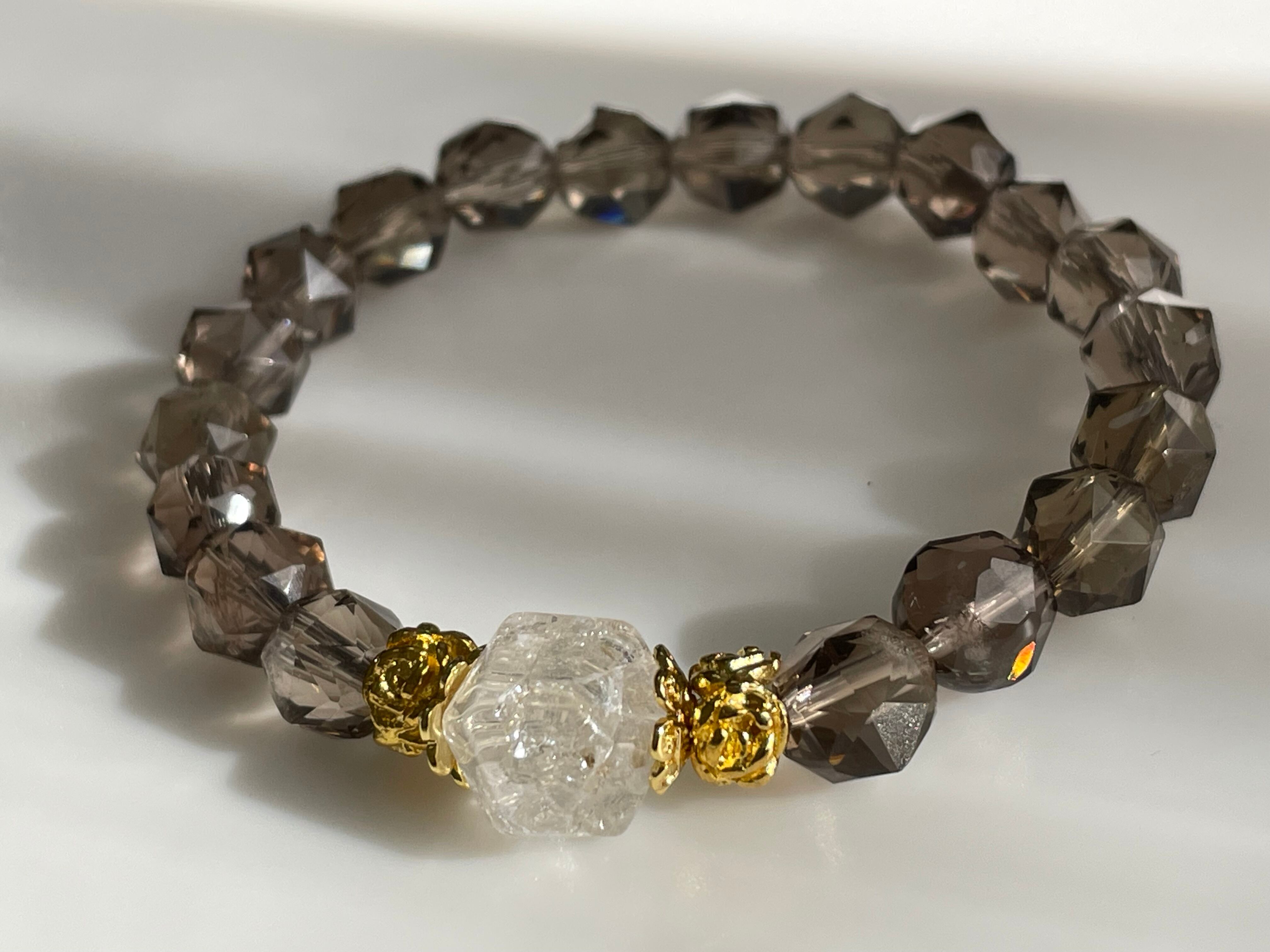 厄除けにいいとされているスモーキークォーツのデザインブレスレット2本セットです。