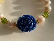 淡水パールにラピスラズリの大輪の薔薇にペリドットをポイントでドレッシーなブレスレットになりましたm(_ _)m