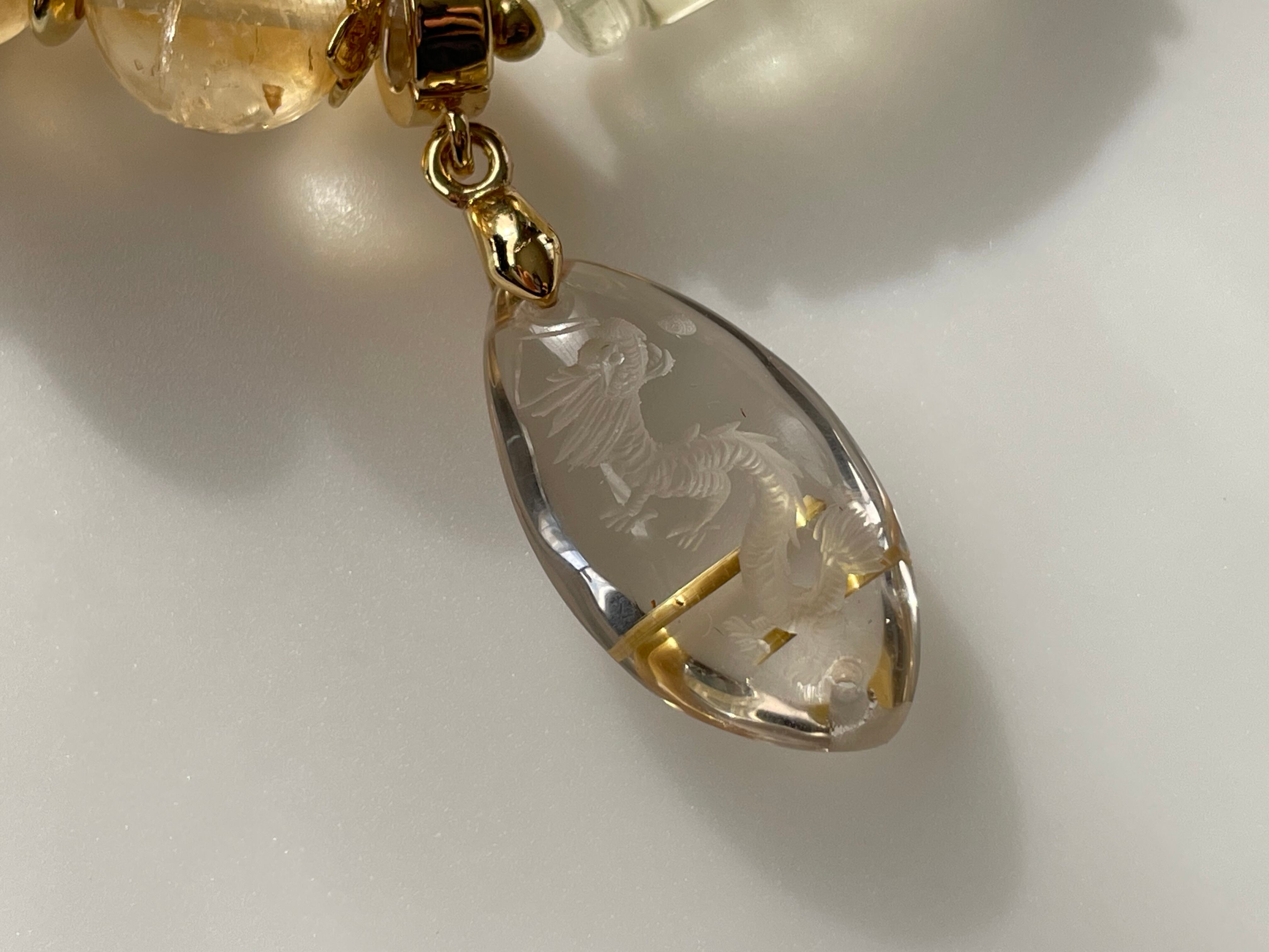 リビアン九眼天珠 アイリスシトリン 龍彫りタイチンルチルチャーム デザインブレスレット