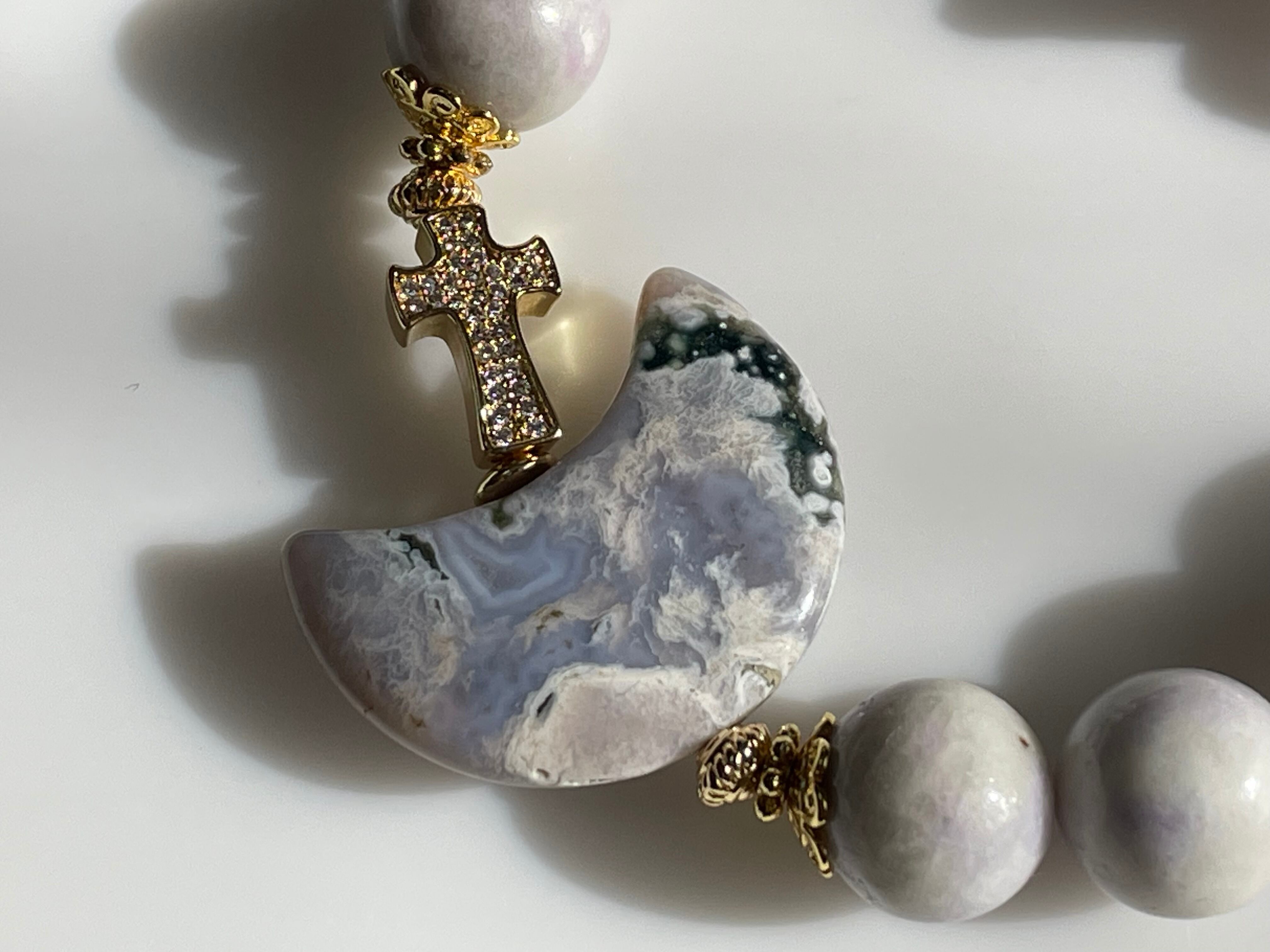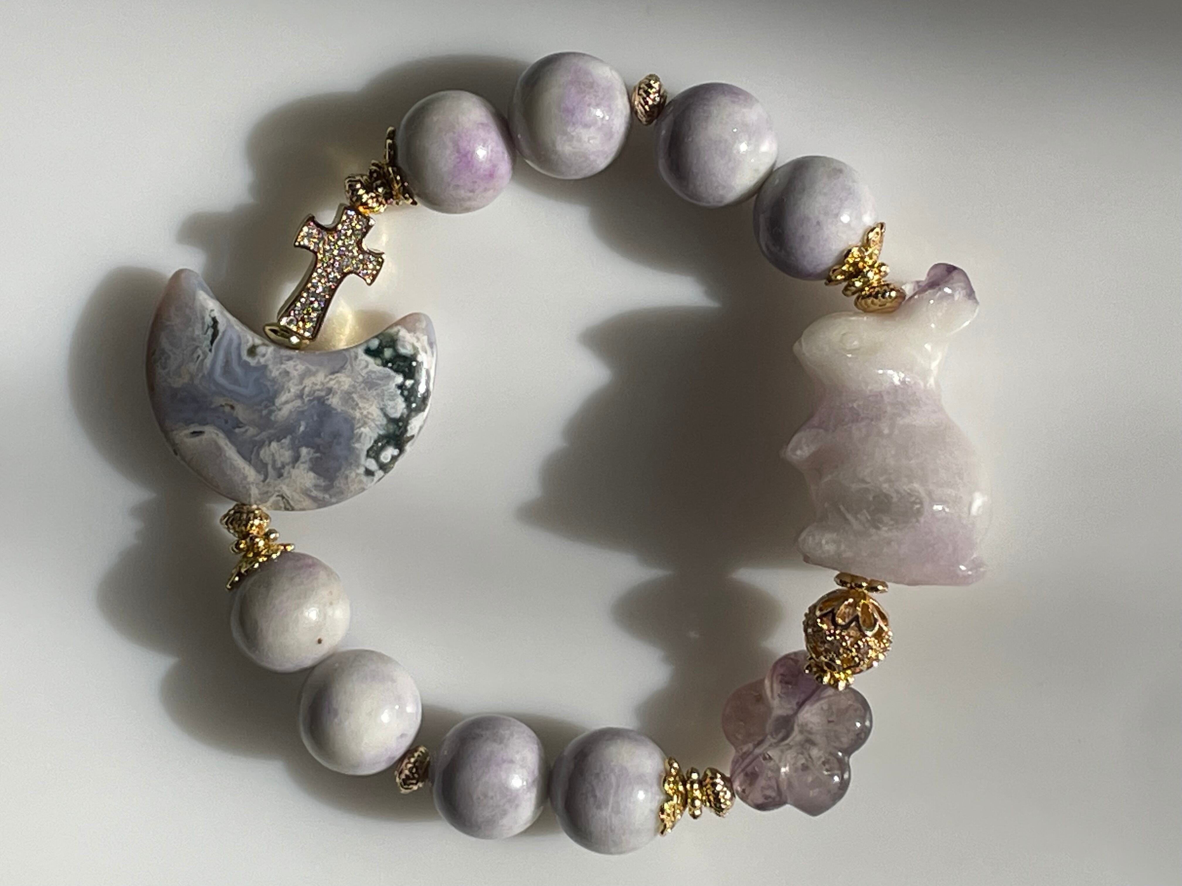 ハックマナイト アメジストうさぎ アメトリン花 オーモスアゲート月 デザインブレスレット