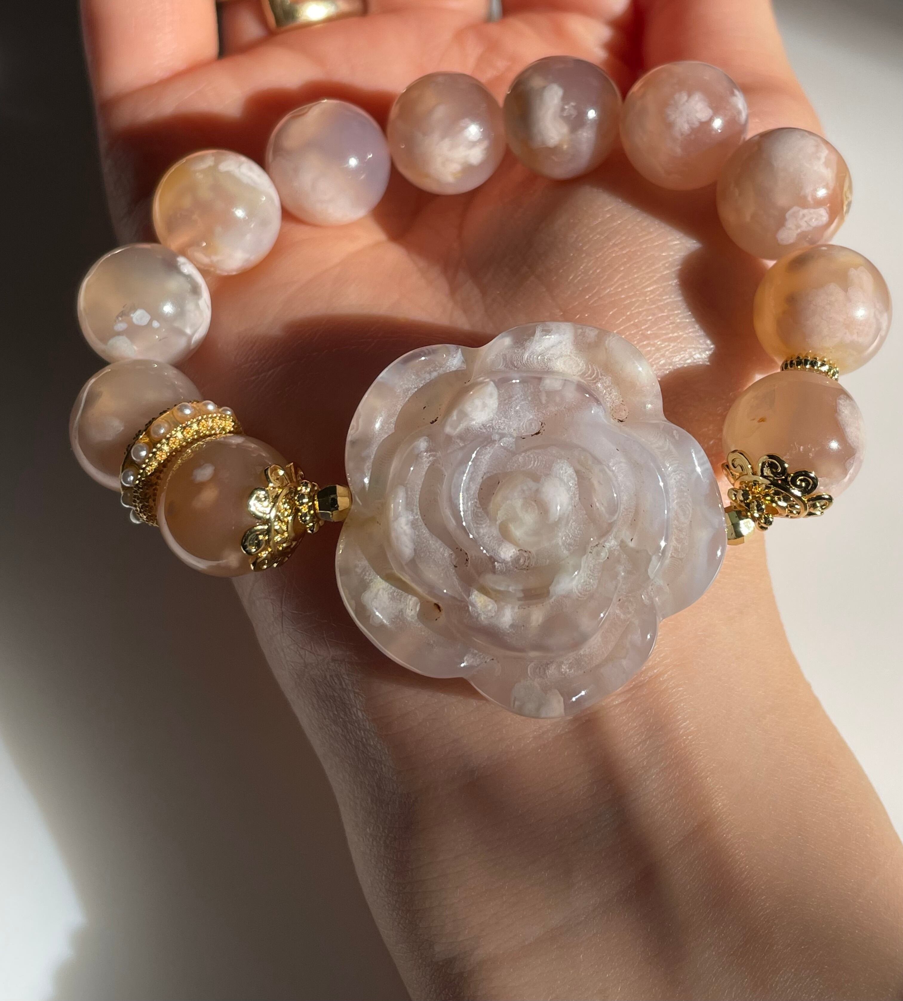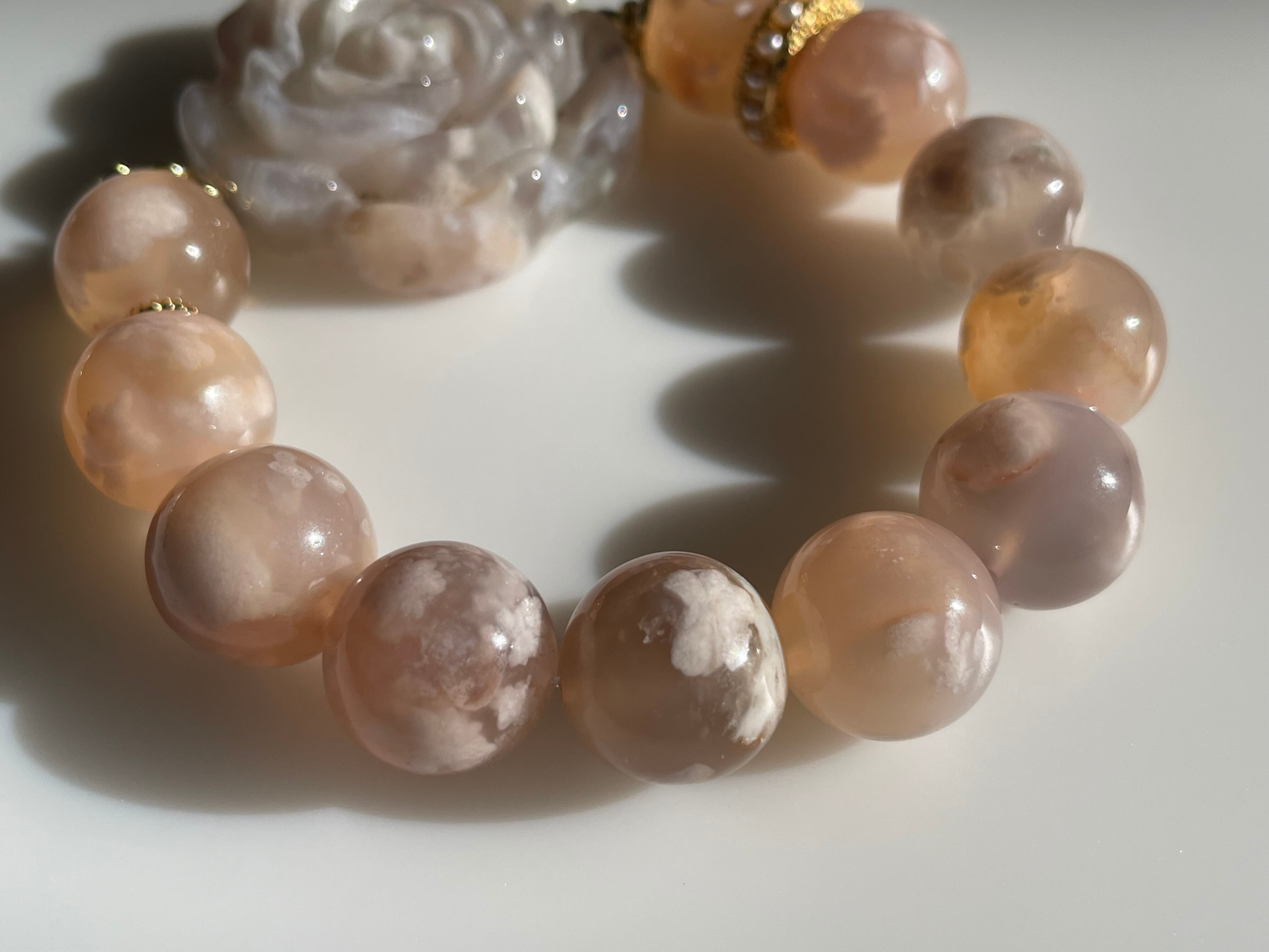 大輪の桜瑪瑙の薔薇と桜瑪瑙のデザインブレスレットです(*^^*)