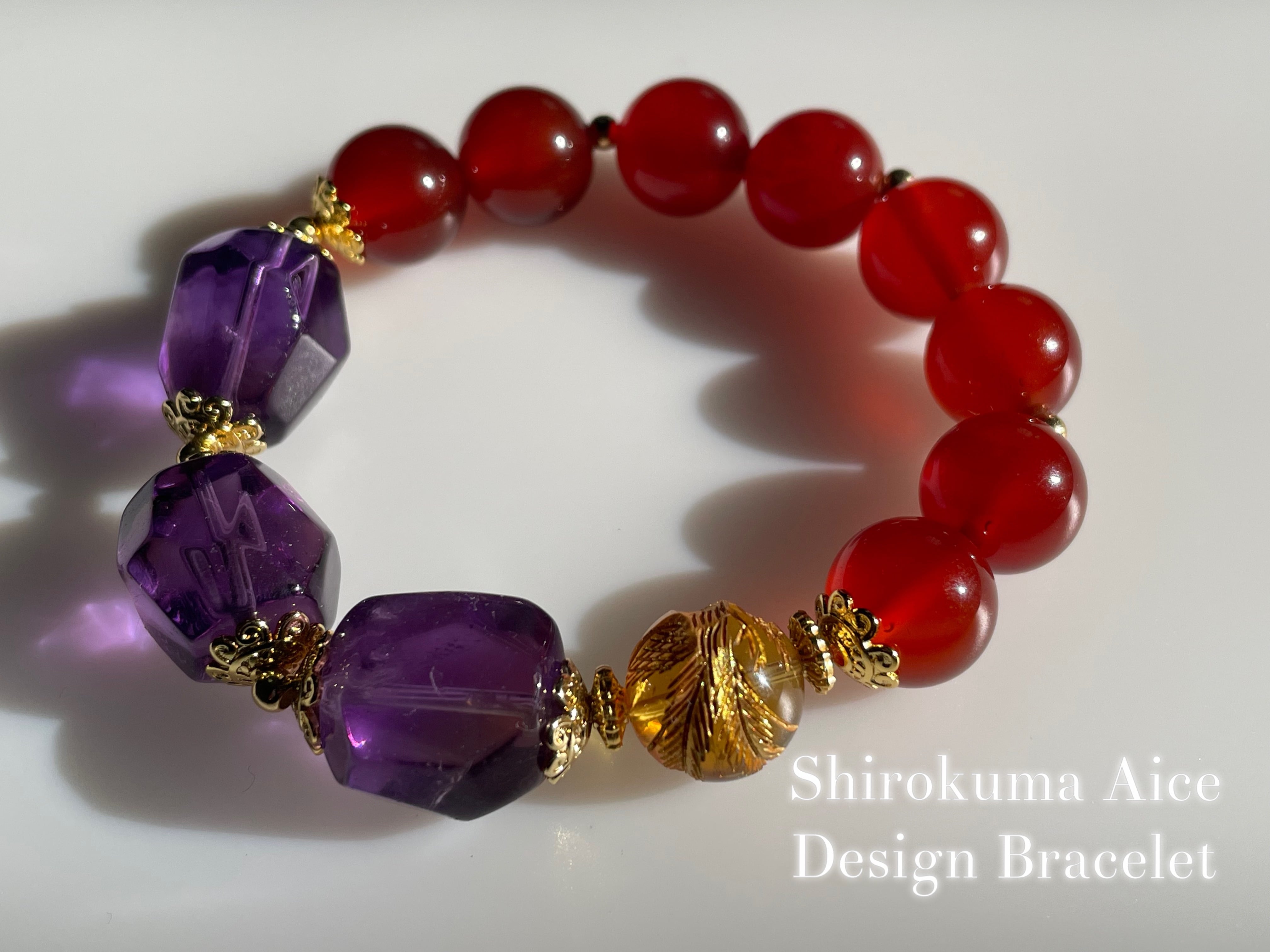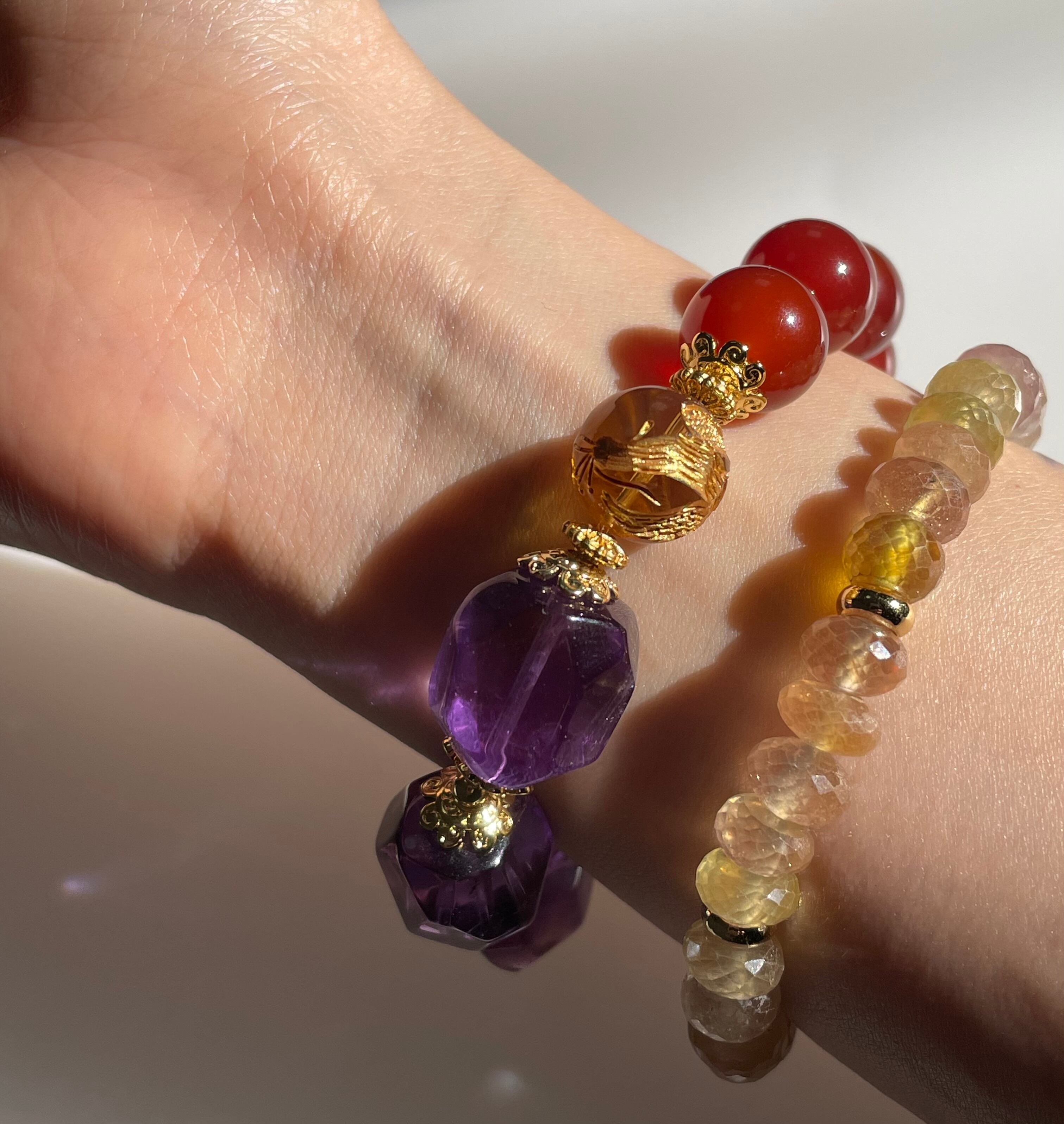 アメジスト カーネリアン 24K鳳凰彫りアンバーデザインブレスレット