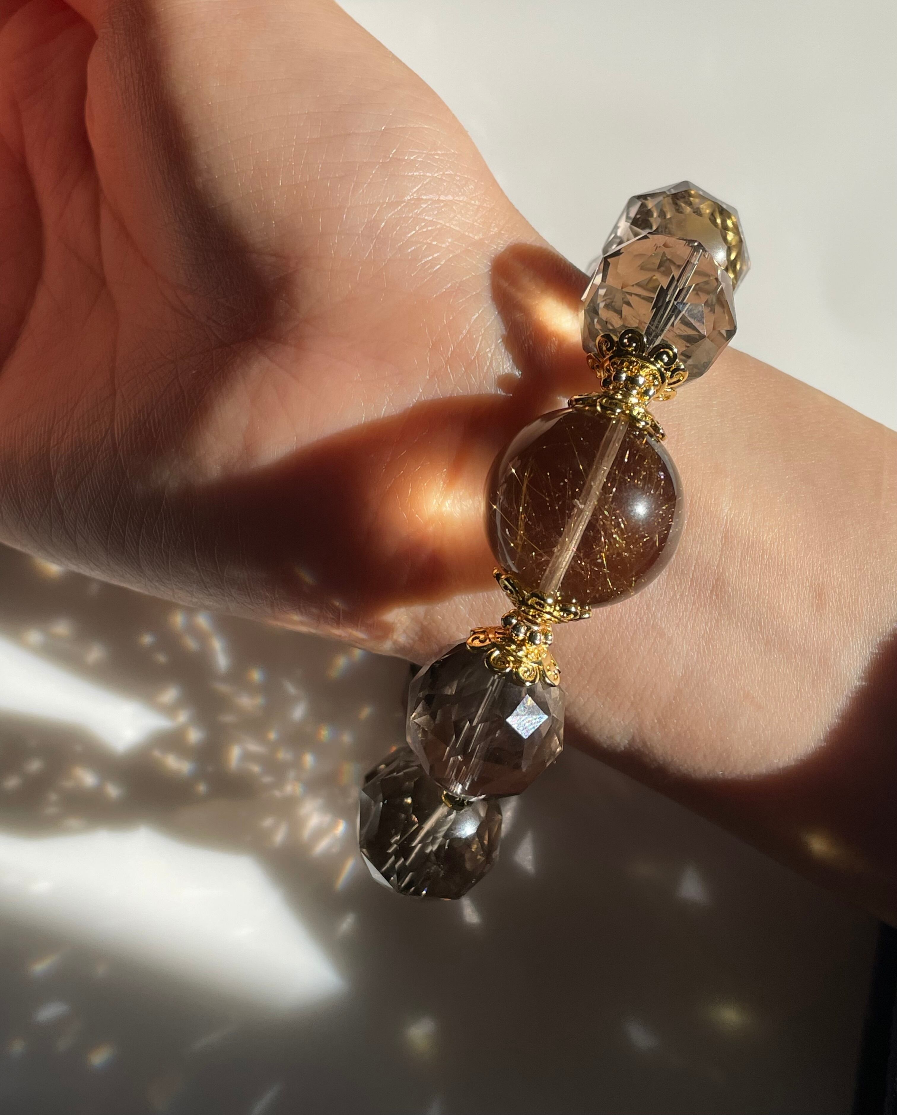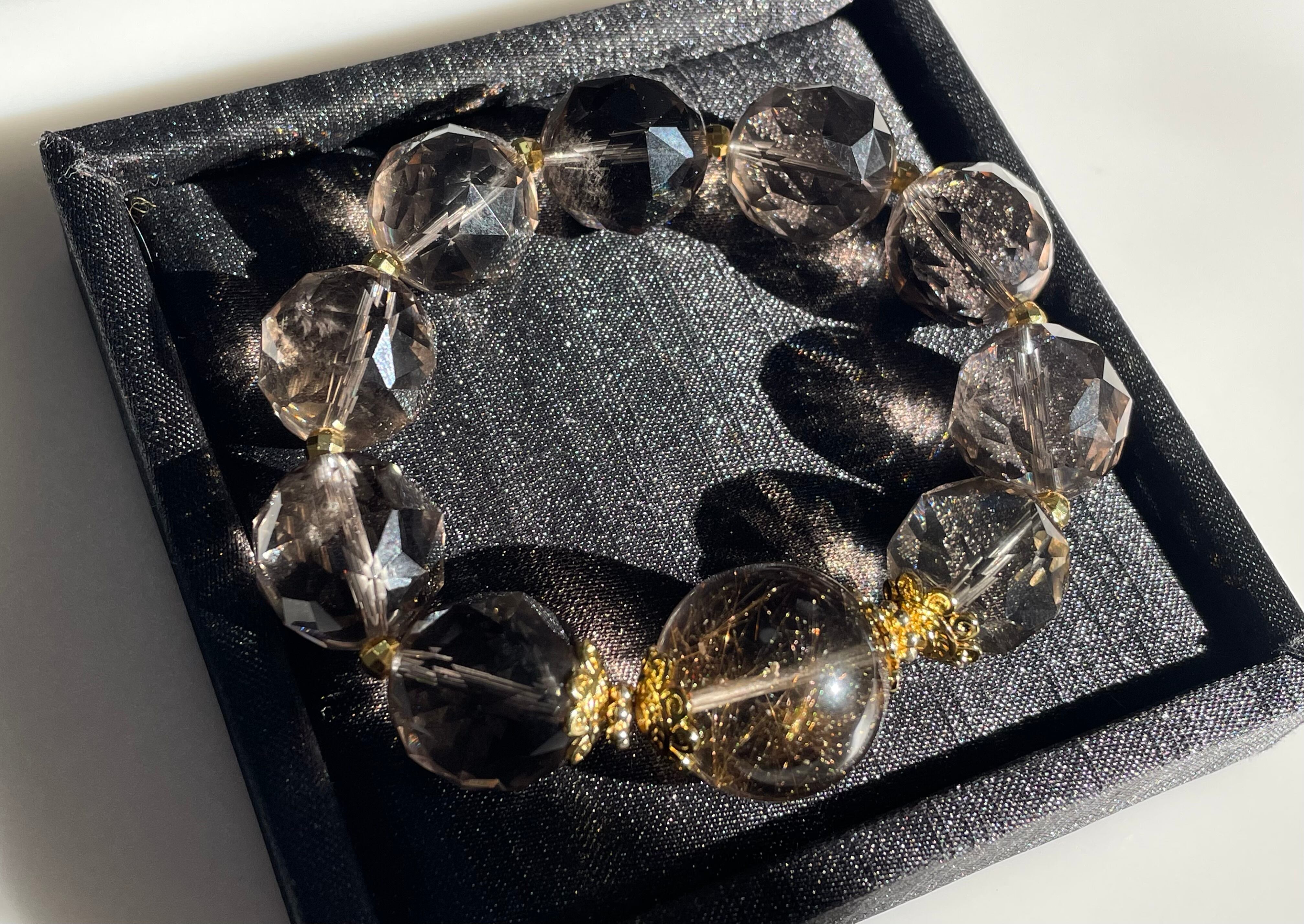 大玉スモーキールチル 高品質スターカットスモーキークォーツデザインブレスレット