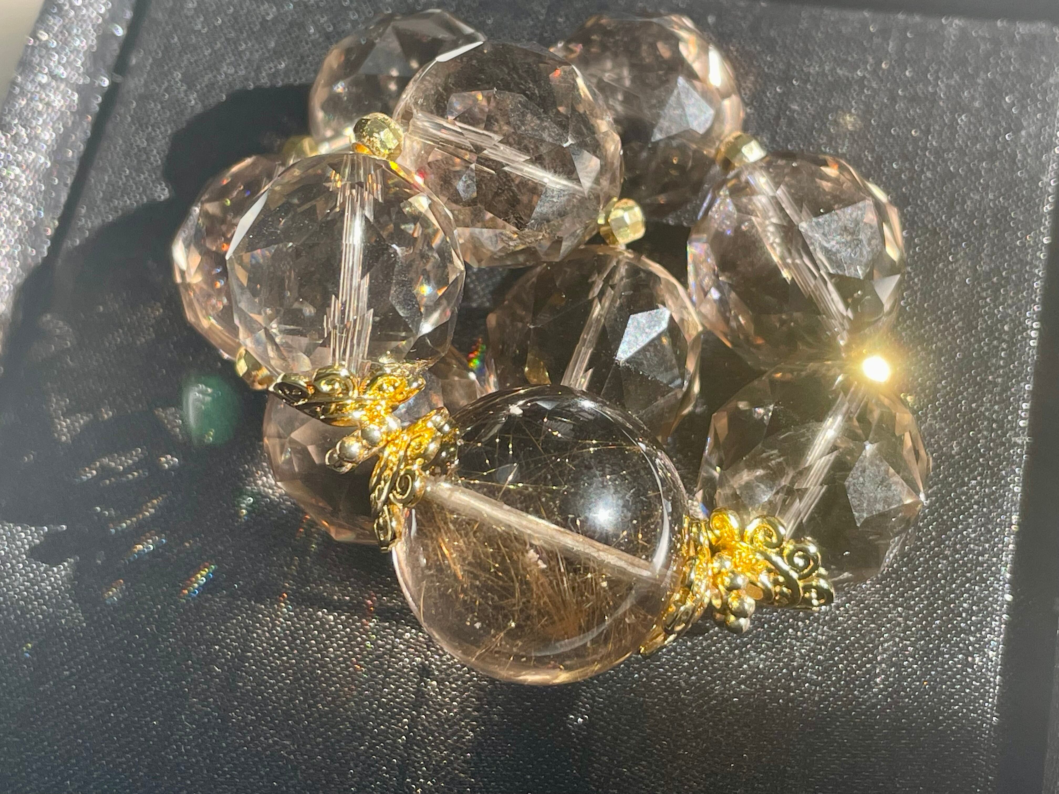 高品質のスターカット水晶はどの角度からもキラキラと輝きます 約18mmと大玉ですが、カット部分の最大mmですが、着用してみると違和感なく手首が華奢に見えてとても綺麗です^ ^