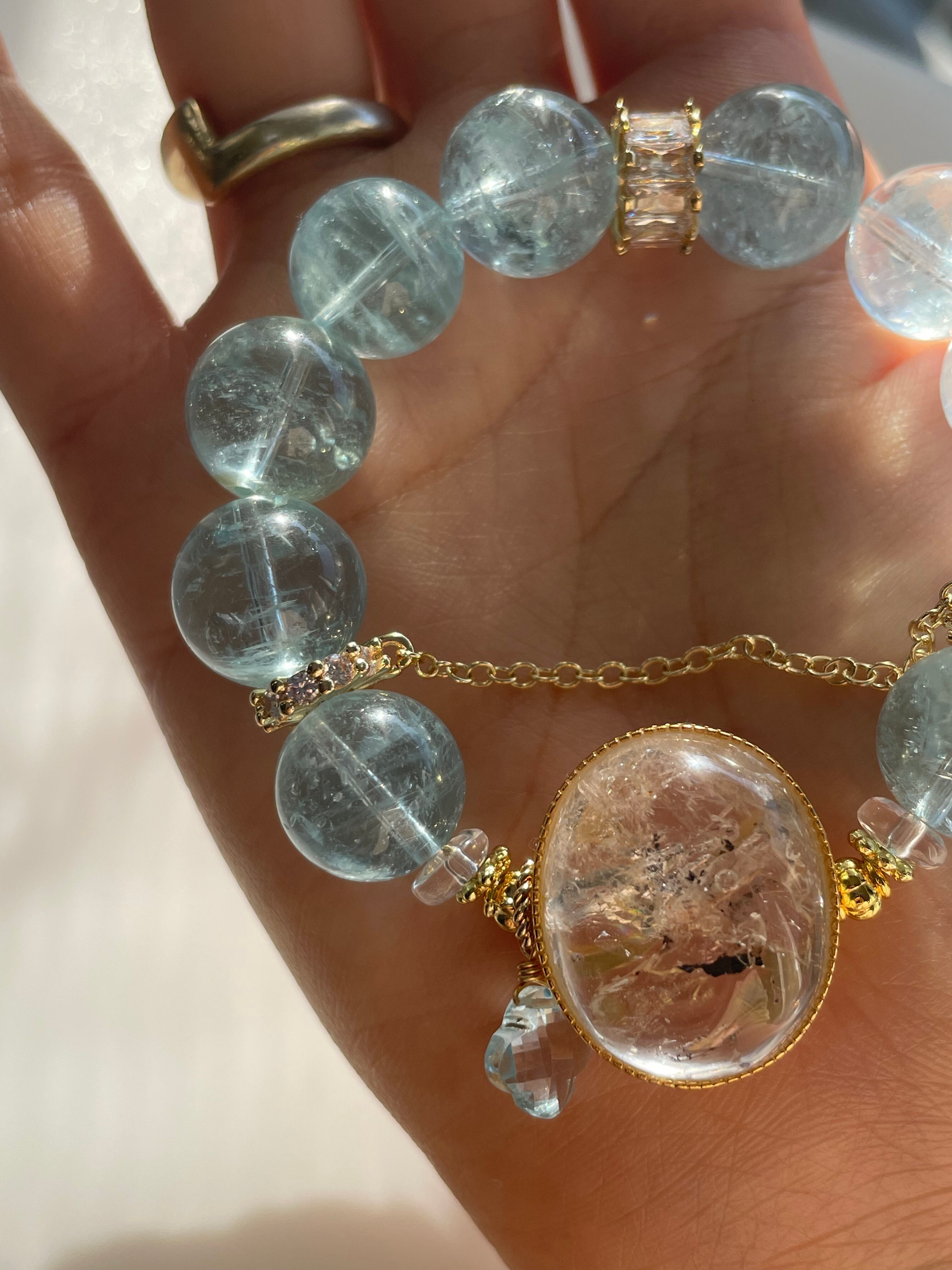 水入り水晶 アクアマリン スイスブルートパーズ デザインブレスレット