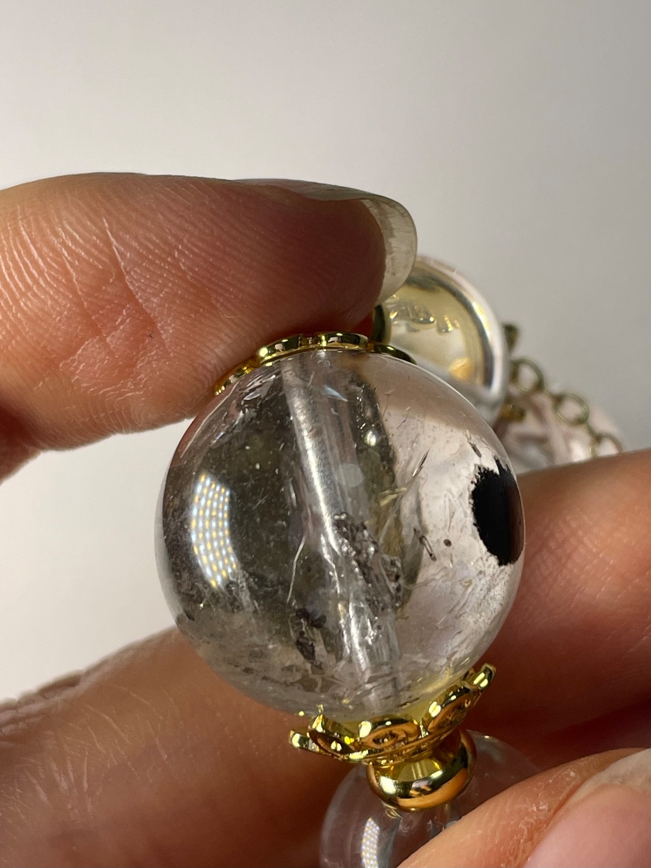 希少な大粒の水入り水晶に穴を開けてもらいビーズにしました(*^^*)