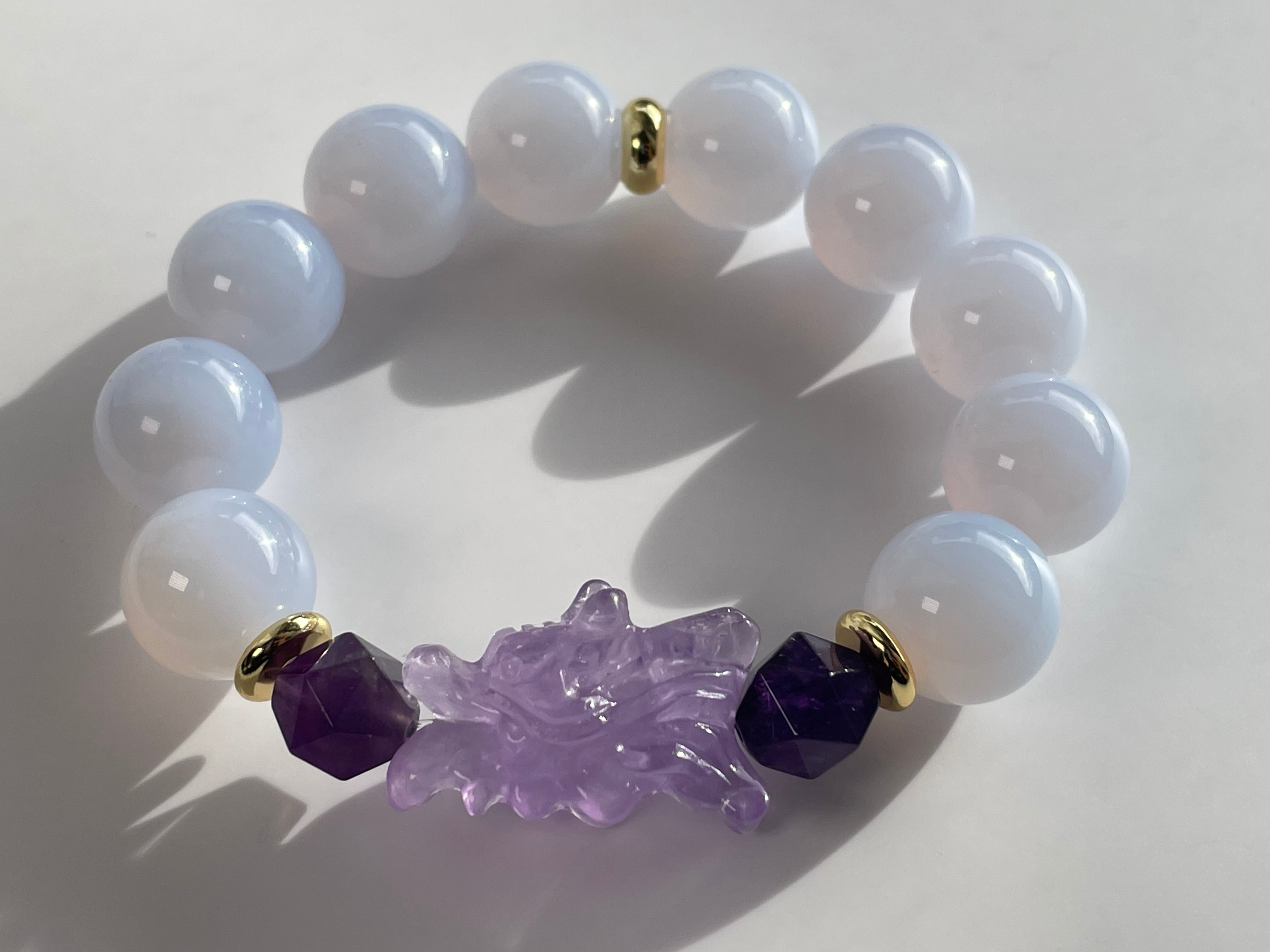 大玉 ブルーカルセドニー アメジスト ドラゴンヘッド デザインブレスレット