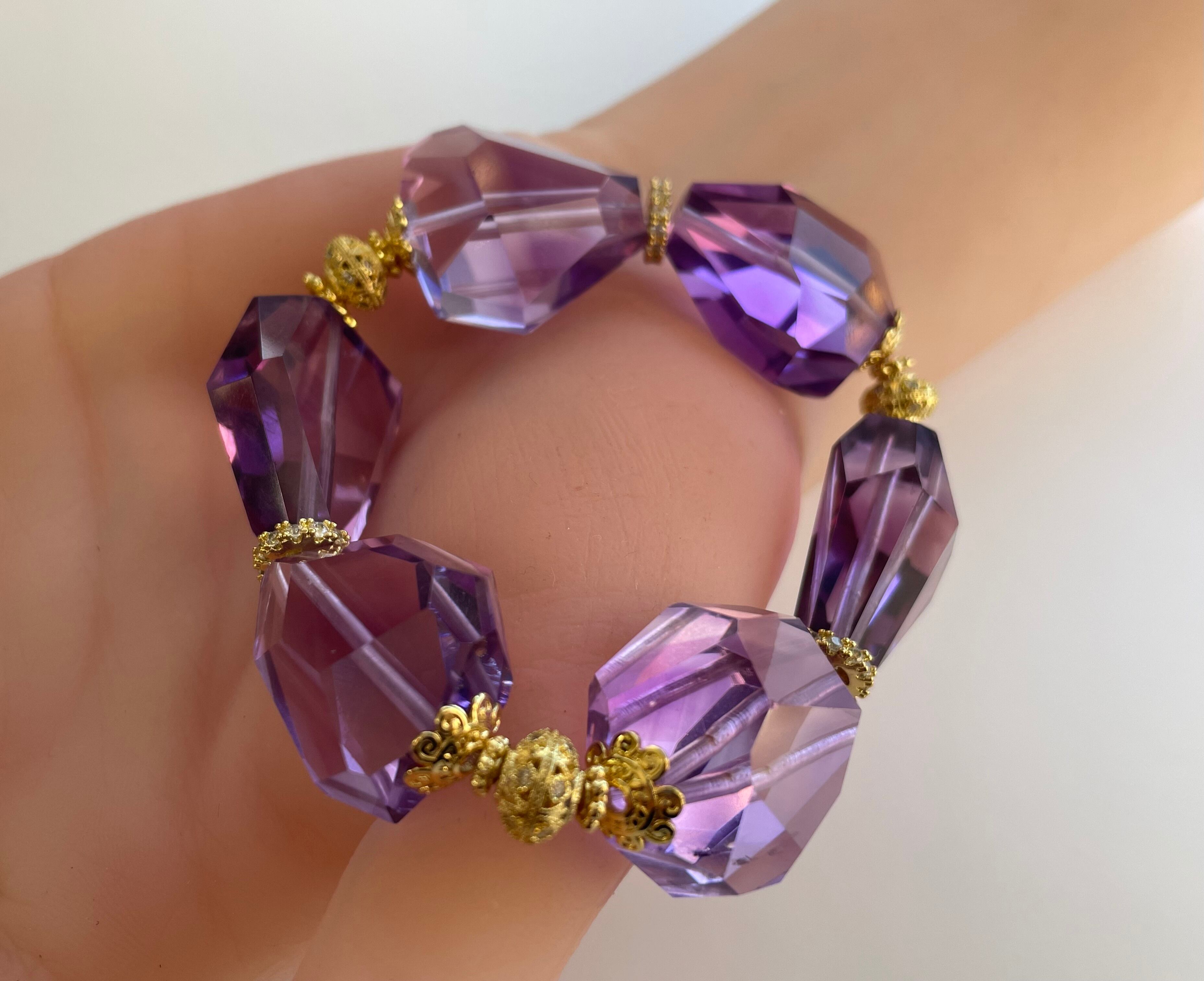 カット 品質 文句なしのアメジストを贅沢にブレスレットにしました(*^^*)