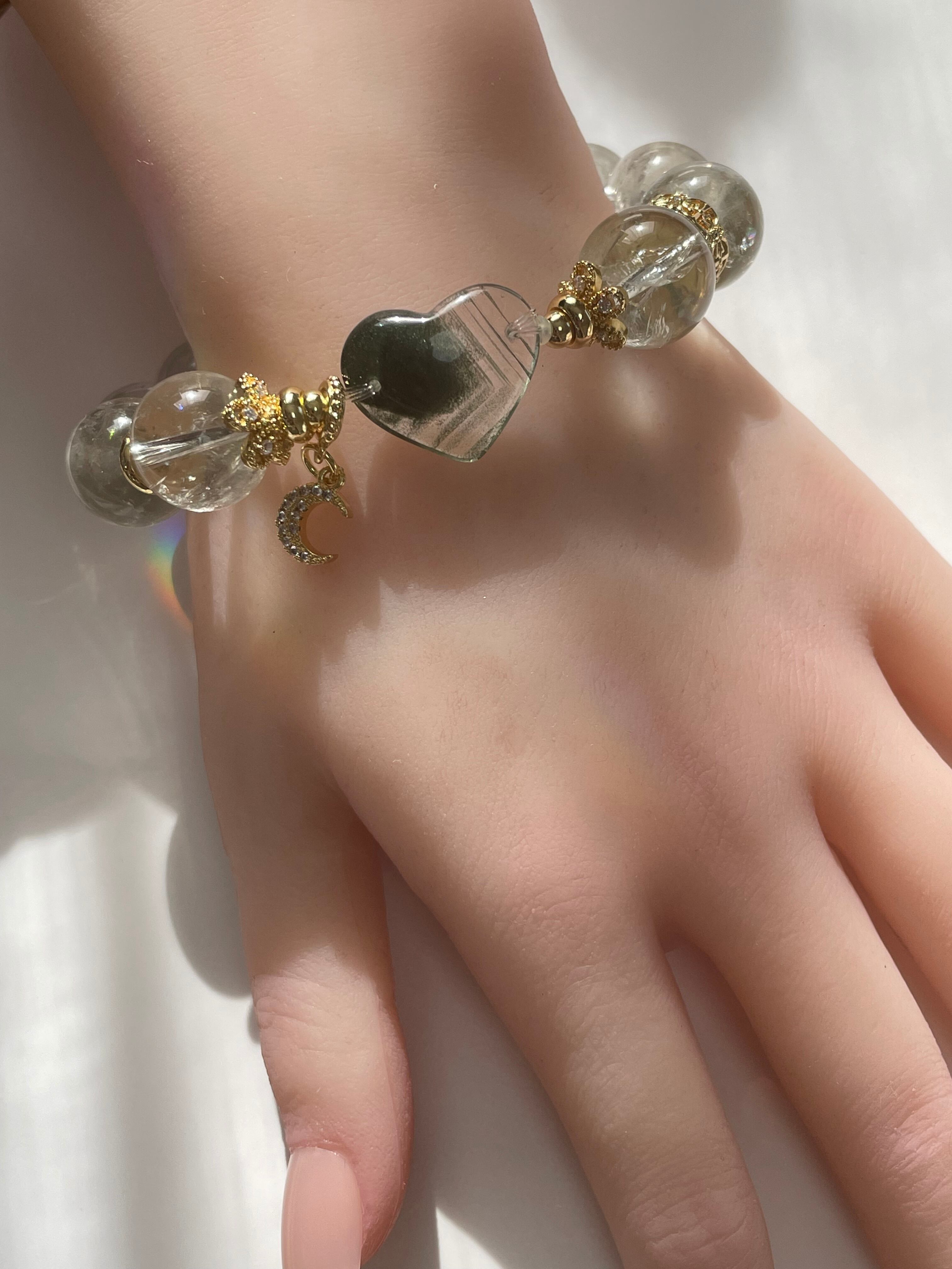 ファントム グリーンガーデンクォーツ ハート プラジオライト グリーンアメジスト デザインブレスレット