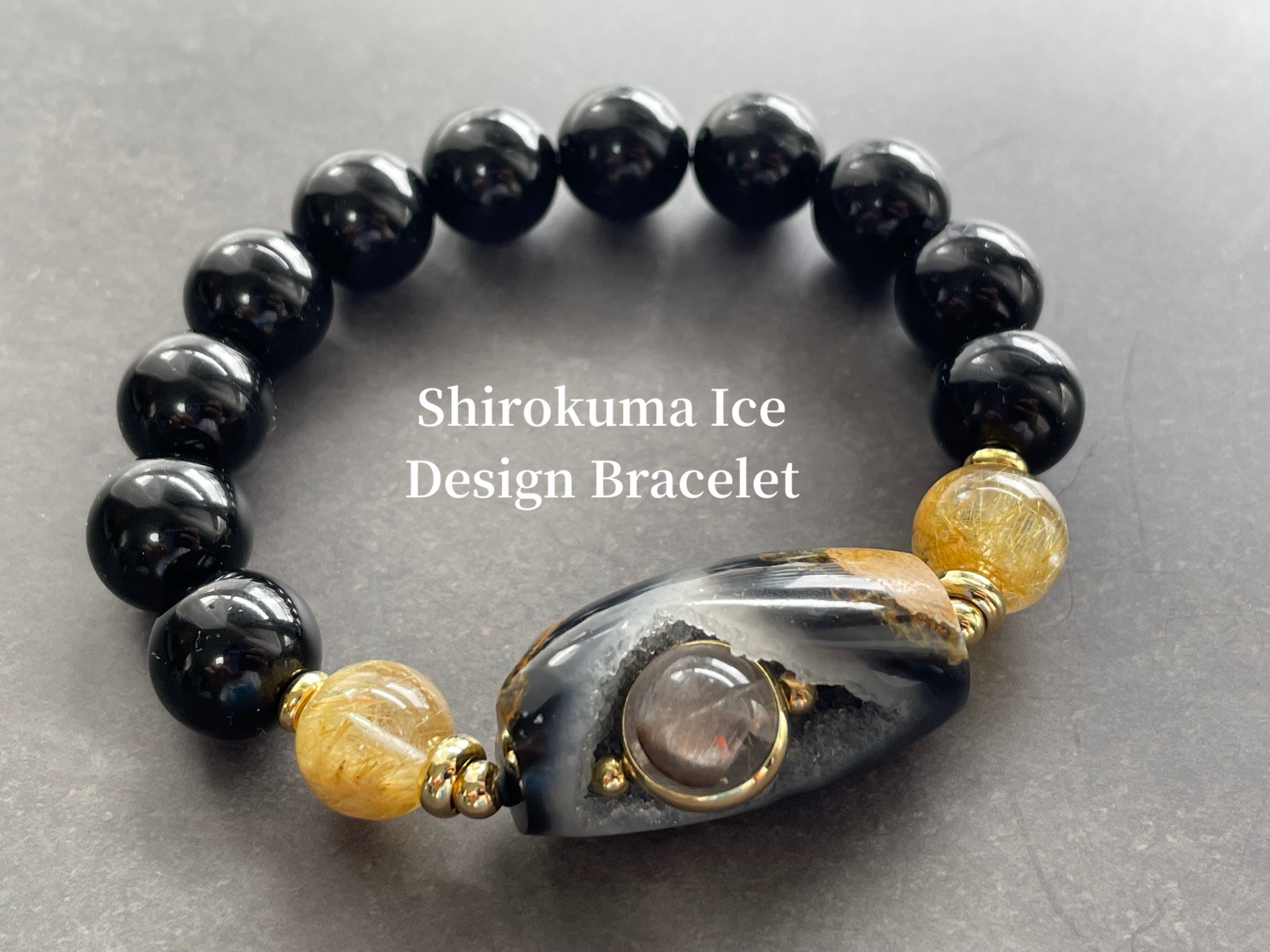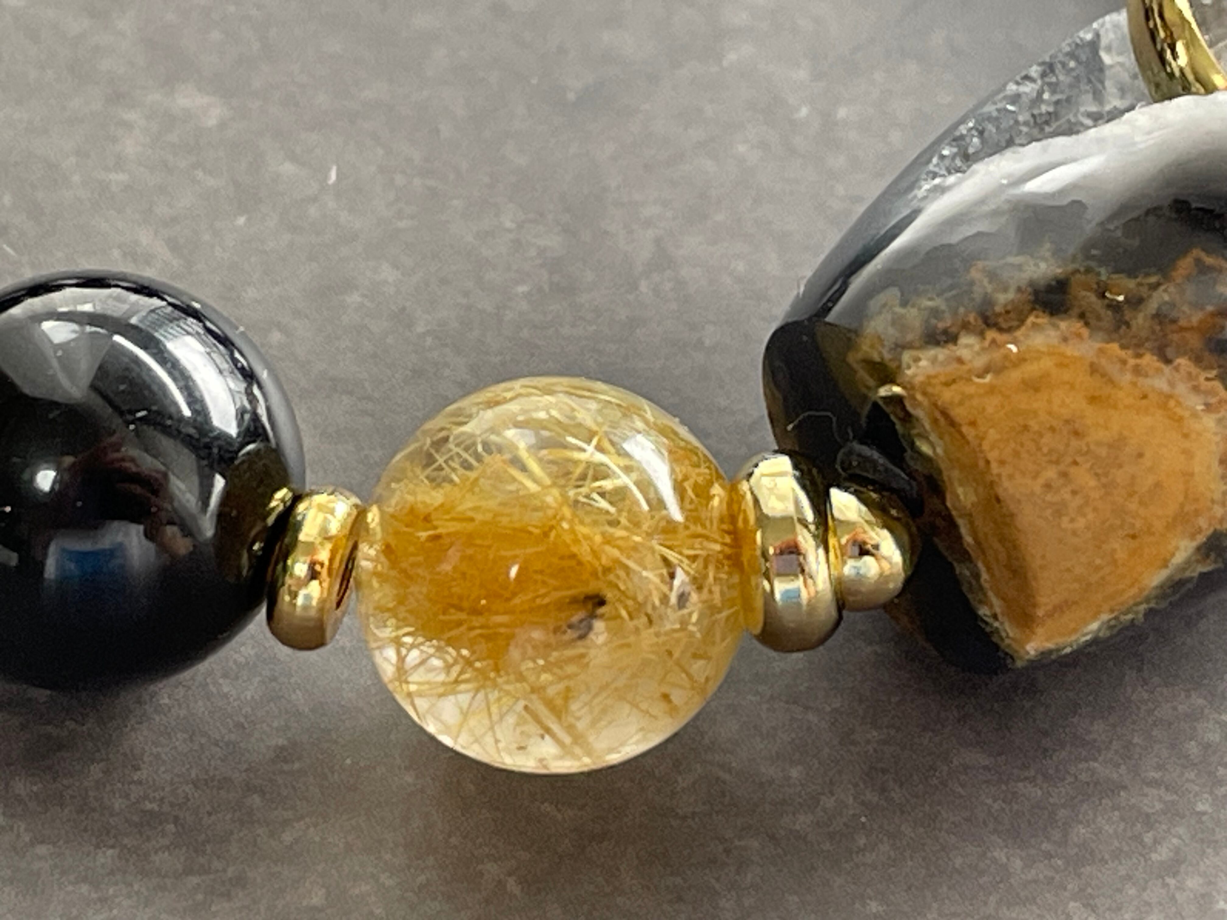 瑪瑙天珠 プラチナルチル ゴールドルチル モリオン 黒水晶 デザインブレスレット