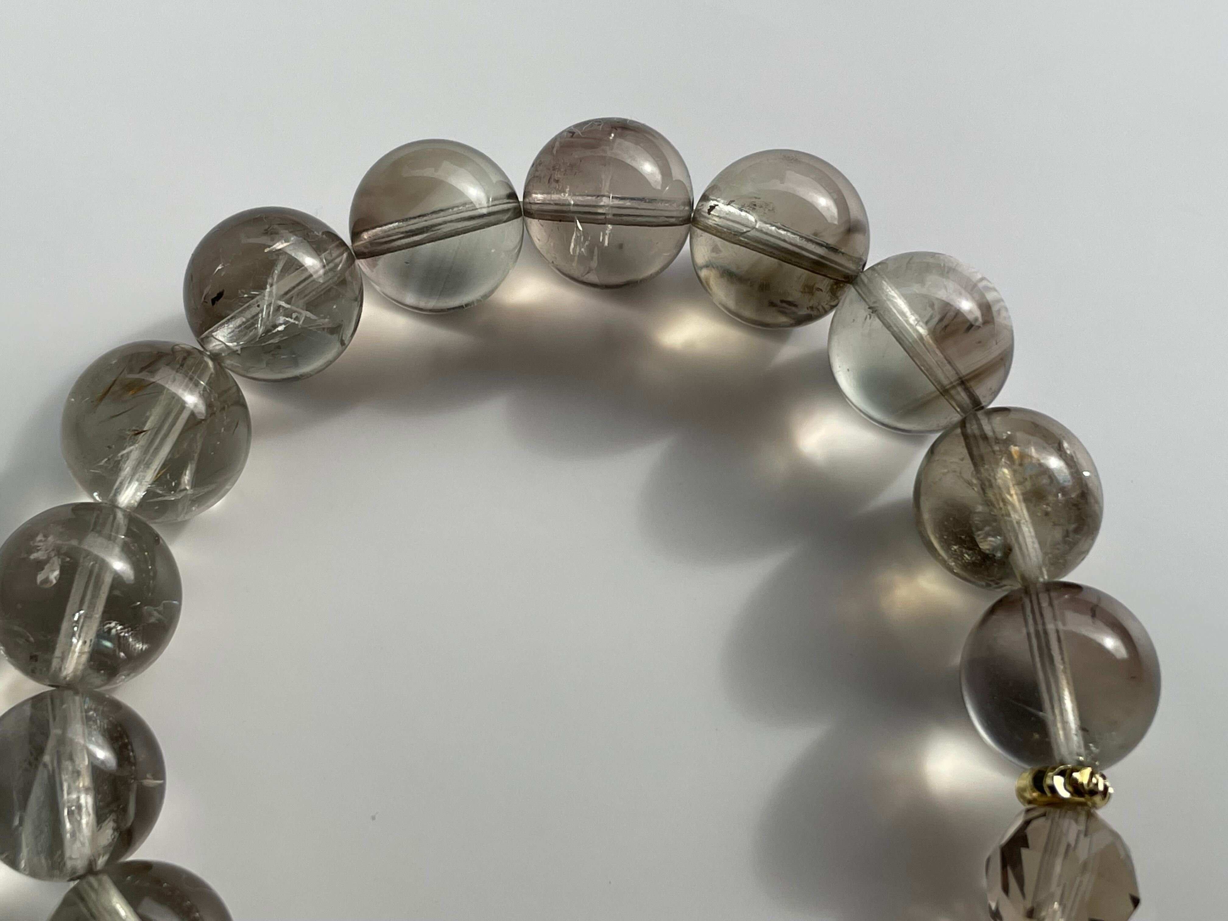 古代の水入り水晶 ファントムスモーキーグリーンアメジスト デザインブレスレット