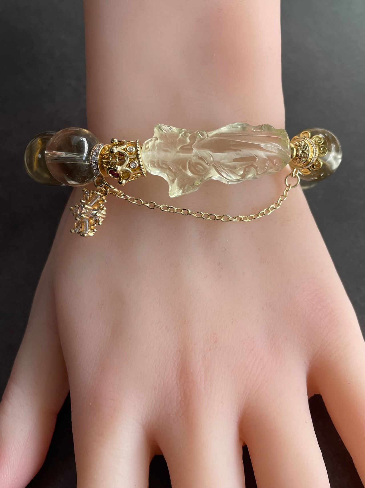ブレスレット部分の無垢な天然非加熱のシトリンの艶や色合い等は本当に美しいです。
