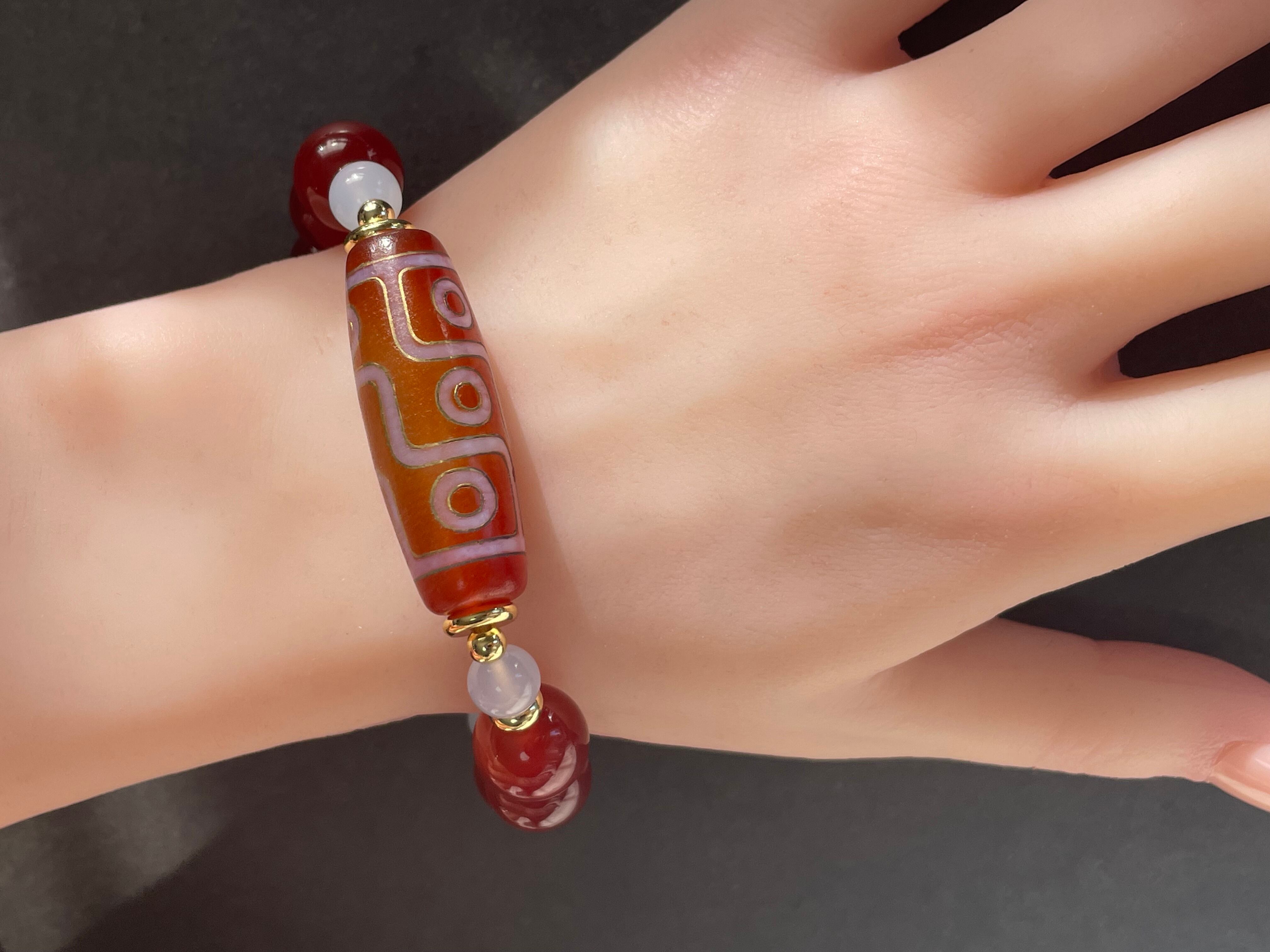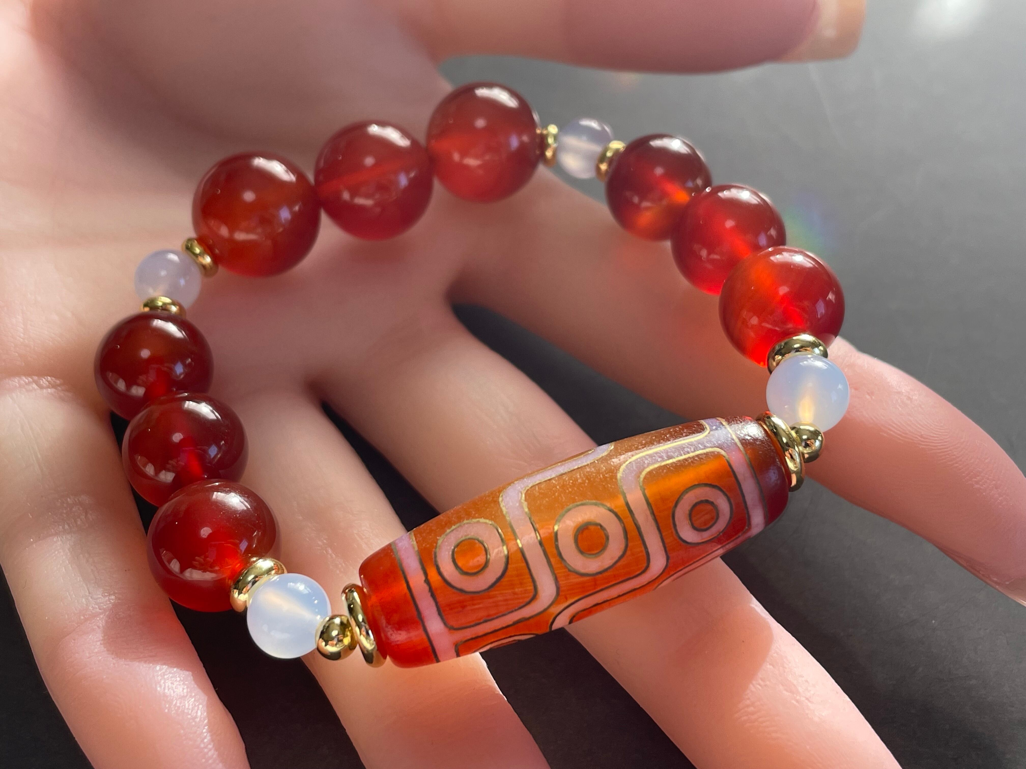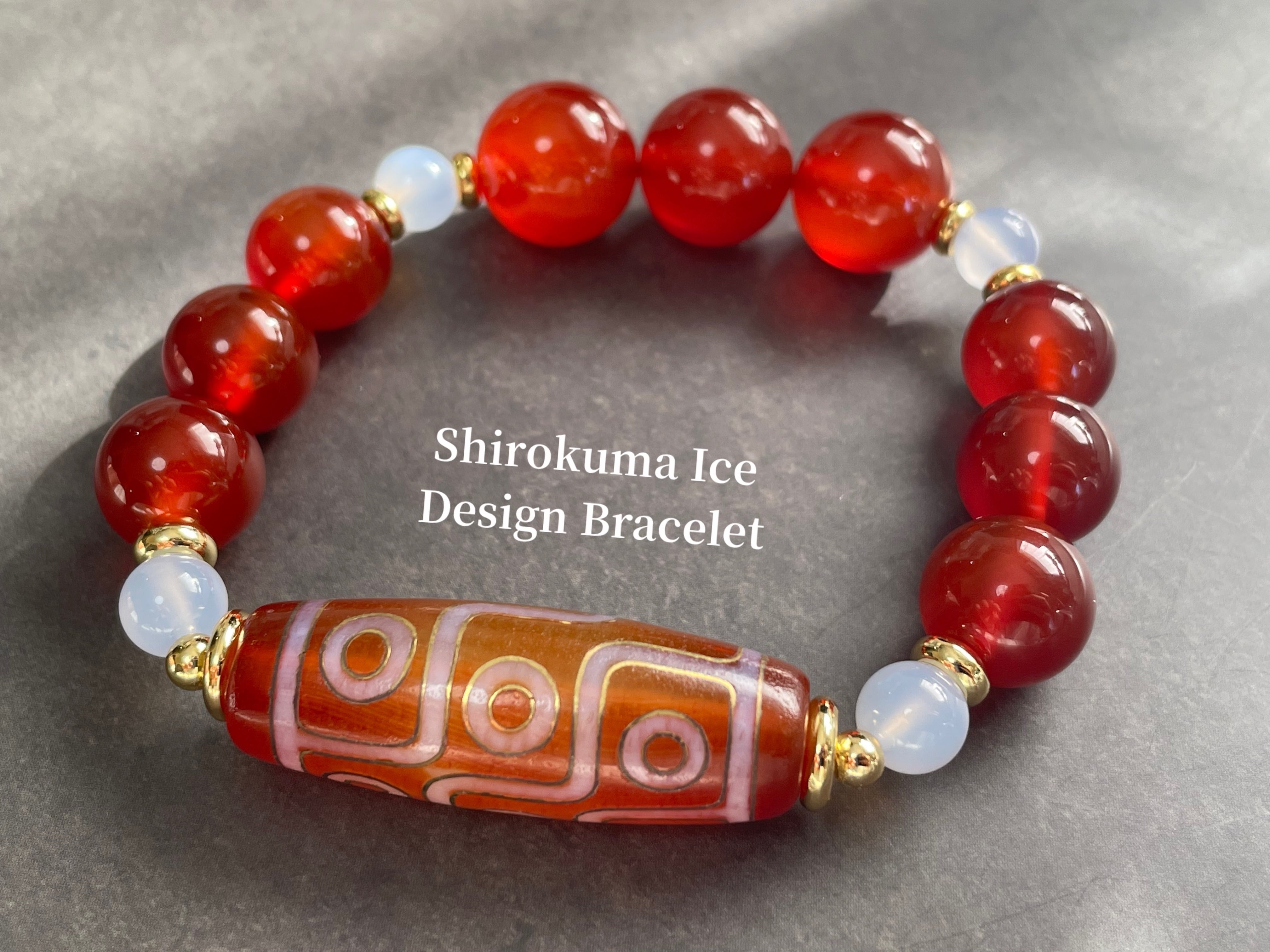 金線 九眼天珠 カーネリアン ブルーカルセドニー デザインブレスレット