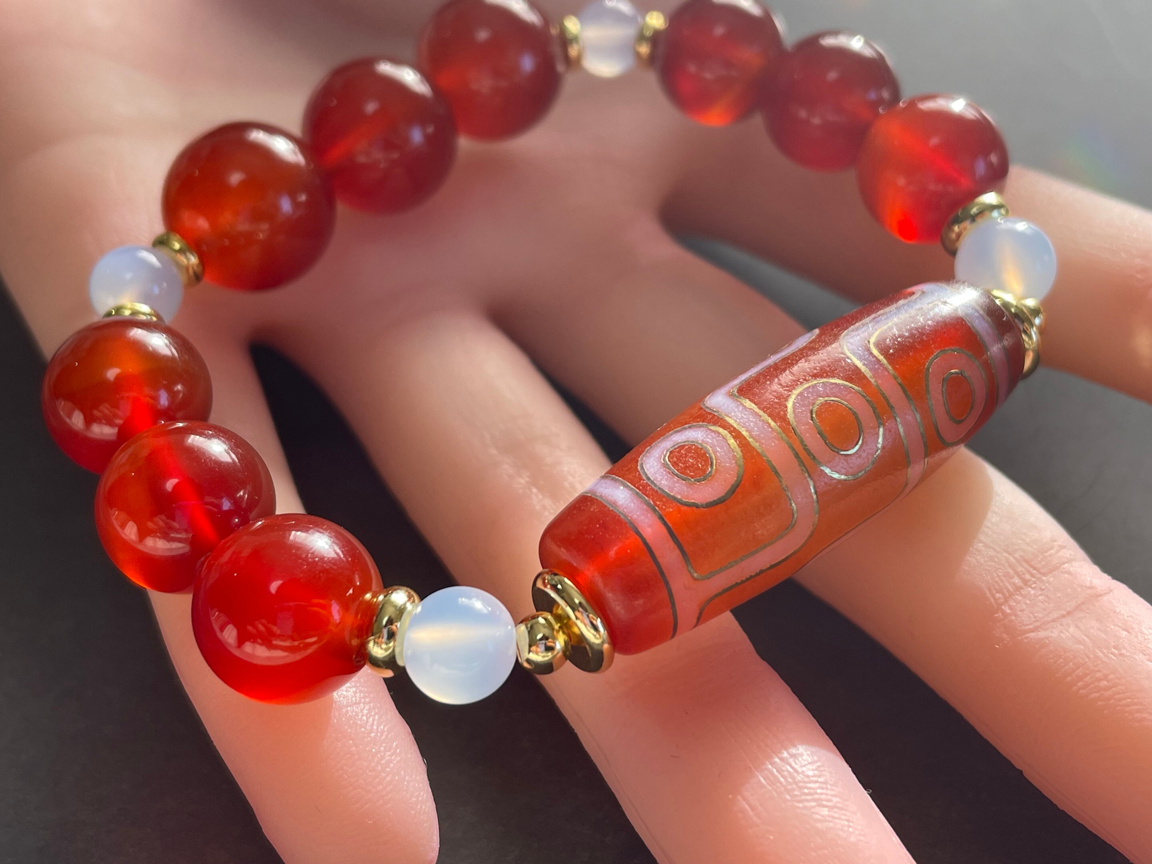 綺麗な赤オレンジの金線九眼天珠にうる艶なカーネリアンと透明感の綺麗な高品質なブルーカルセドニーと組みました