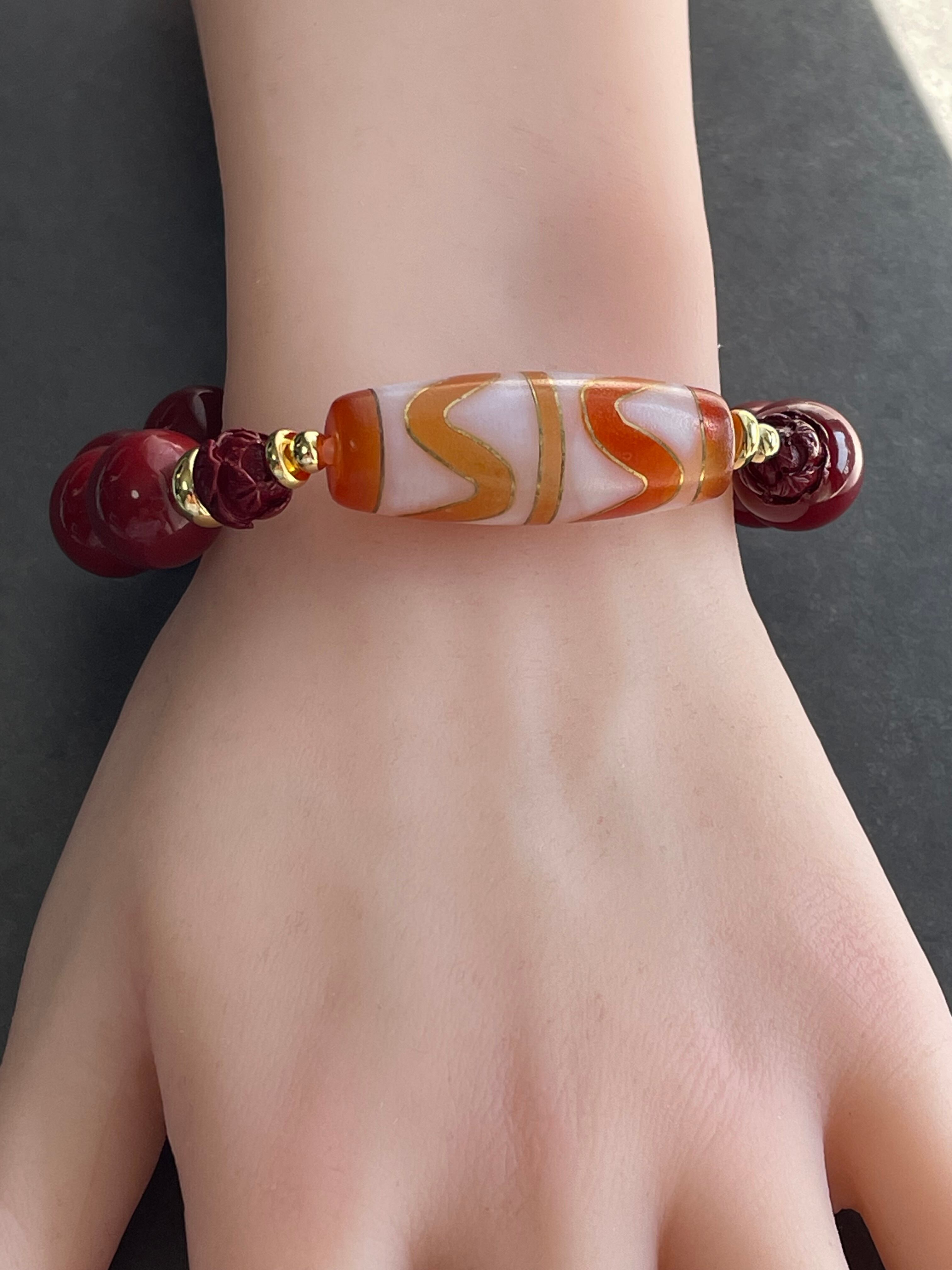 金線 双虎牙天珠 シナバー デザインブレスレット
