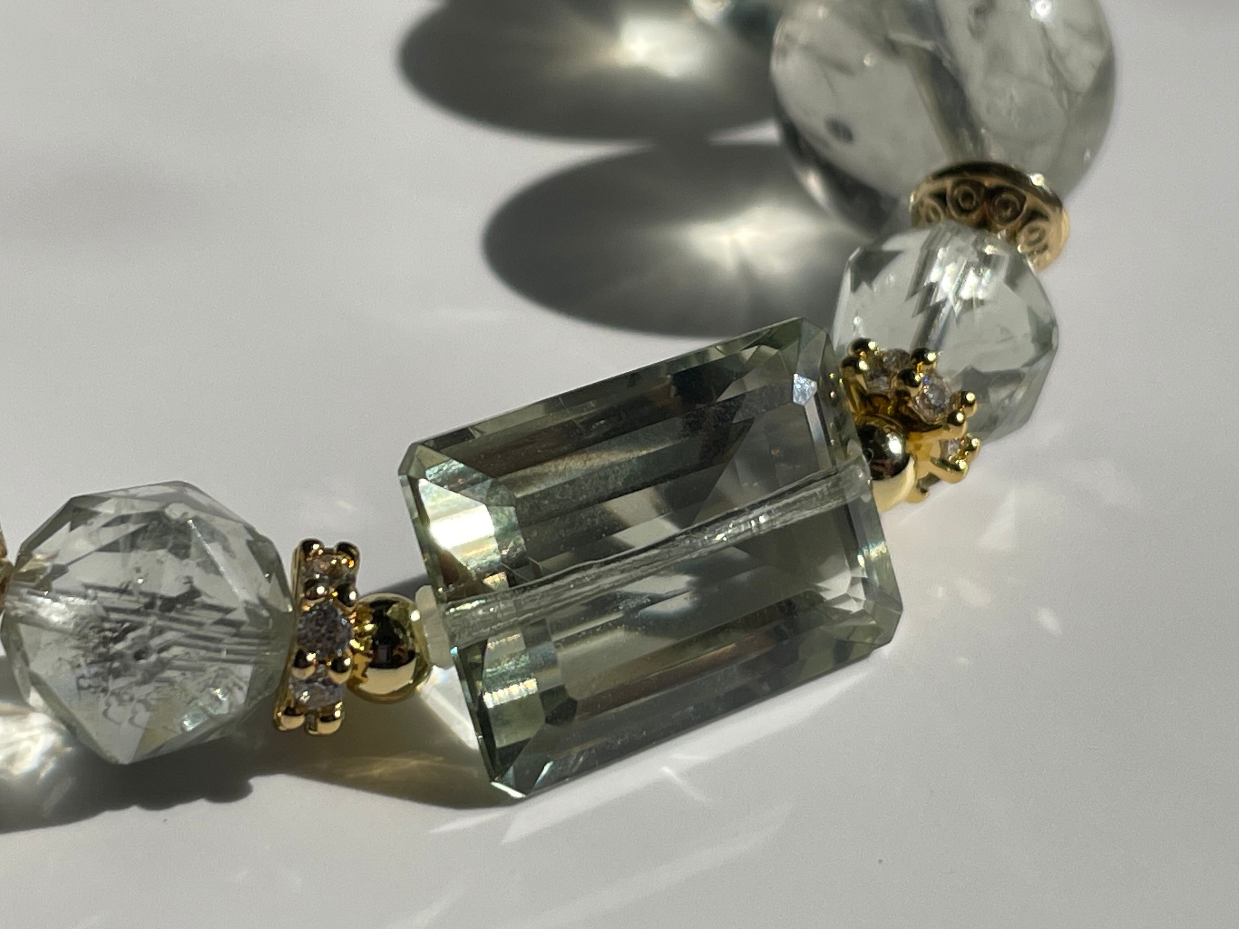 プラシオライト グリーンアメジスト 宝石ルース エメラルドカット デザインブレスレット