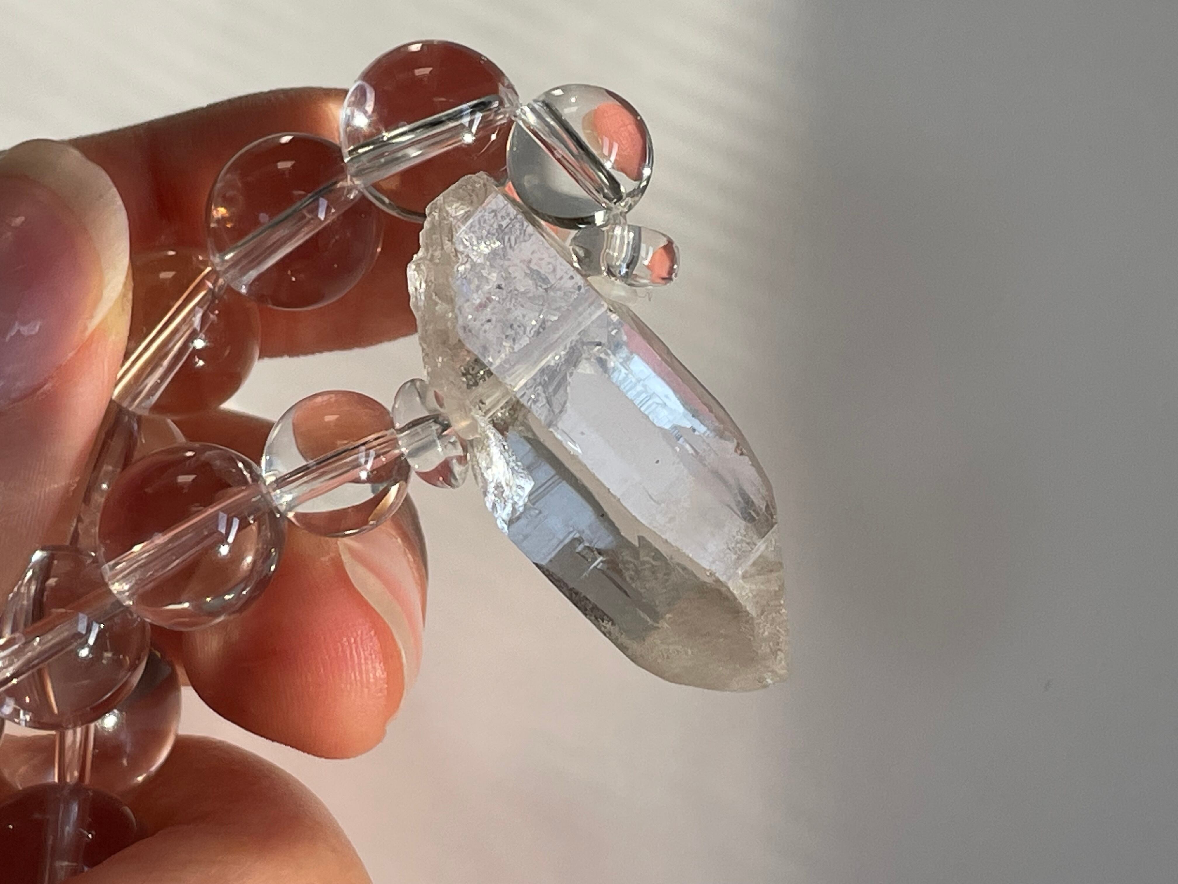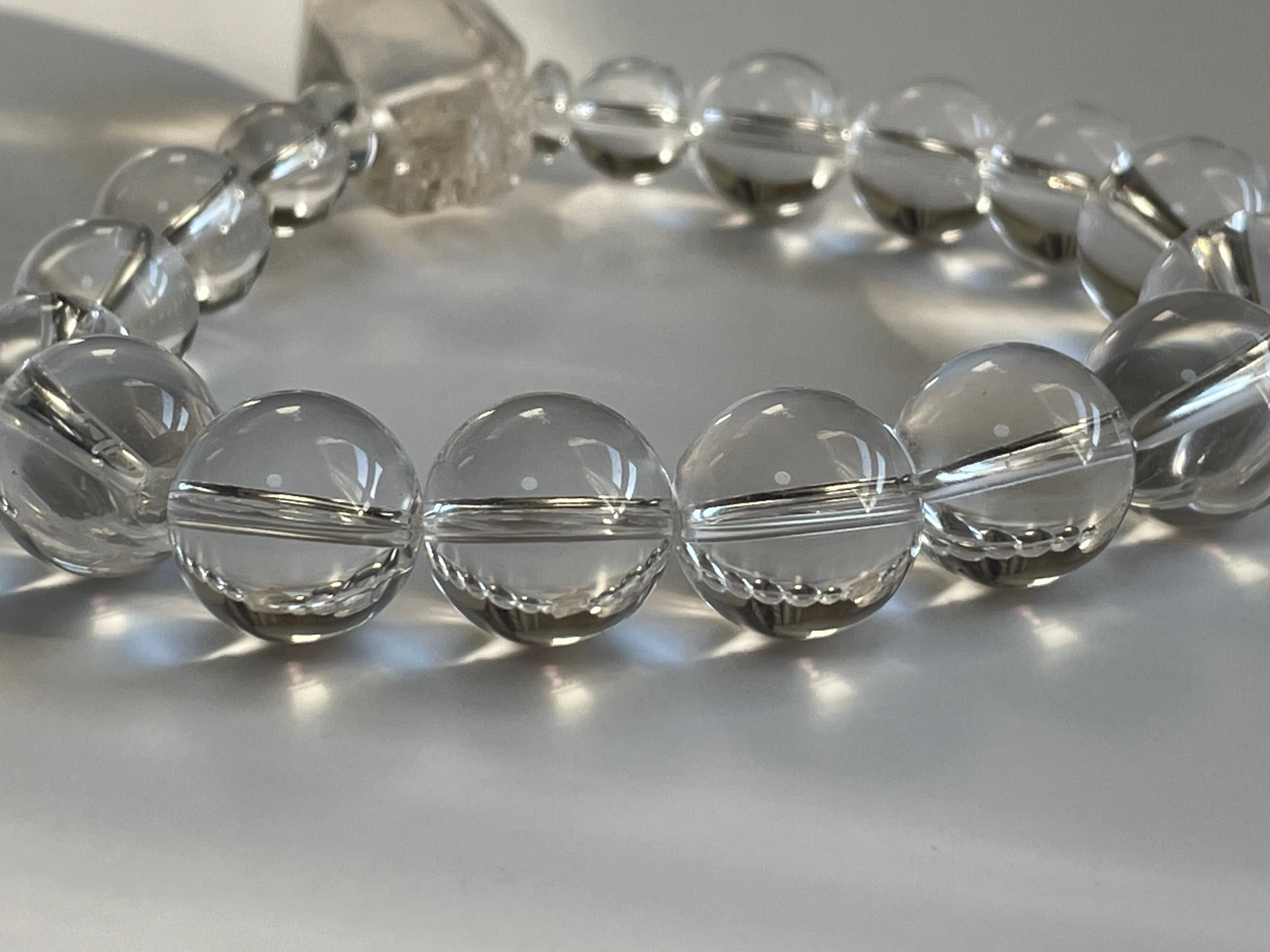 水晶珠はブラジル産地の天然無垢水晶を8mm〜12mmを使いグラデーションのように組んでいます。