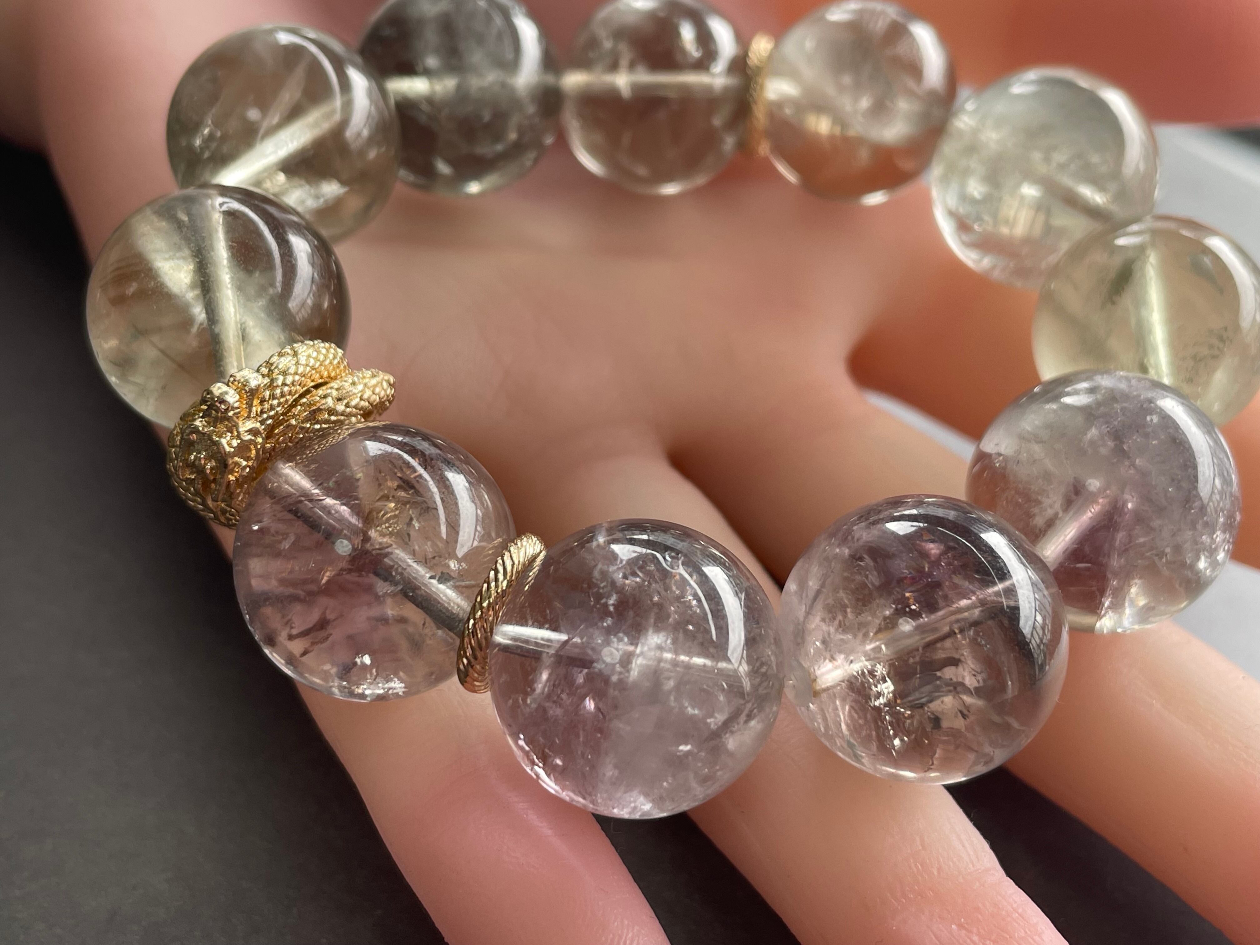 大玉グリーンアメジスト プラシオライト アメジストデザインブレスレット