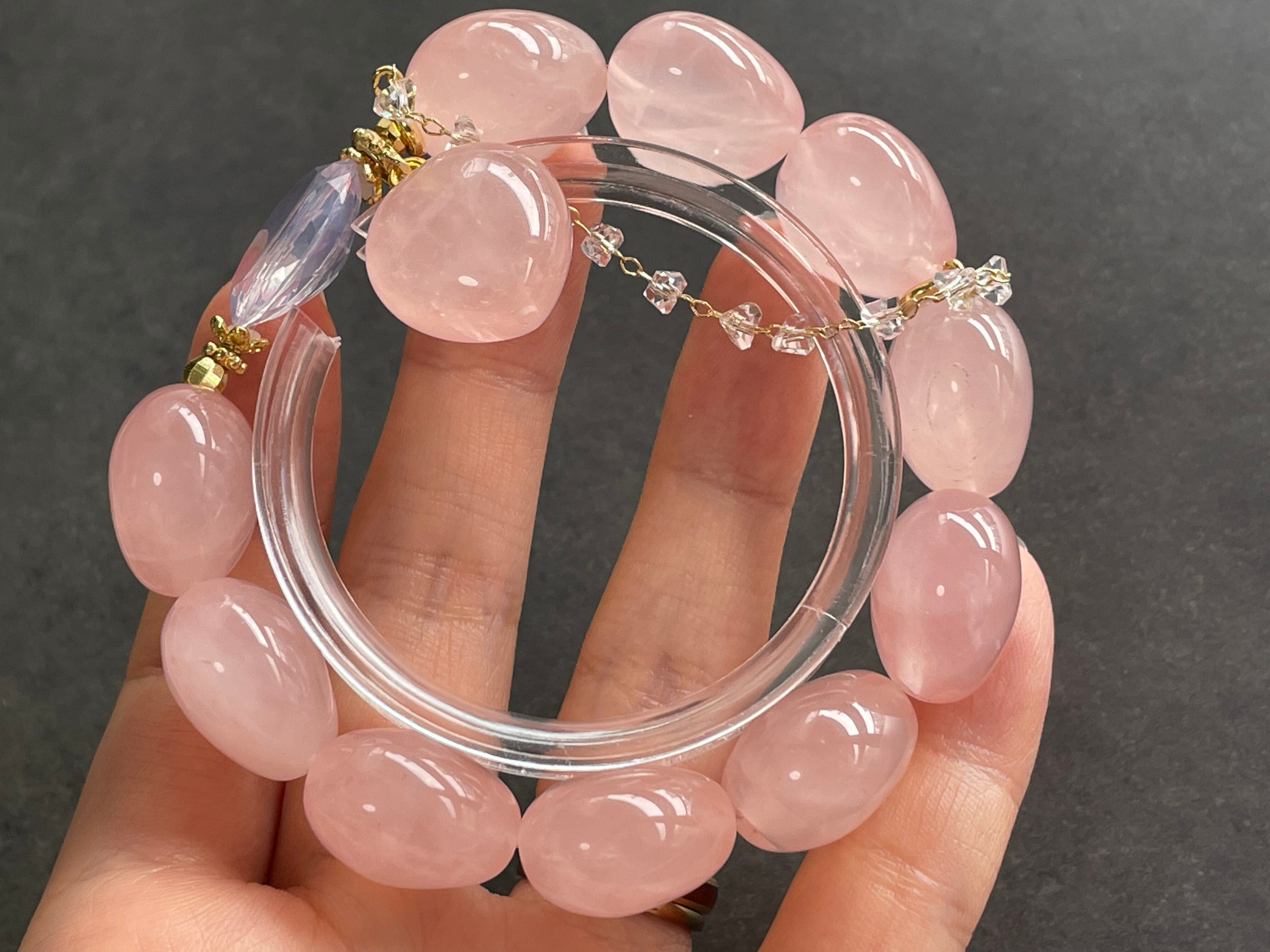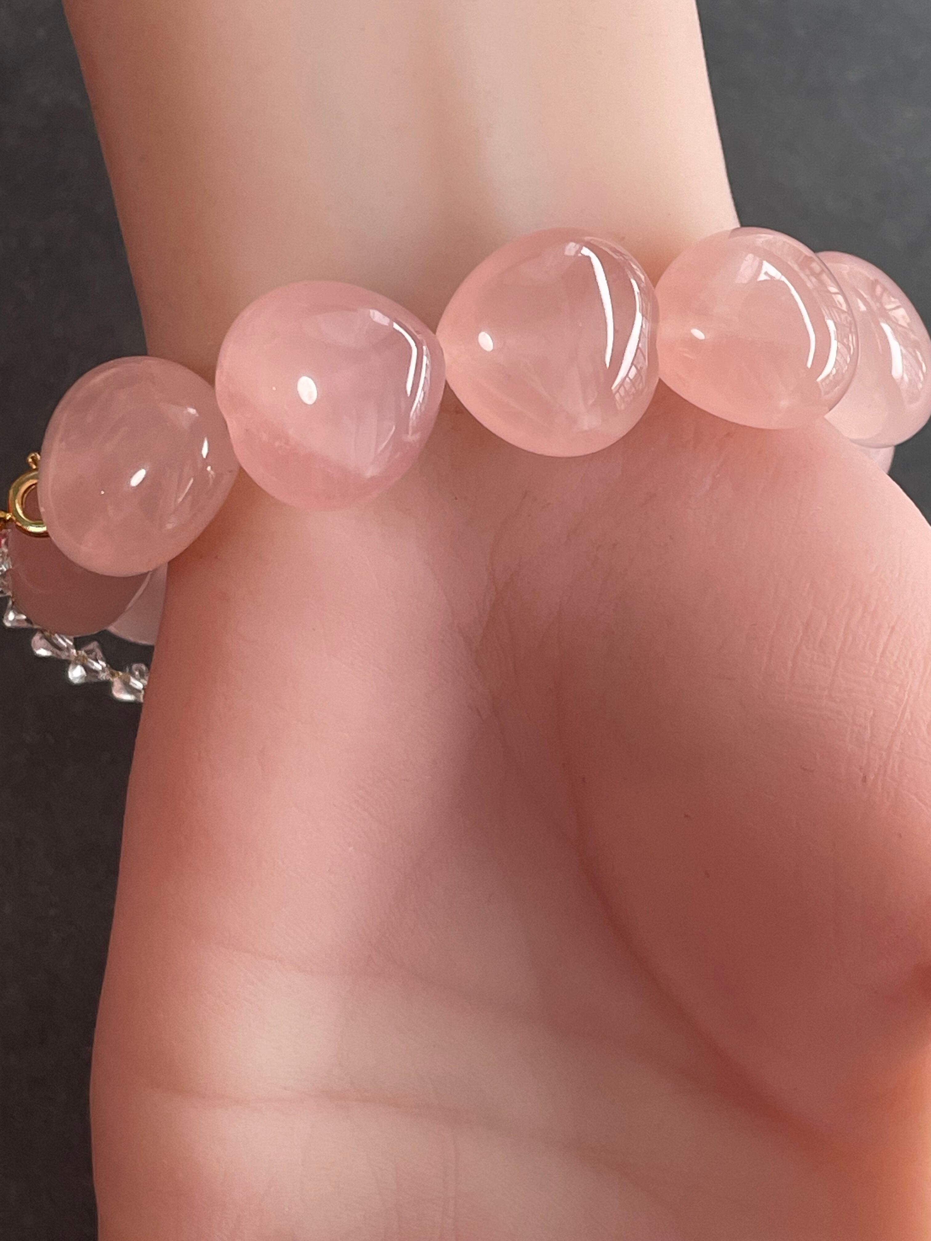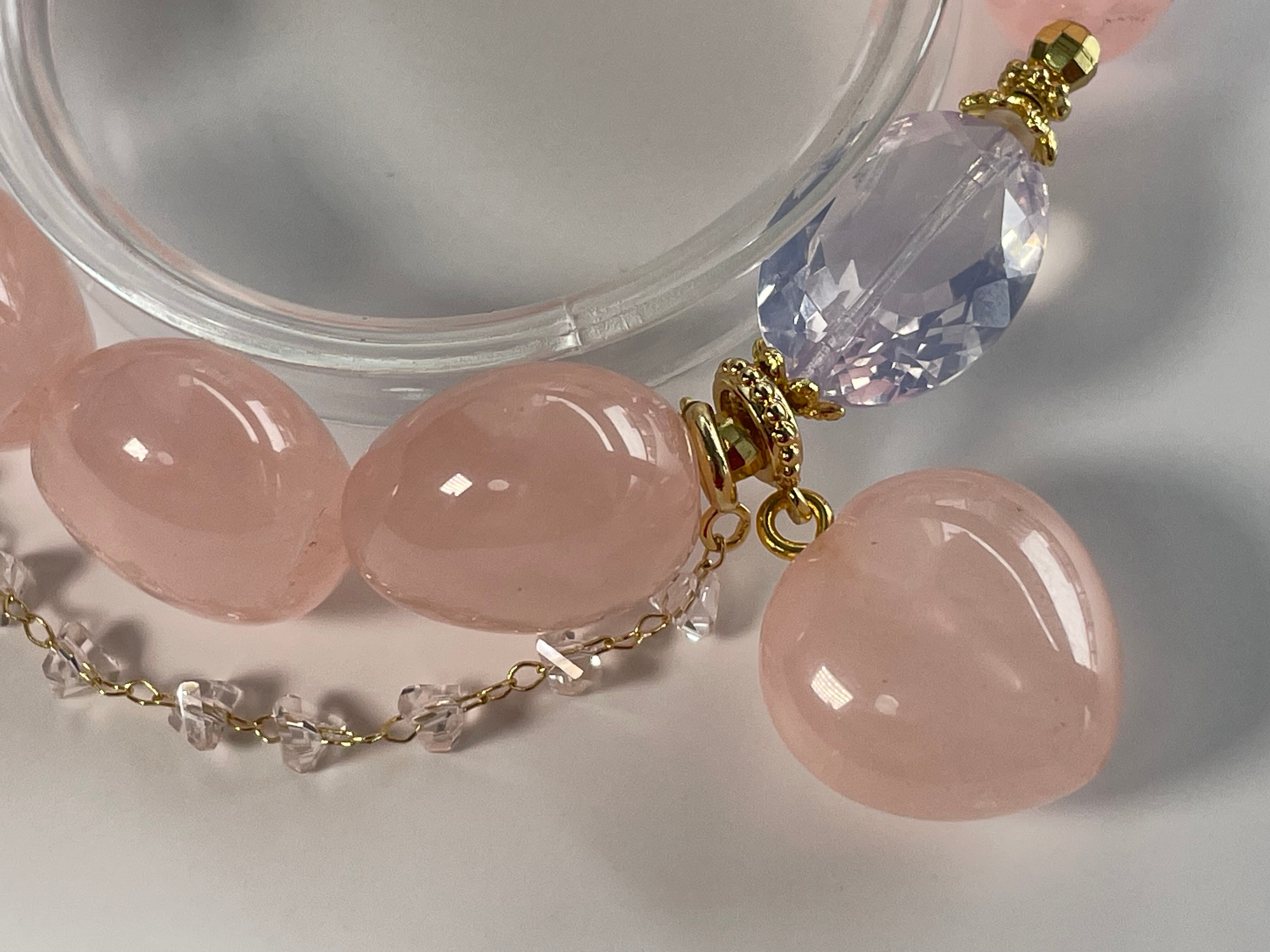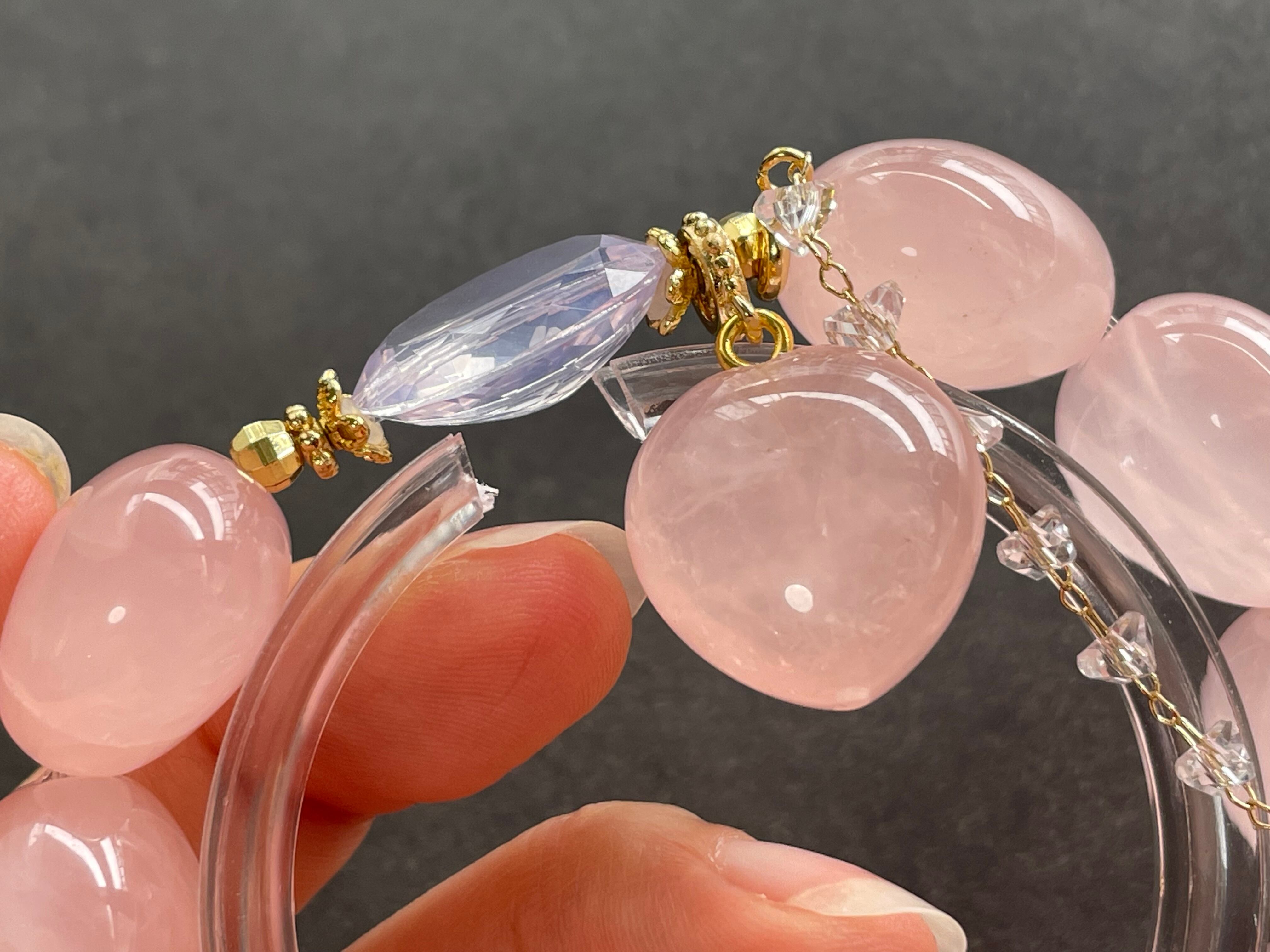 宝石ルース スコロライト ハートディープローズクォーツ デザインブレスレット