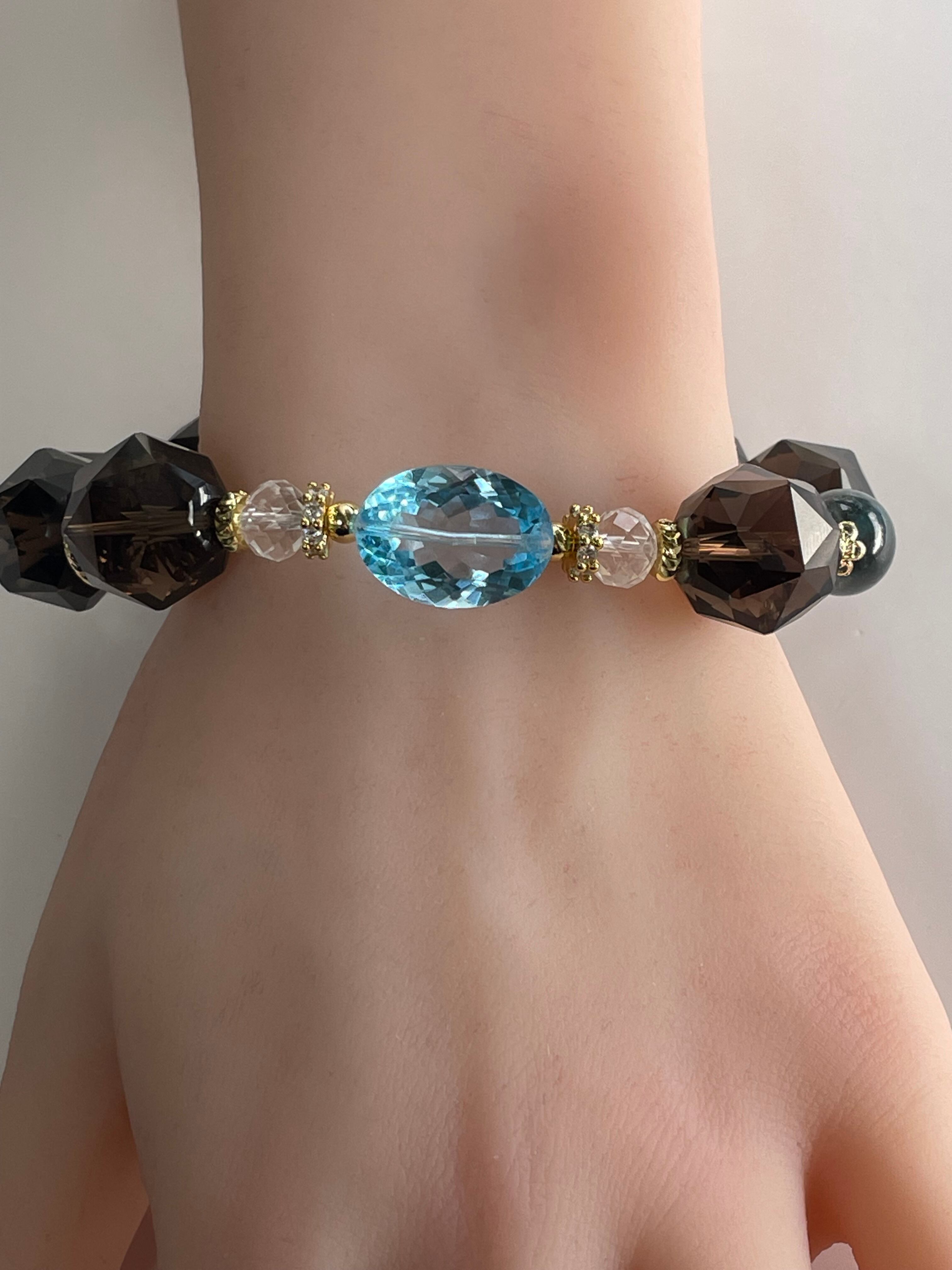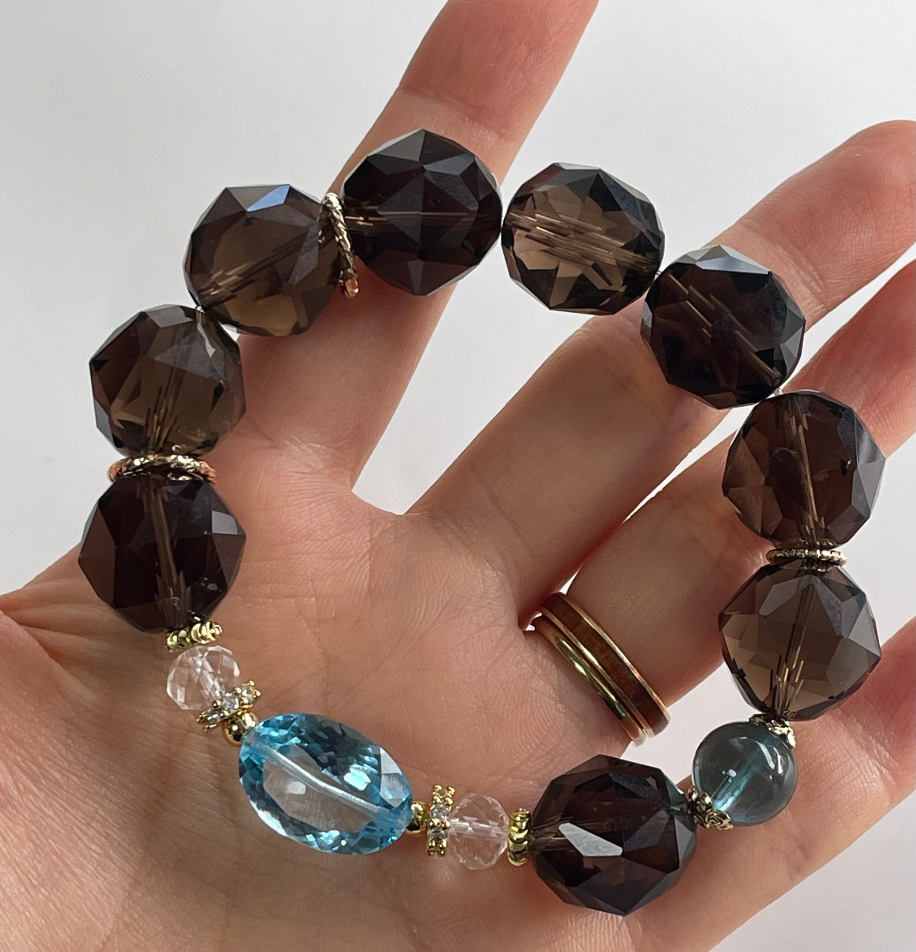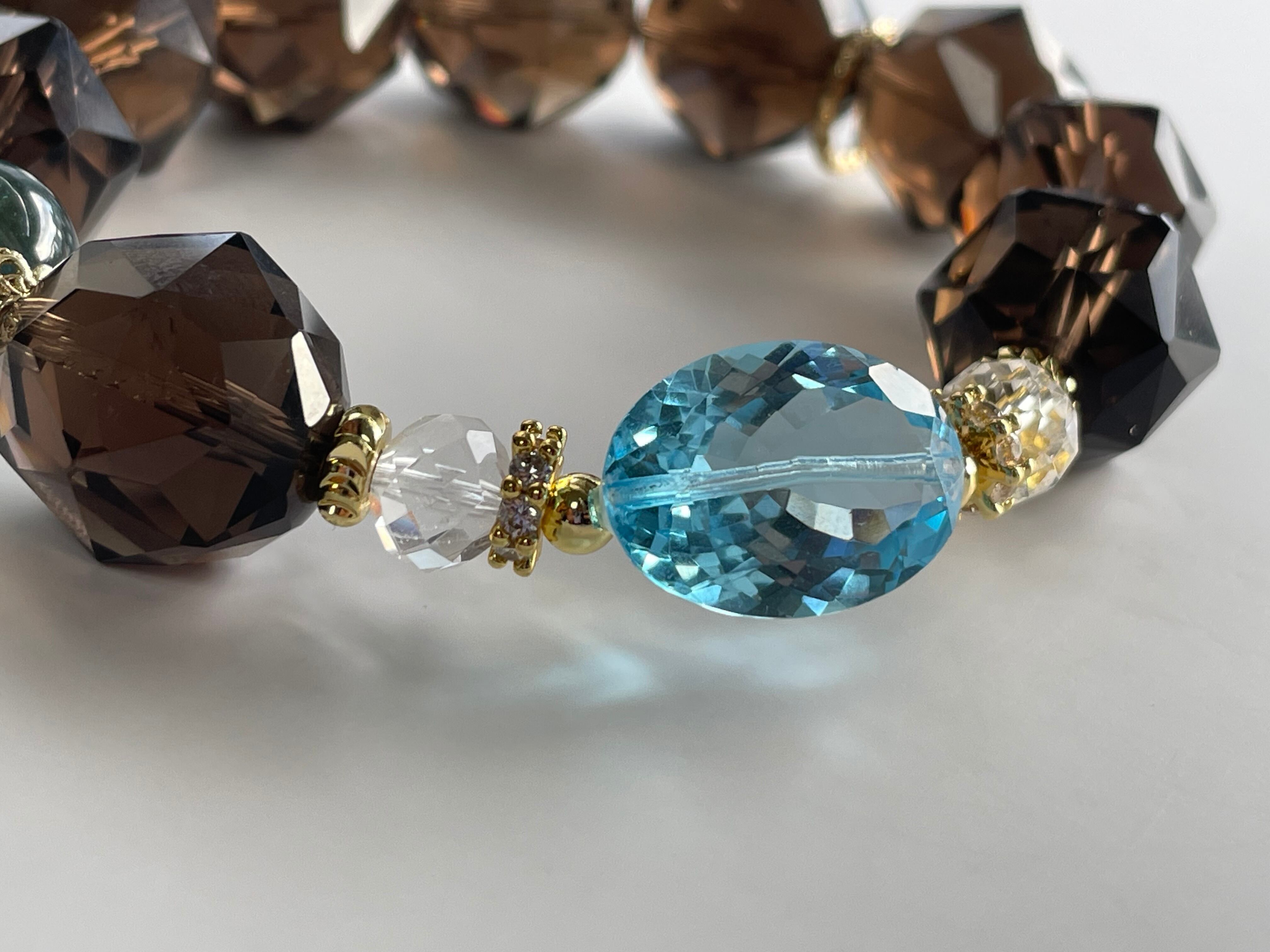 宝石ルース スカイブルートパーズ アクアマリン スターカットスモーキークォーツ デザインブレスレット